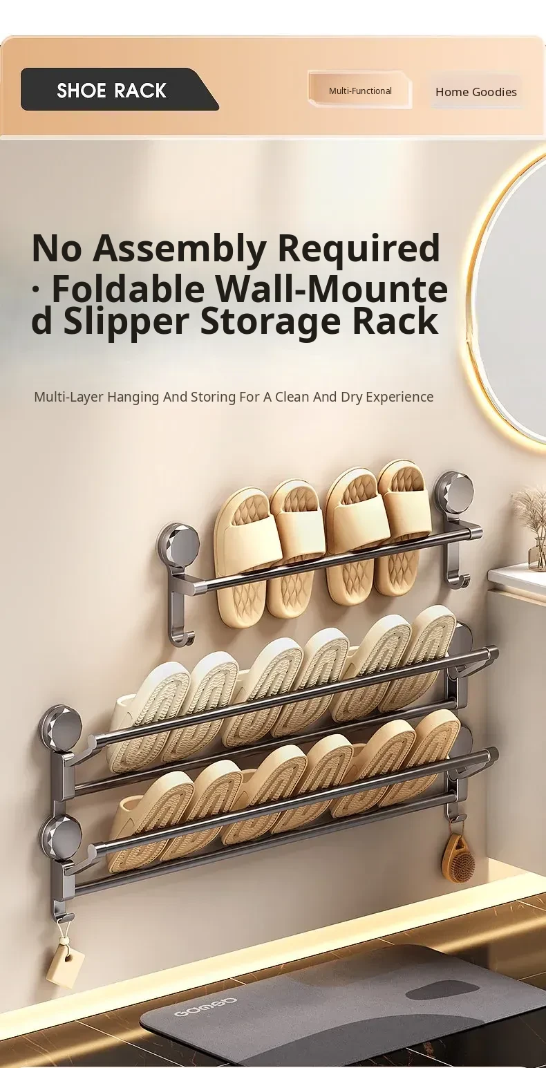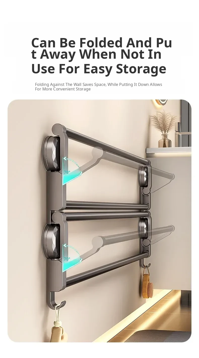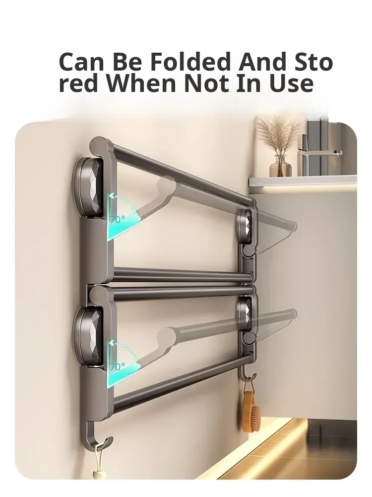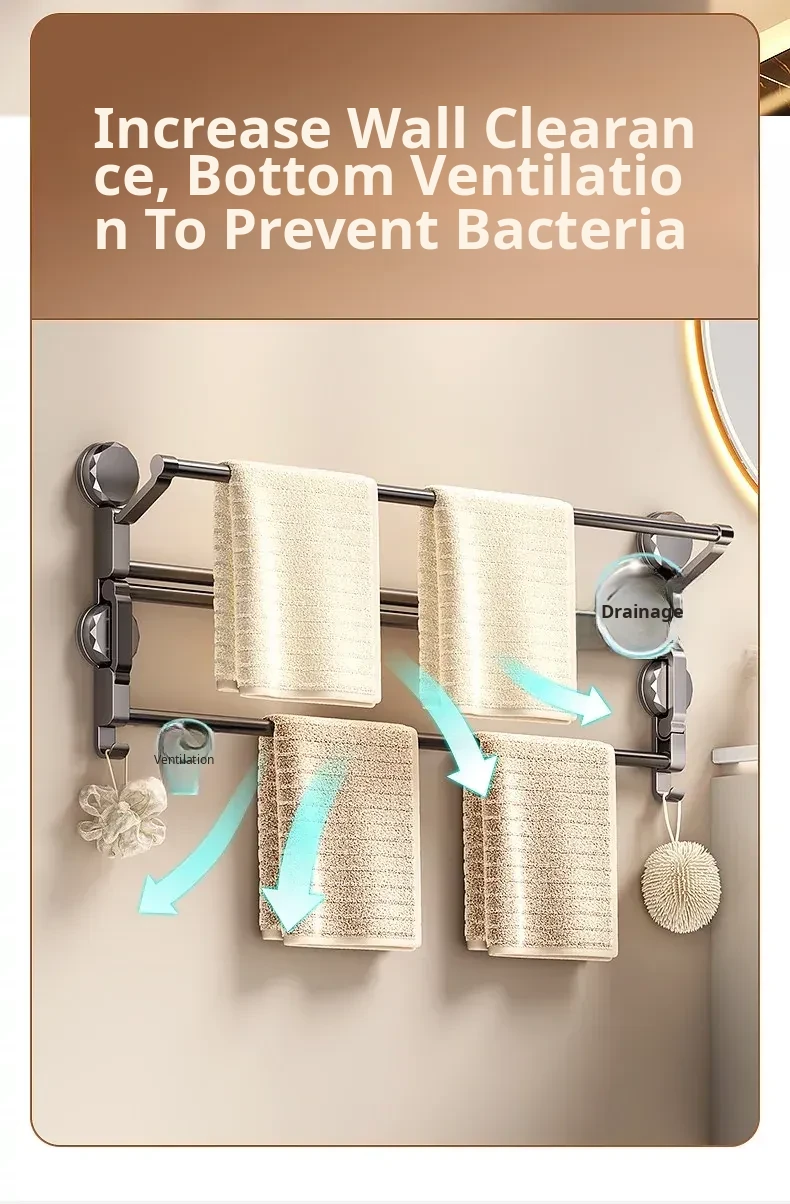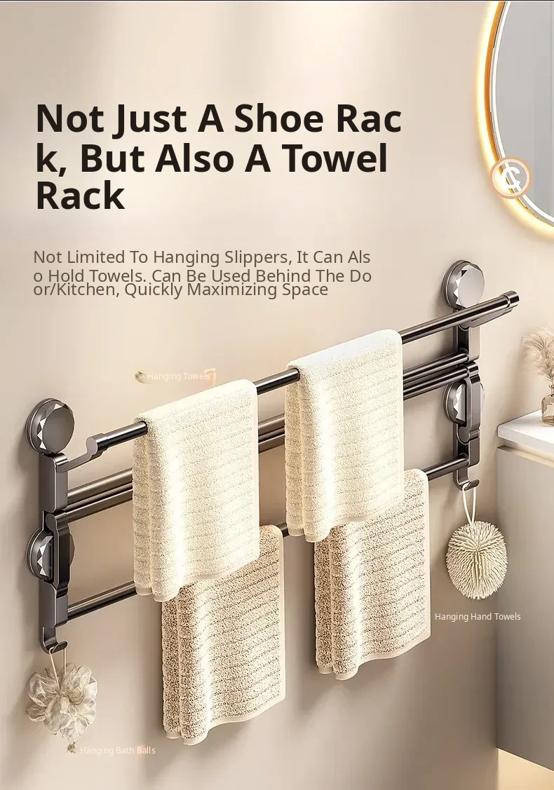 Suction Cup Towel Rack - Foldable Bathroom Storage Organizer for Shoes and Towels, No Drilling Required, Perfect for Door Back Use!