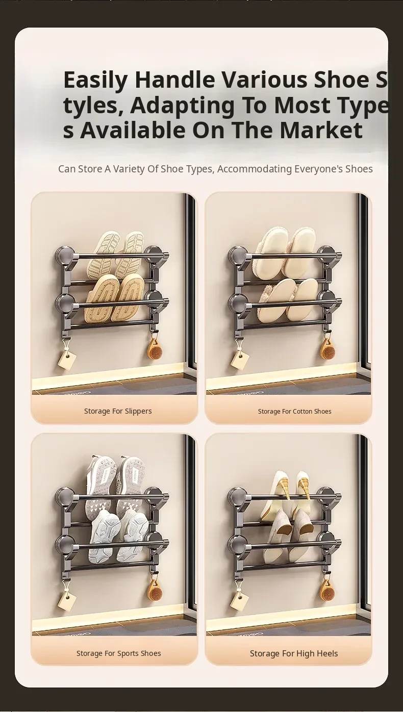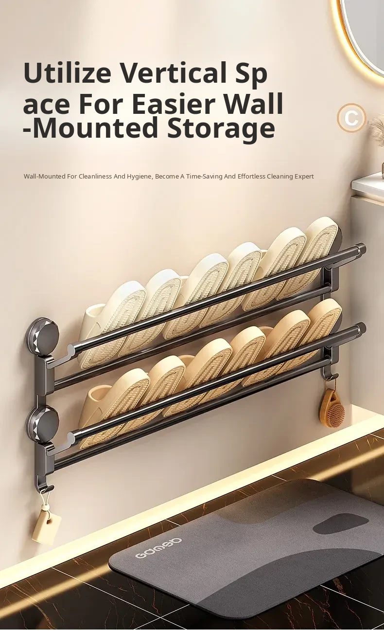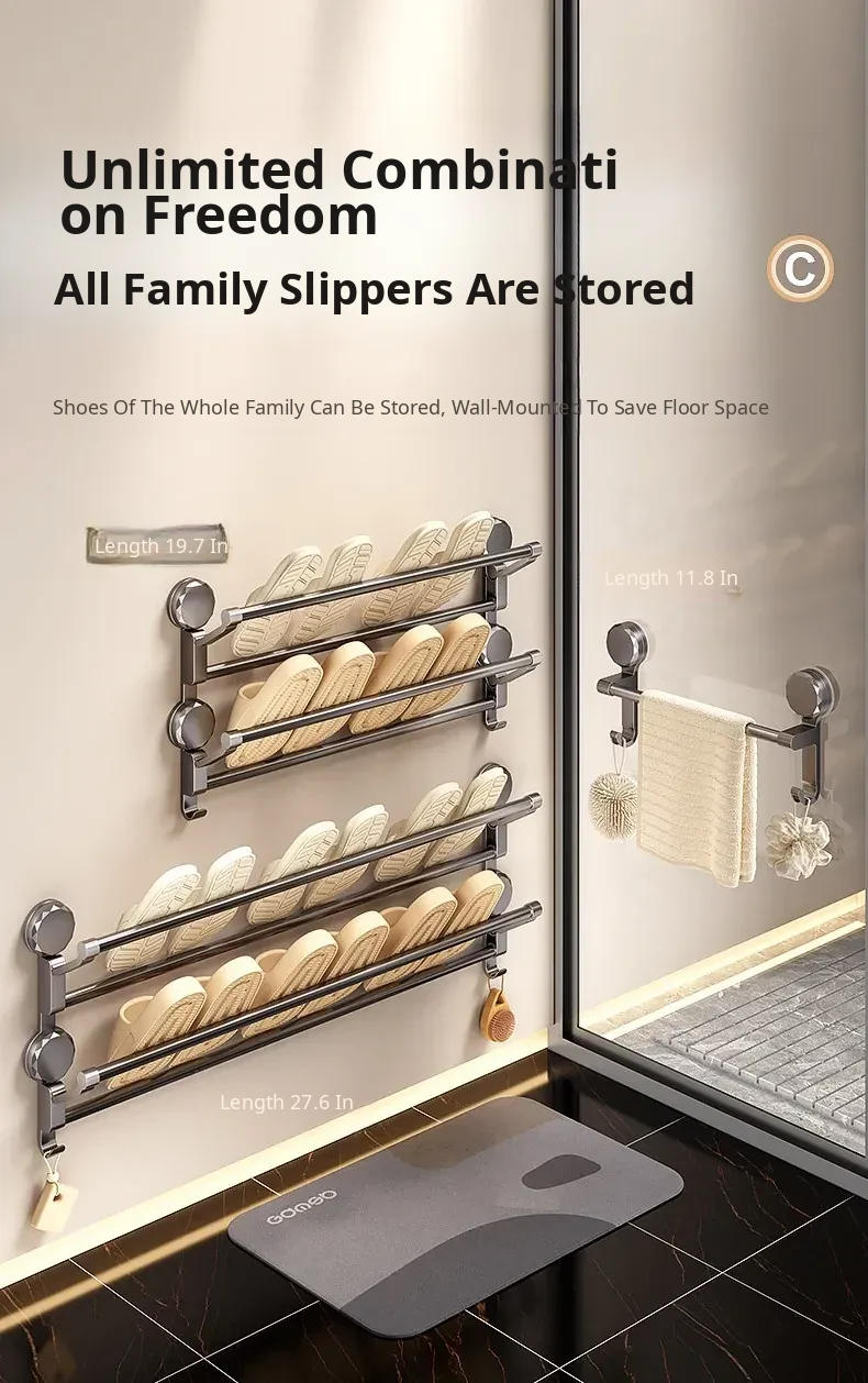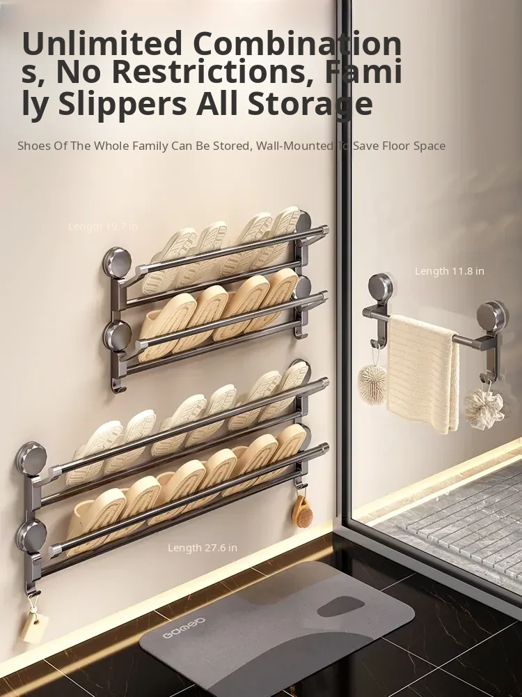 Suction Cup Towel Rack - Foldable Bathroom Storage Organizer for Shoes and Towels, No Drilling Required, Perfect for Door Back Use!