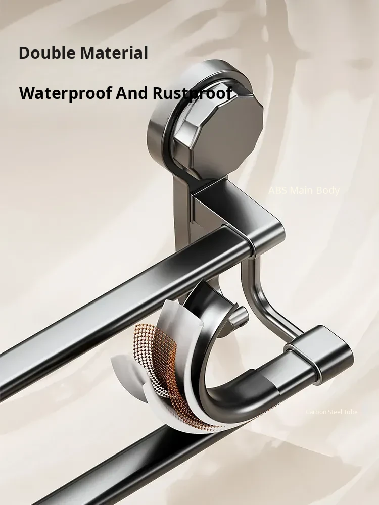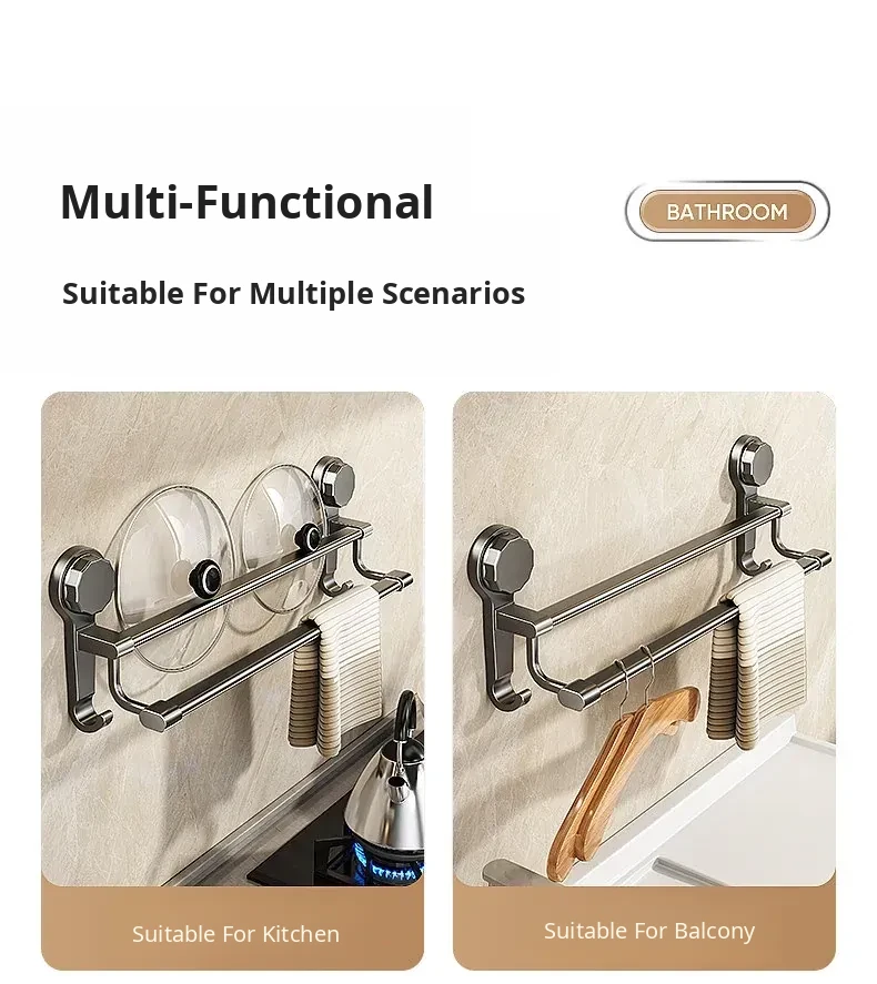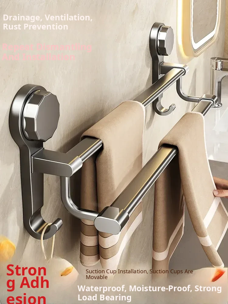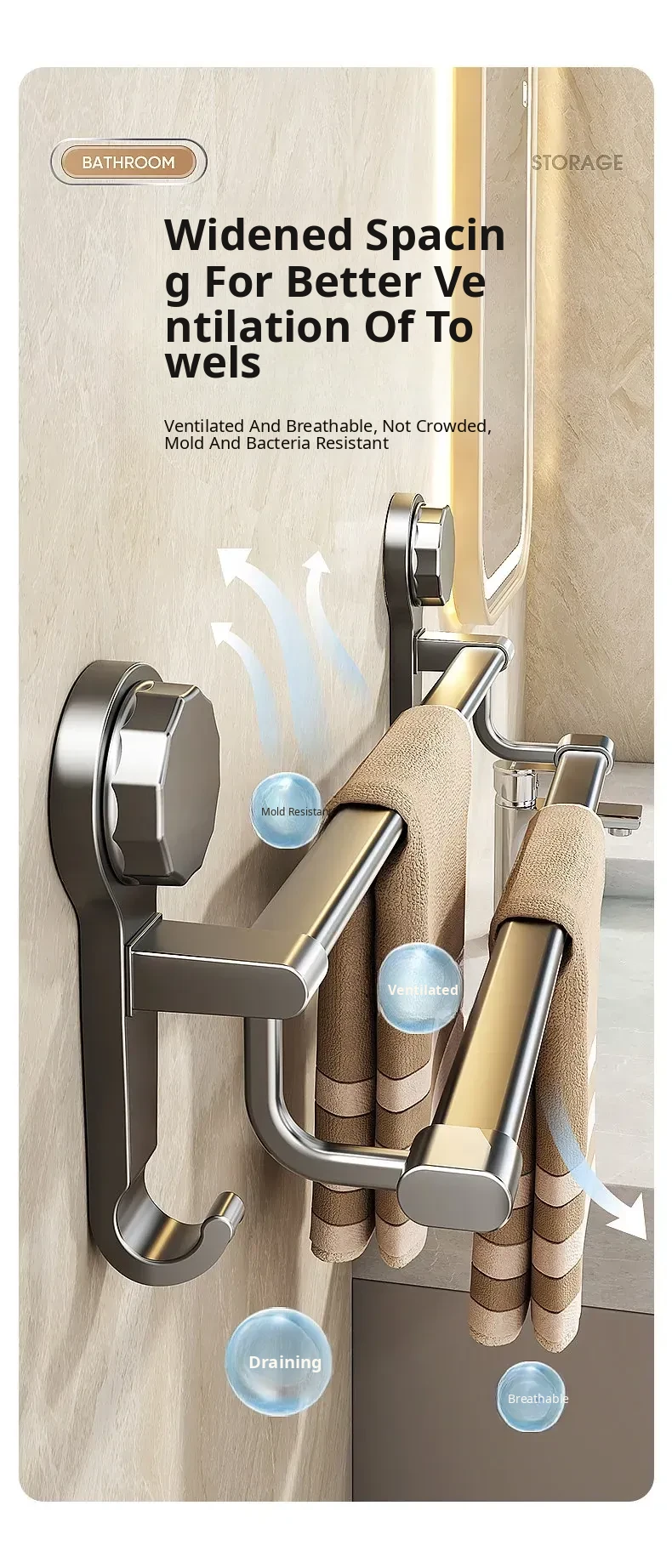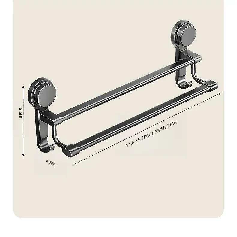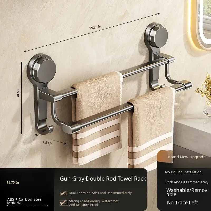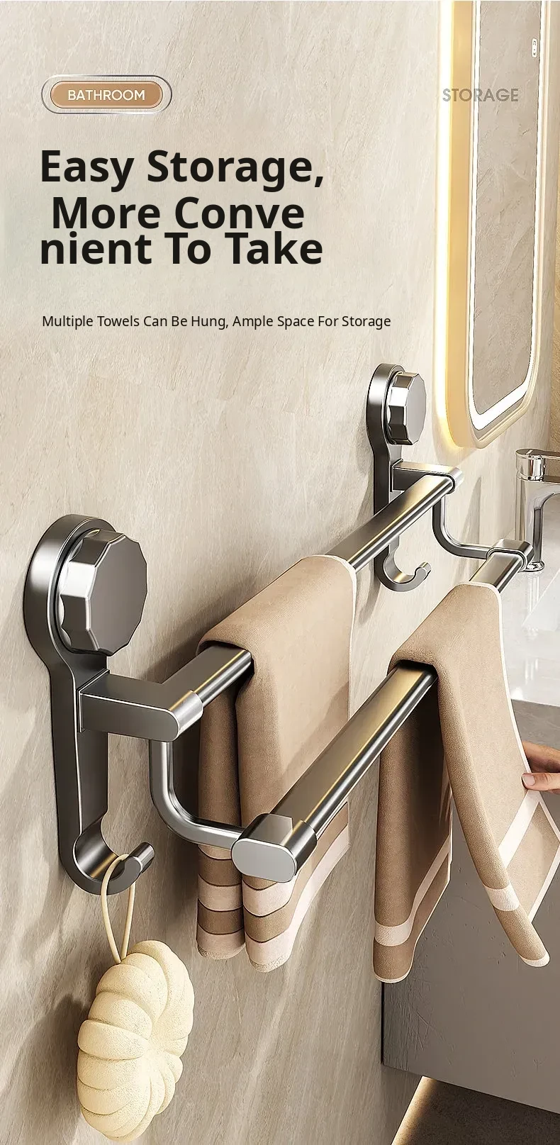 Suction Cup Towel Rack - No Drilling Required, Double Rod Bathroom Organizer for Towels, Wall-Mounted Storage Solution for Your Bathroom and Toilet