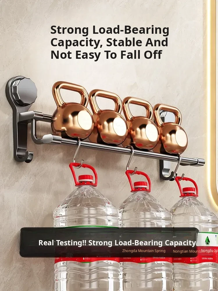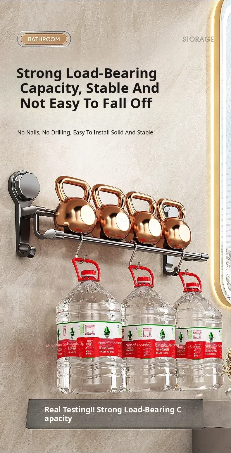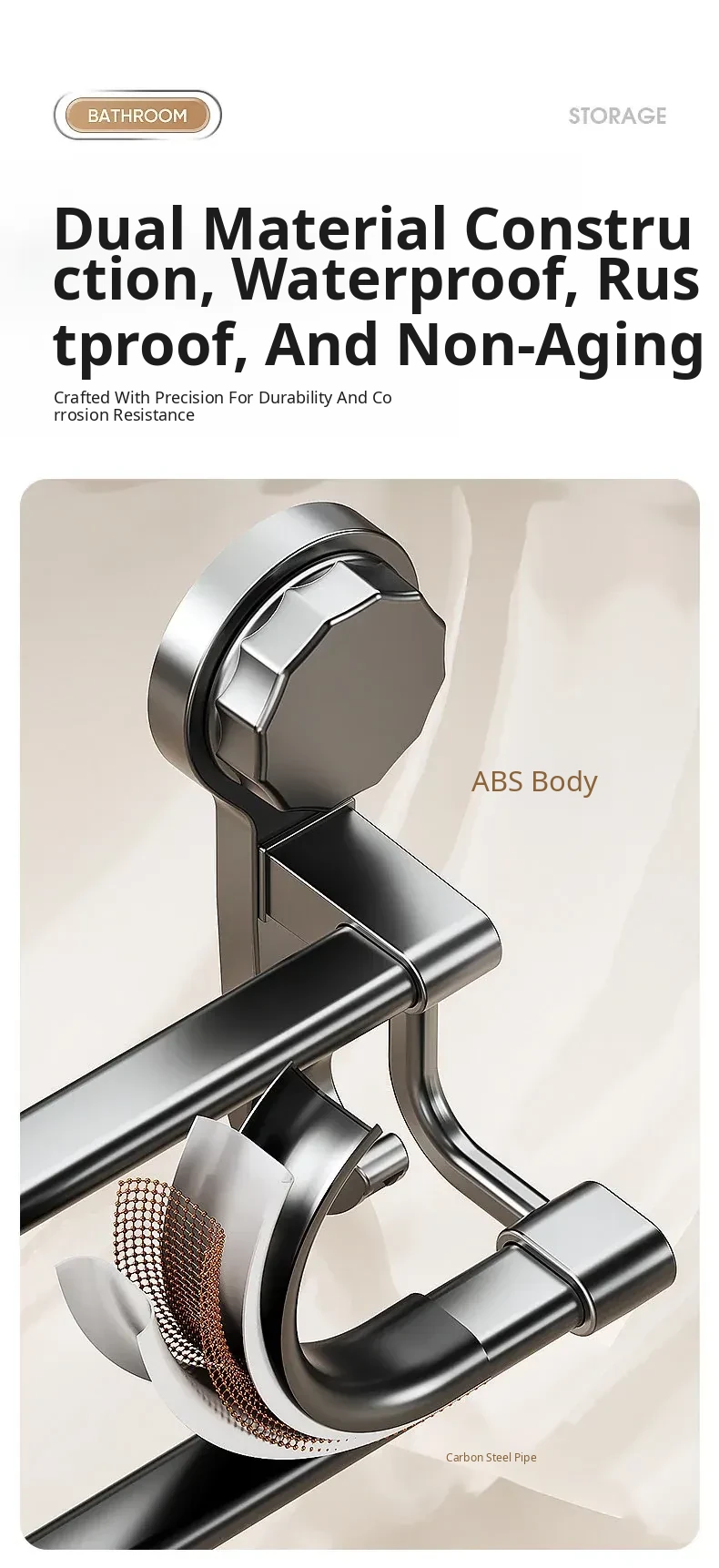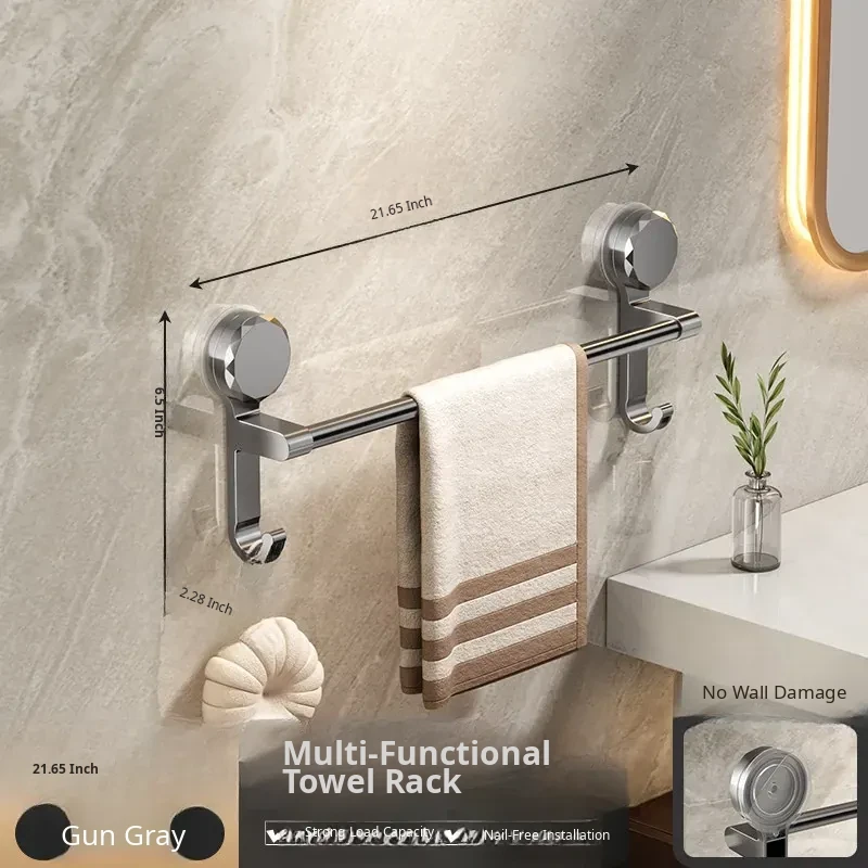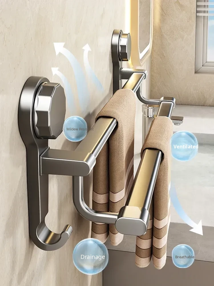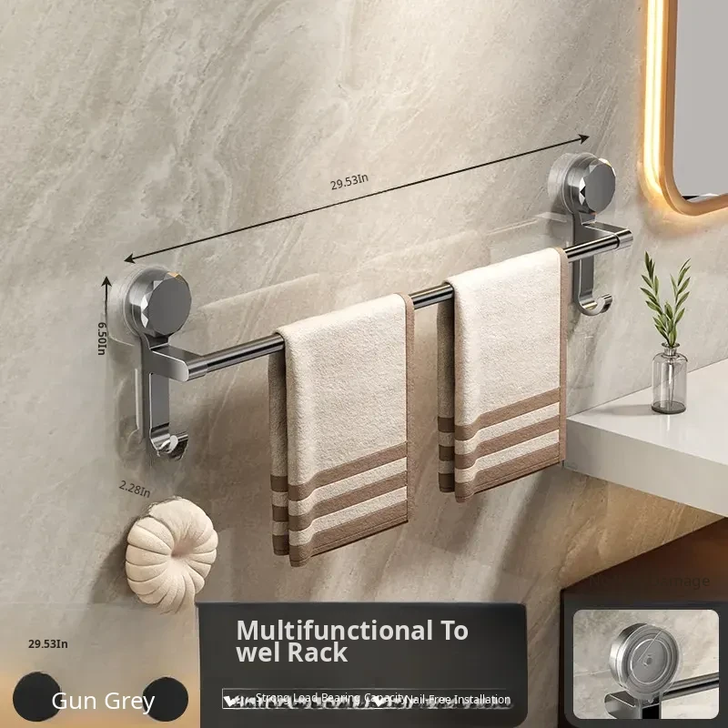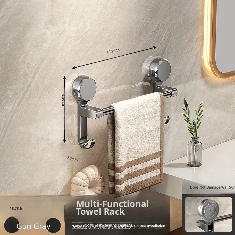Suction Cup Towel Rack - No Drilling Required, Double Rod Bathroom Organizer for Towels, Wall-Mounted Storage Solution for Your Bathroom and Toilet