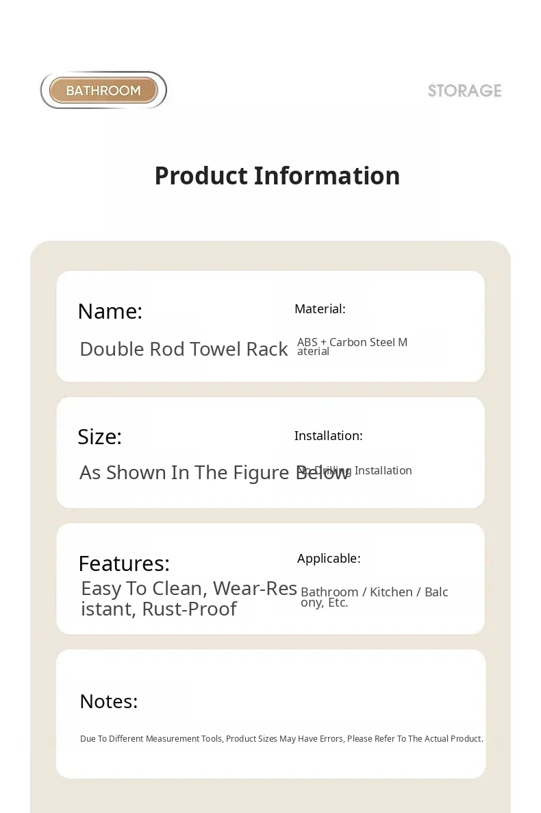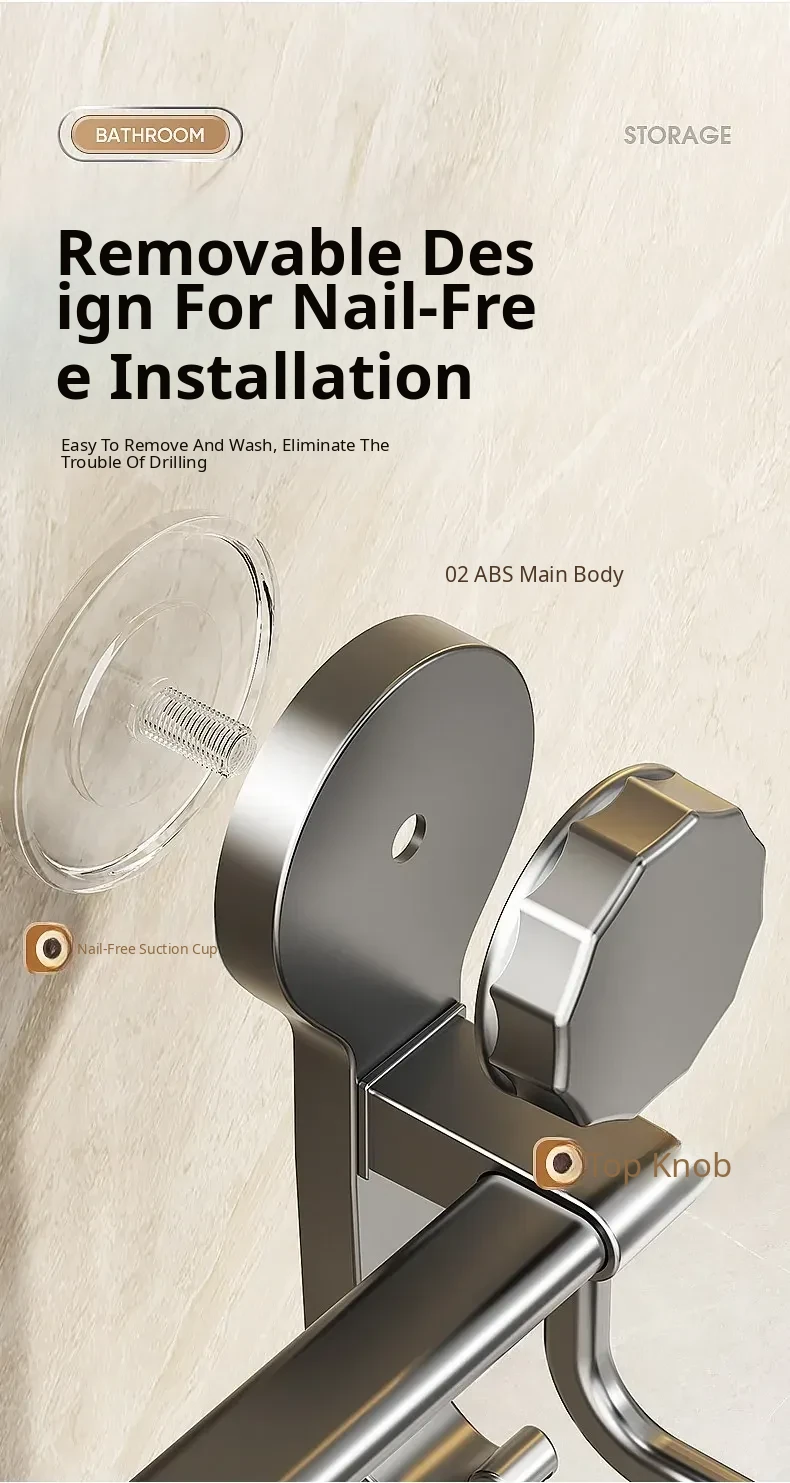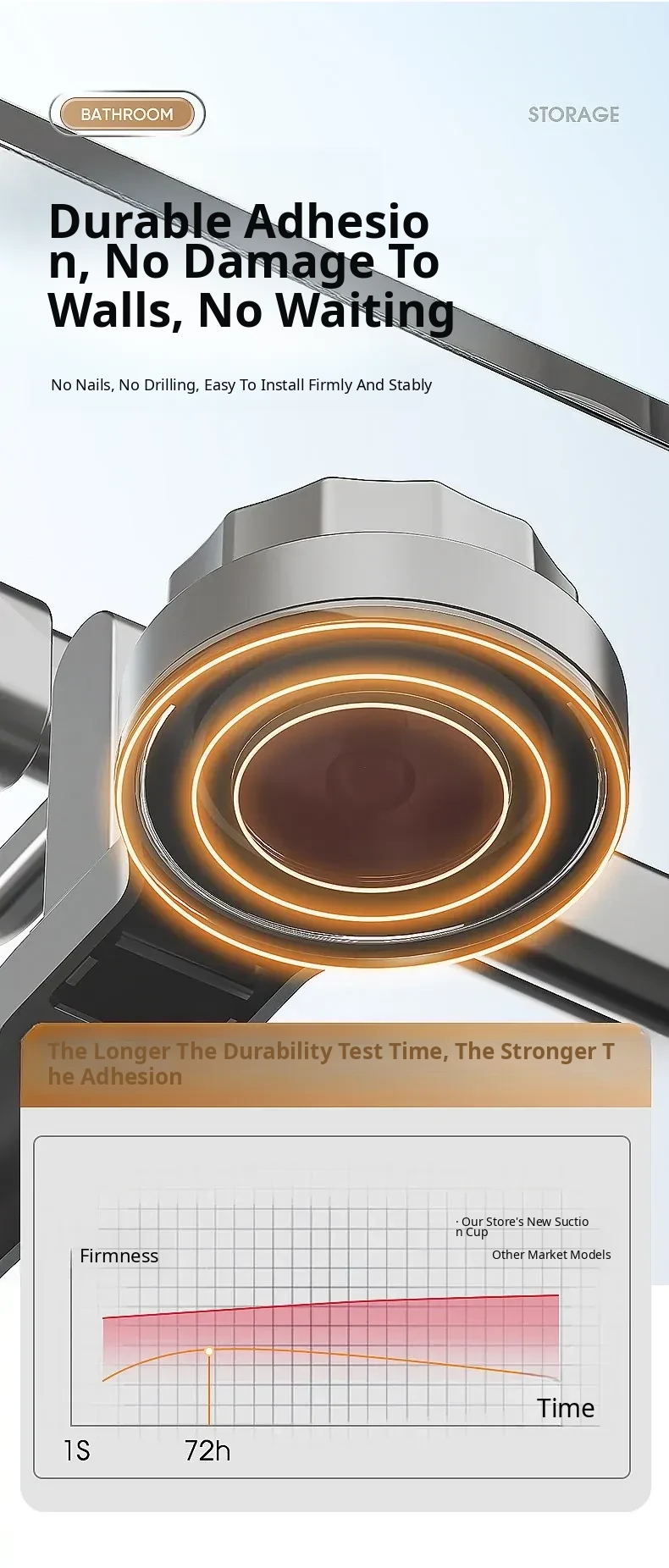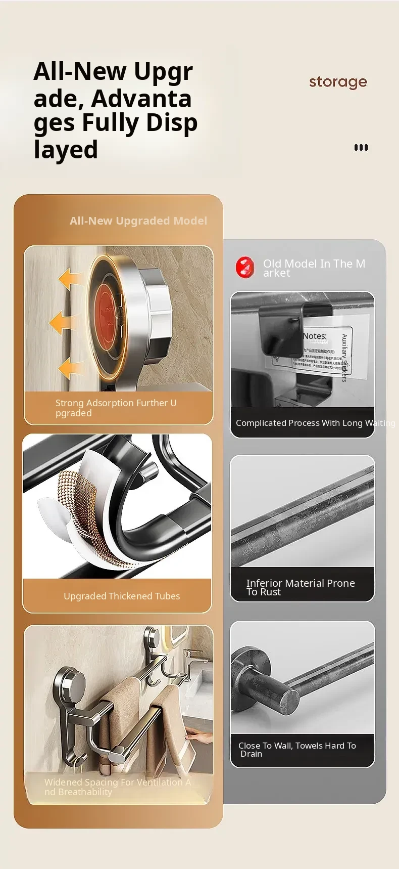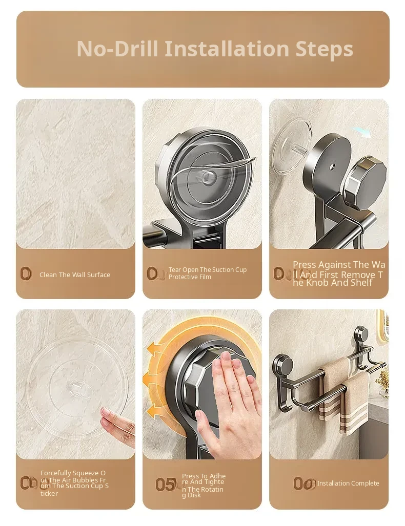 Suction Cup Towel Rack - No Drilling Required, Double Rod Bathroom Organizer for Towels, Wall-Mounted Storage Solution for Your Bathroom and Toilet