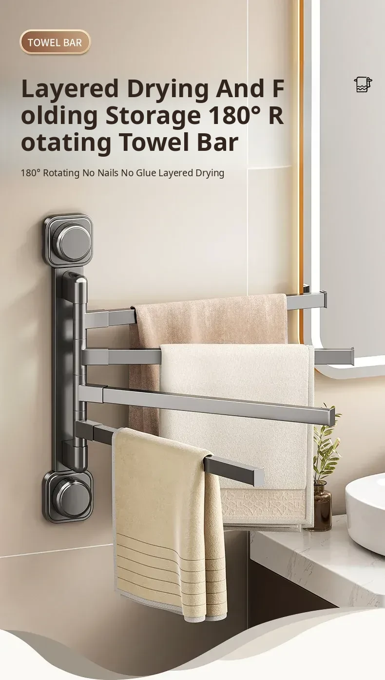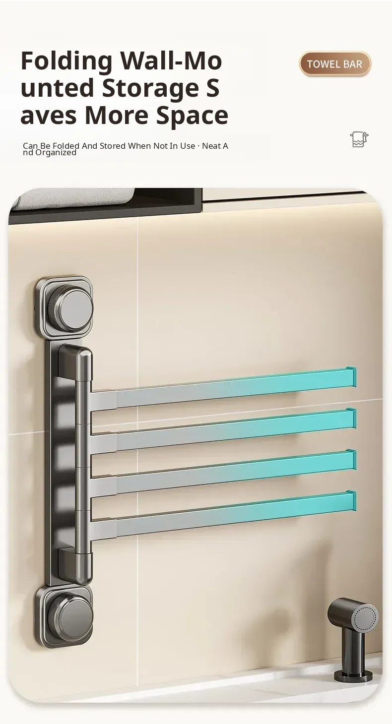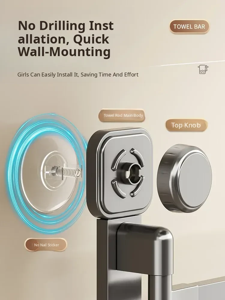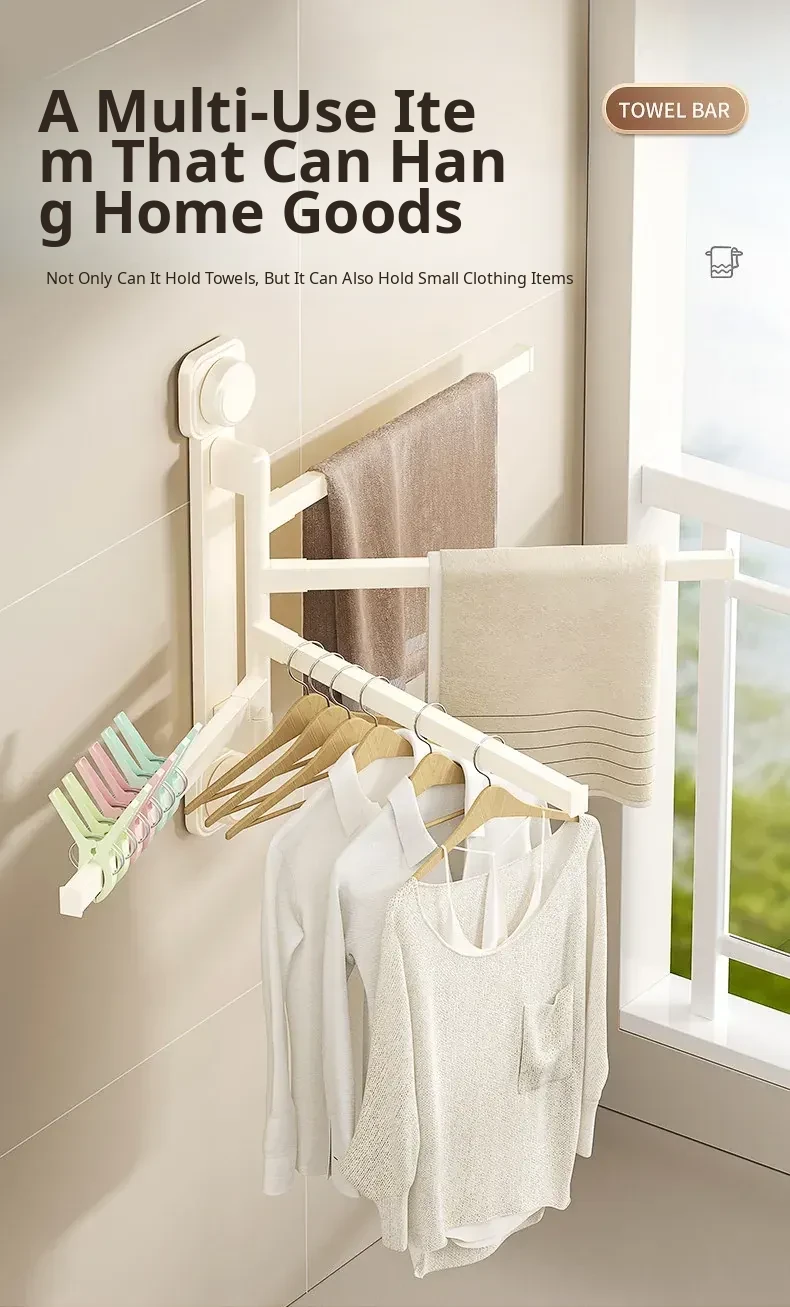 Suction Cup Towel Rack - No Drilling Required Wall-Mounted Bathroom Organizer for Hanging Towels - Ideal for Shower, Toilet, and Bathroom Storage Solutions