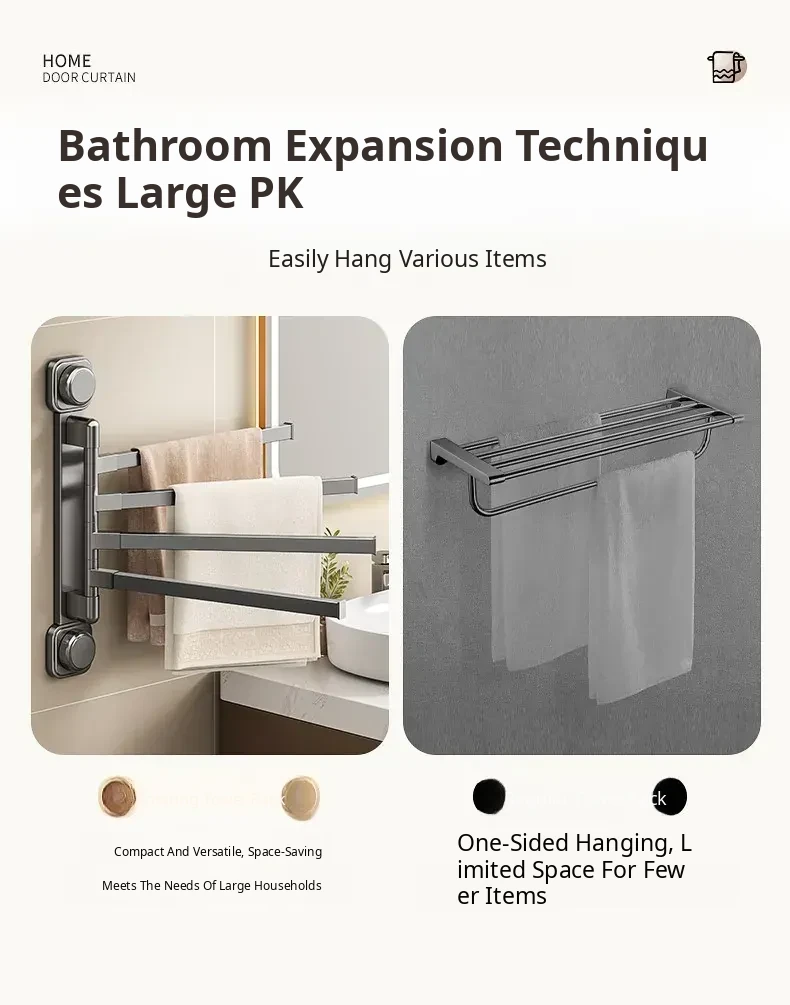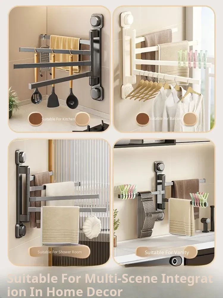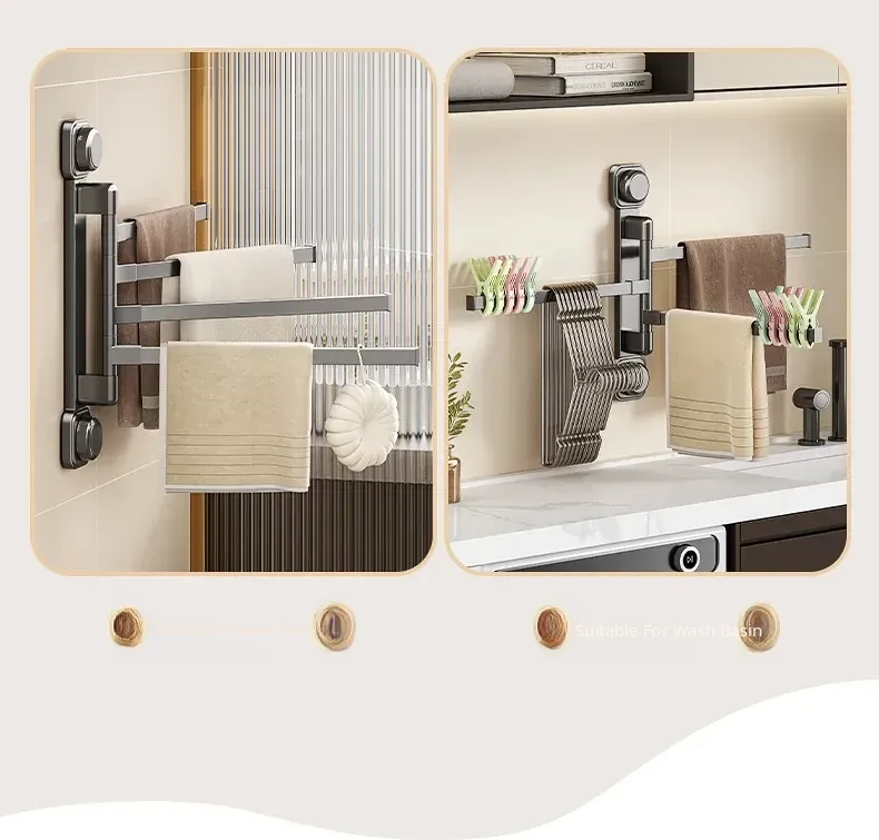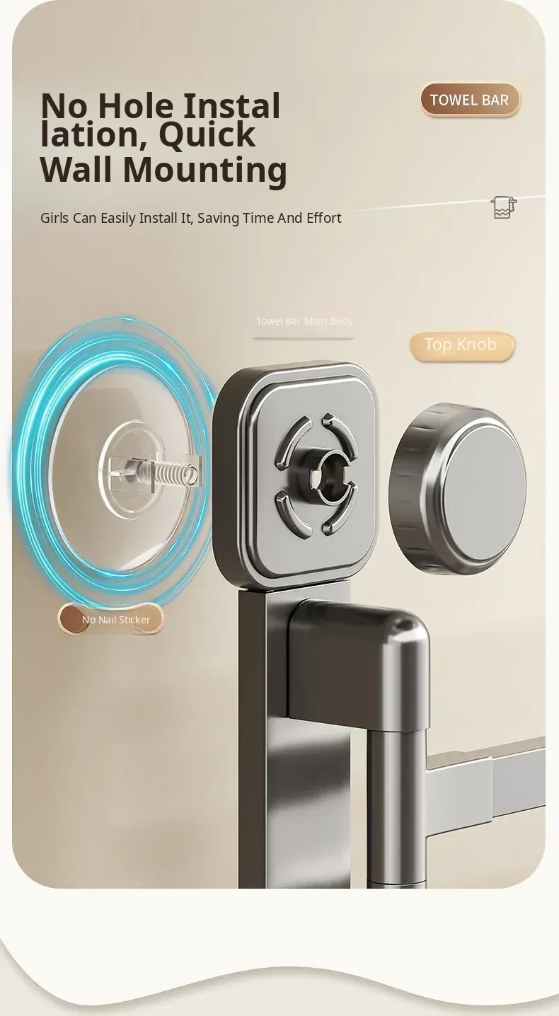 Suction Cup Towel Rack - No Drilling Required Wall-Mounted Bathroom Organizer for Hanging Towels - Ideal for Shower, Toilet, and Bathroom Storage Solutions