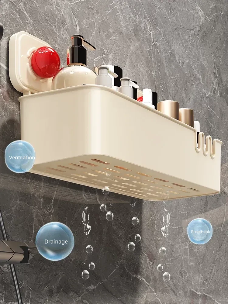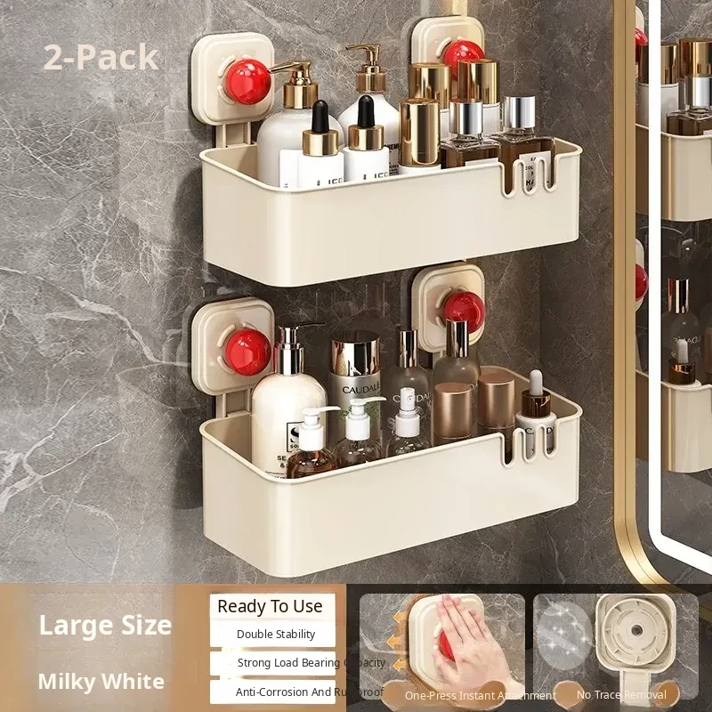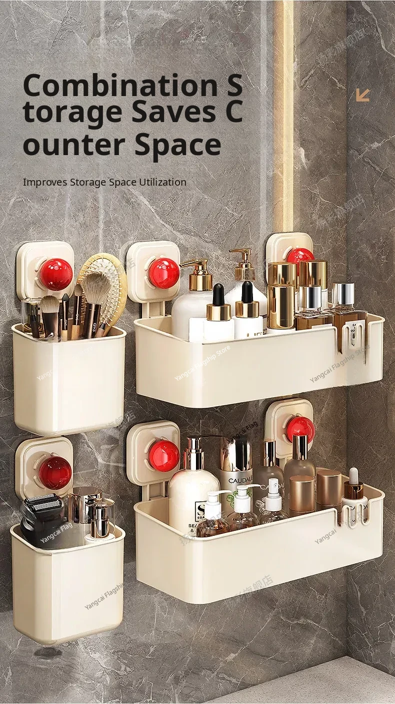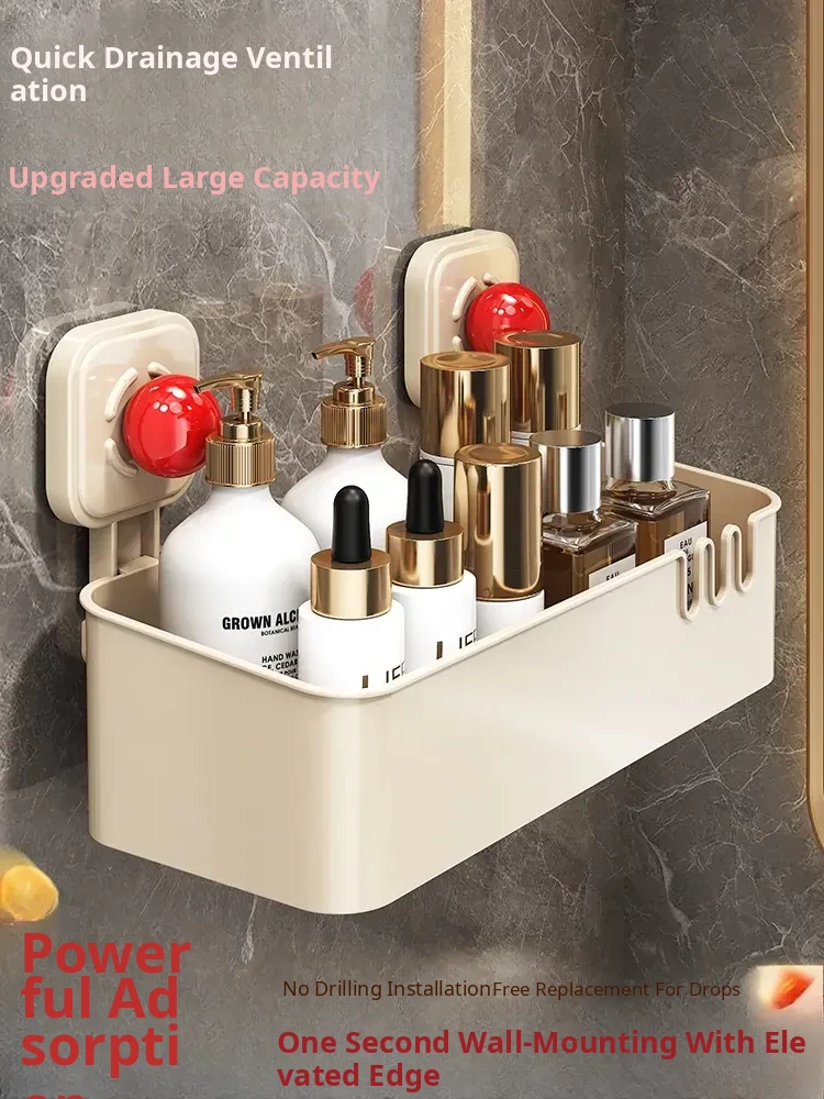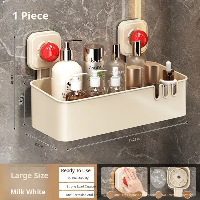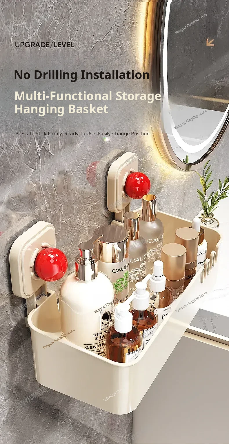 Suction Cup Wall-Mounted Bathroom Organizer - No Drilling Required, Perfect for Storing Toiletries and Essentials in Your Washroom