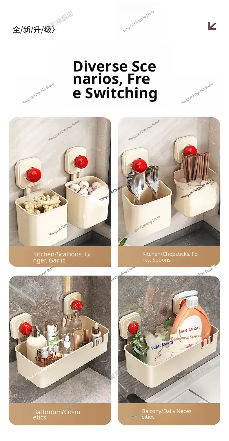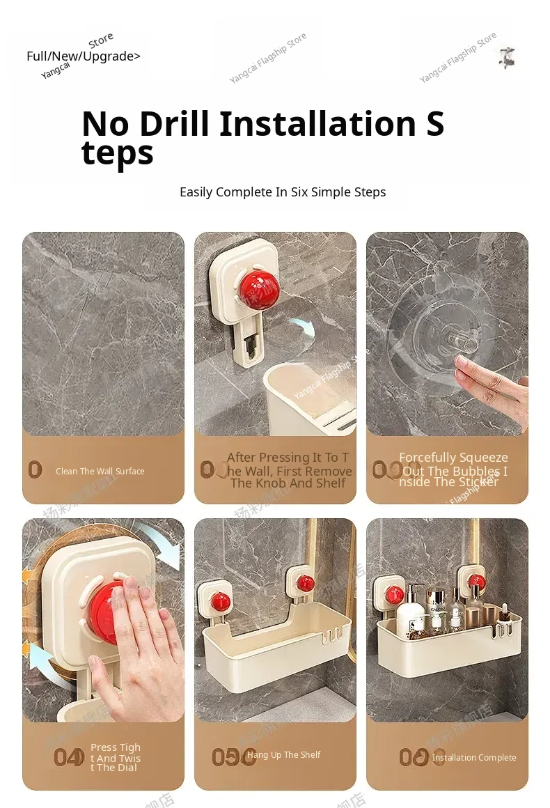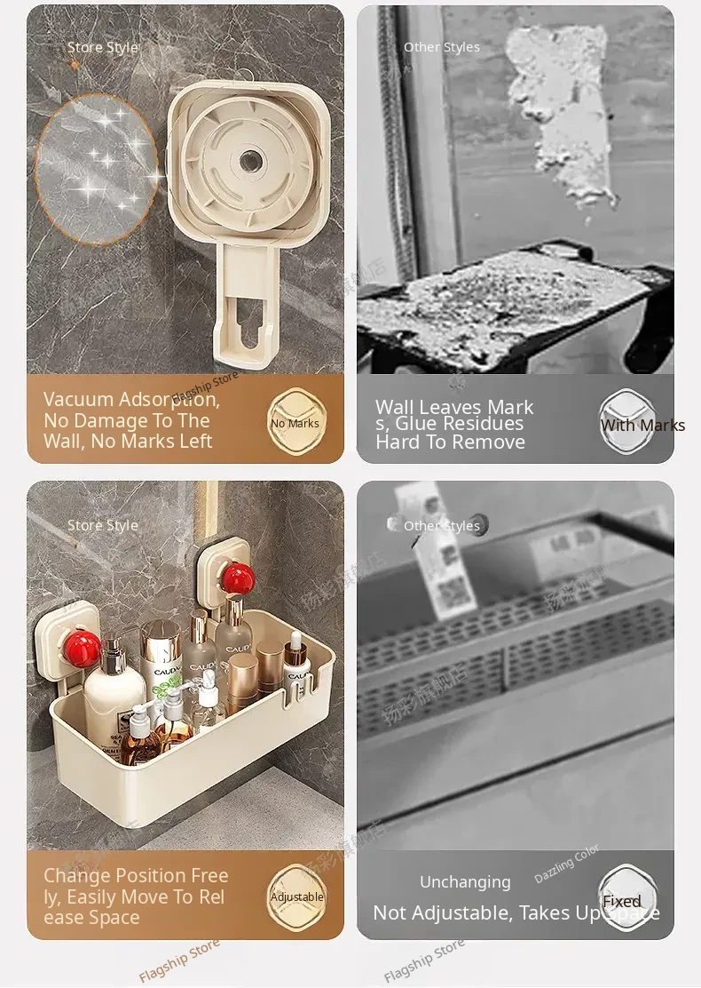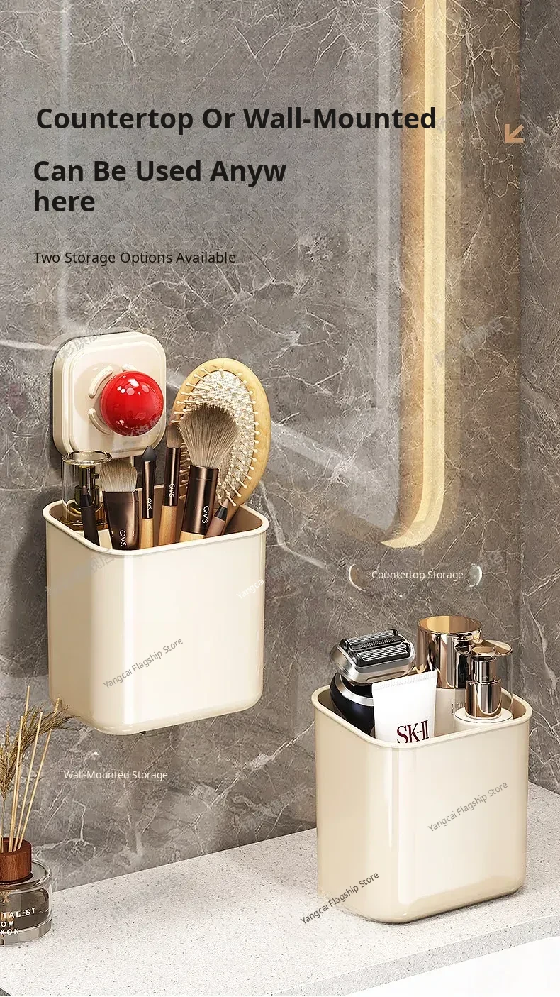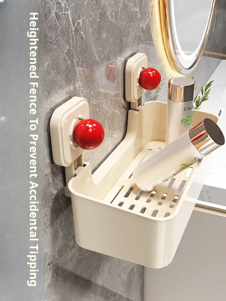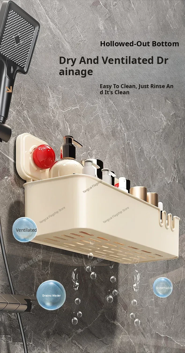 Suction Cup Wall-Mounted Bathroom Organizer - No Drilling Required, Perfect for Storing Toiletries and Essentials in Your Washroom