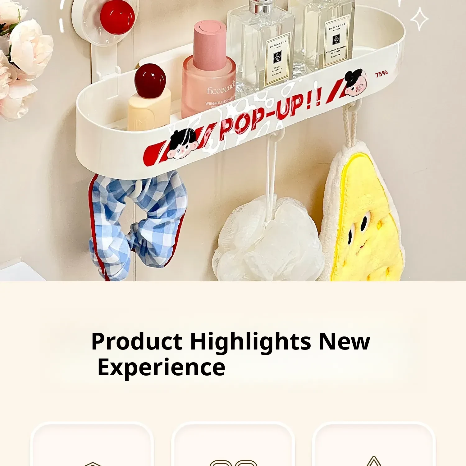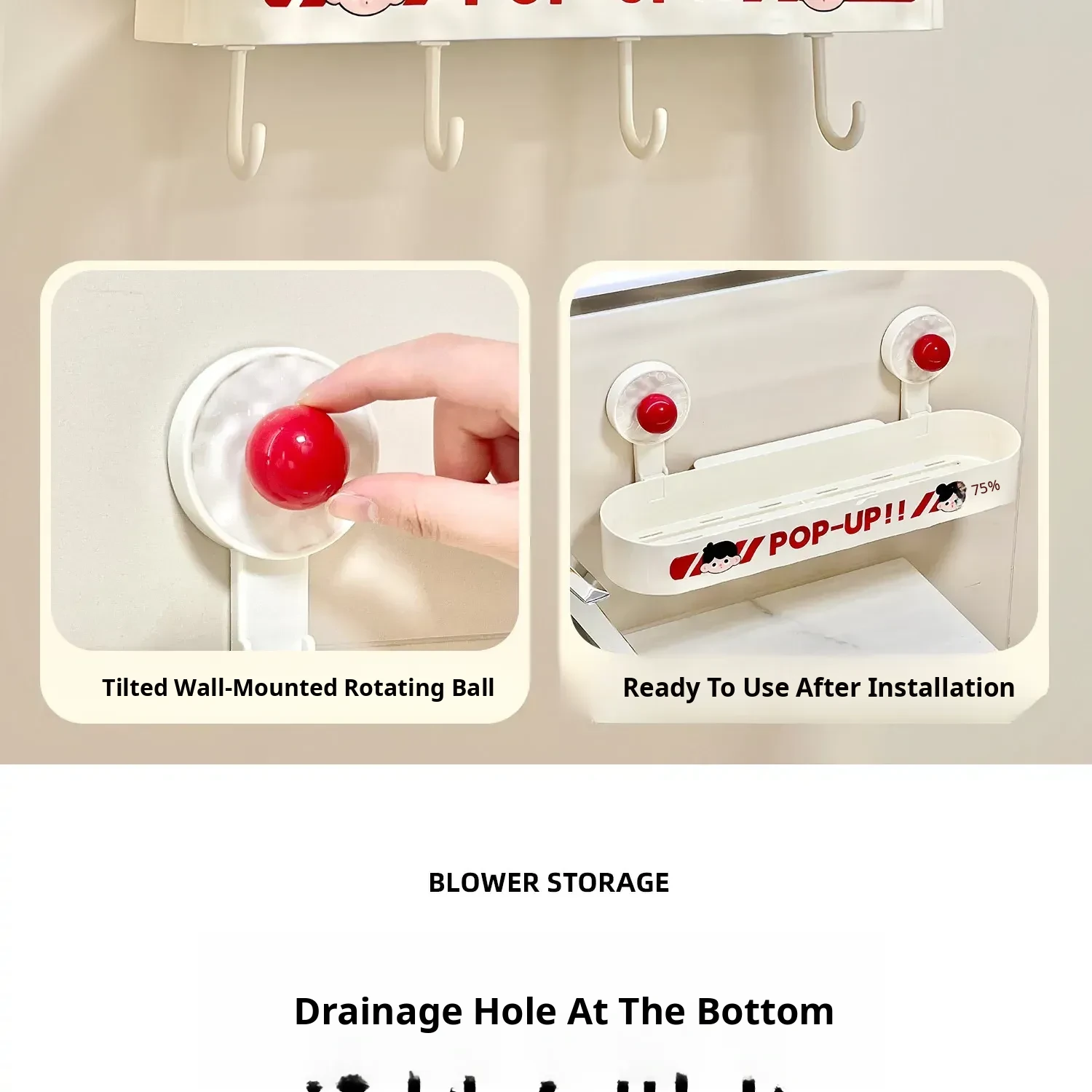 Suction Cup Wall-Mounted Storage Rack for Bathroom - No Drilling Required, Perfect for Toilets and Vanities, Space-Saving Organizer for Your Washroom