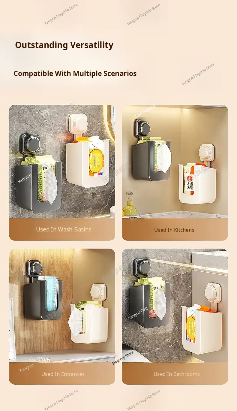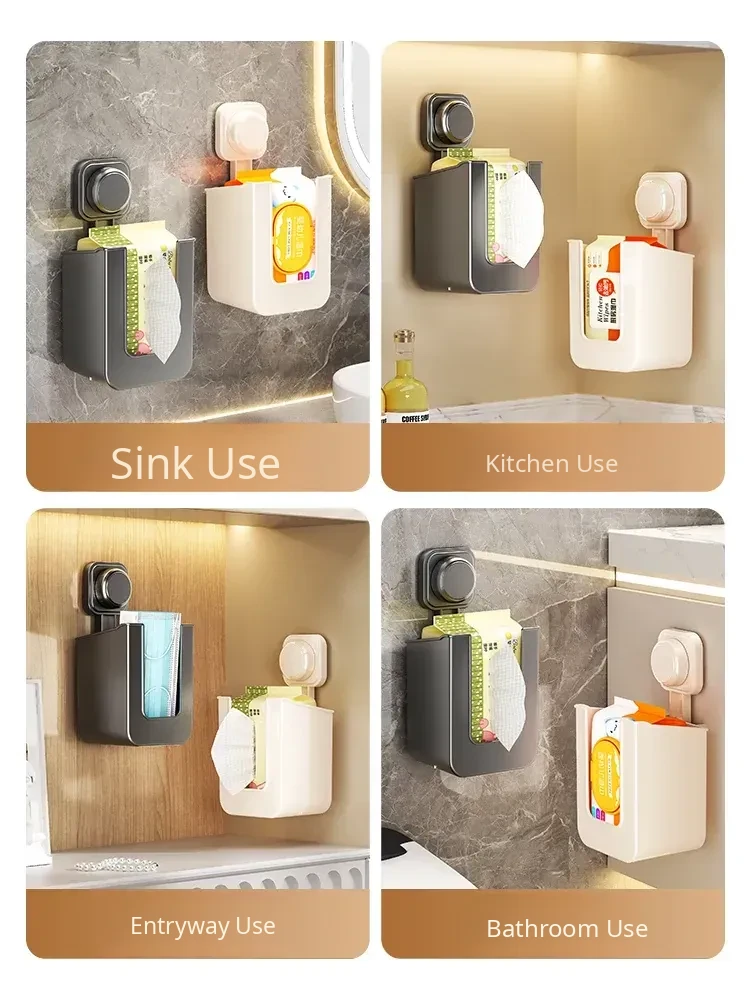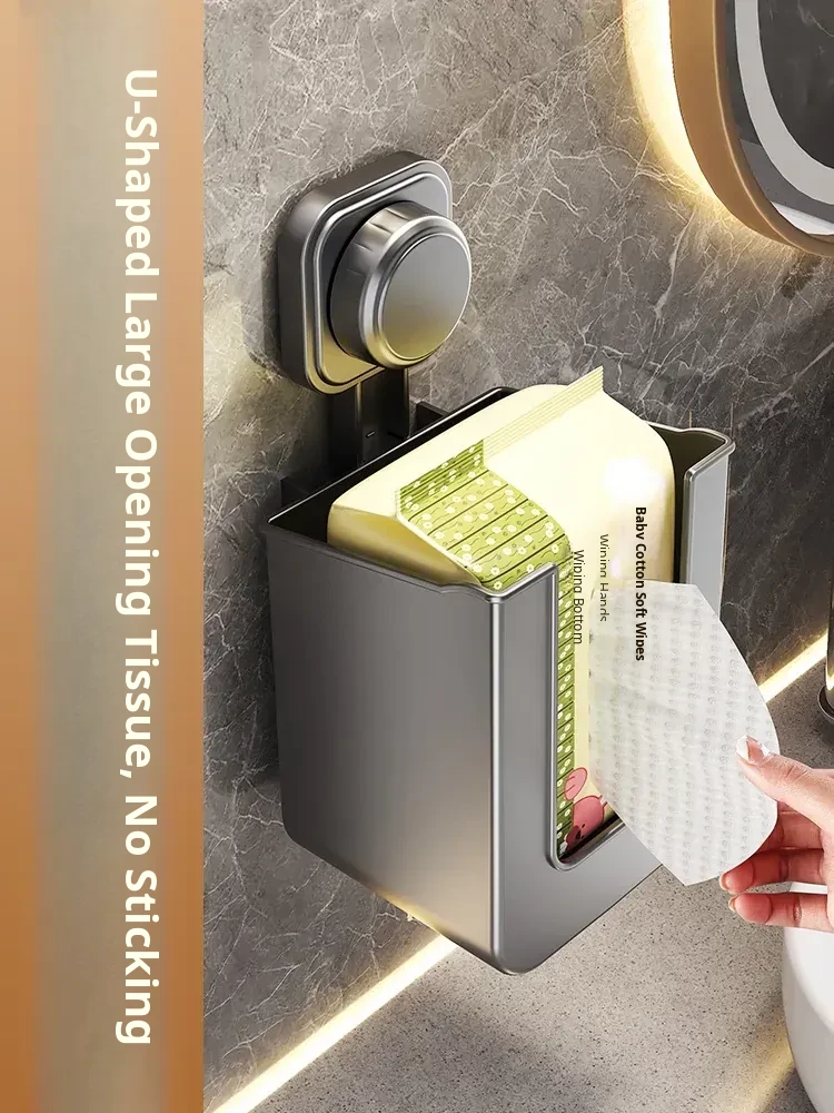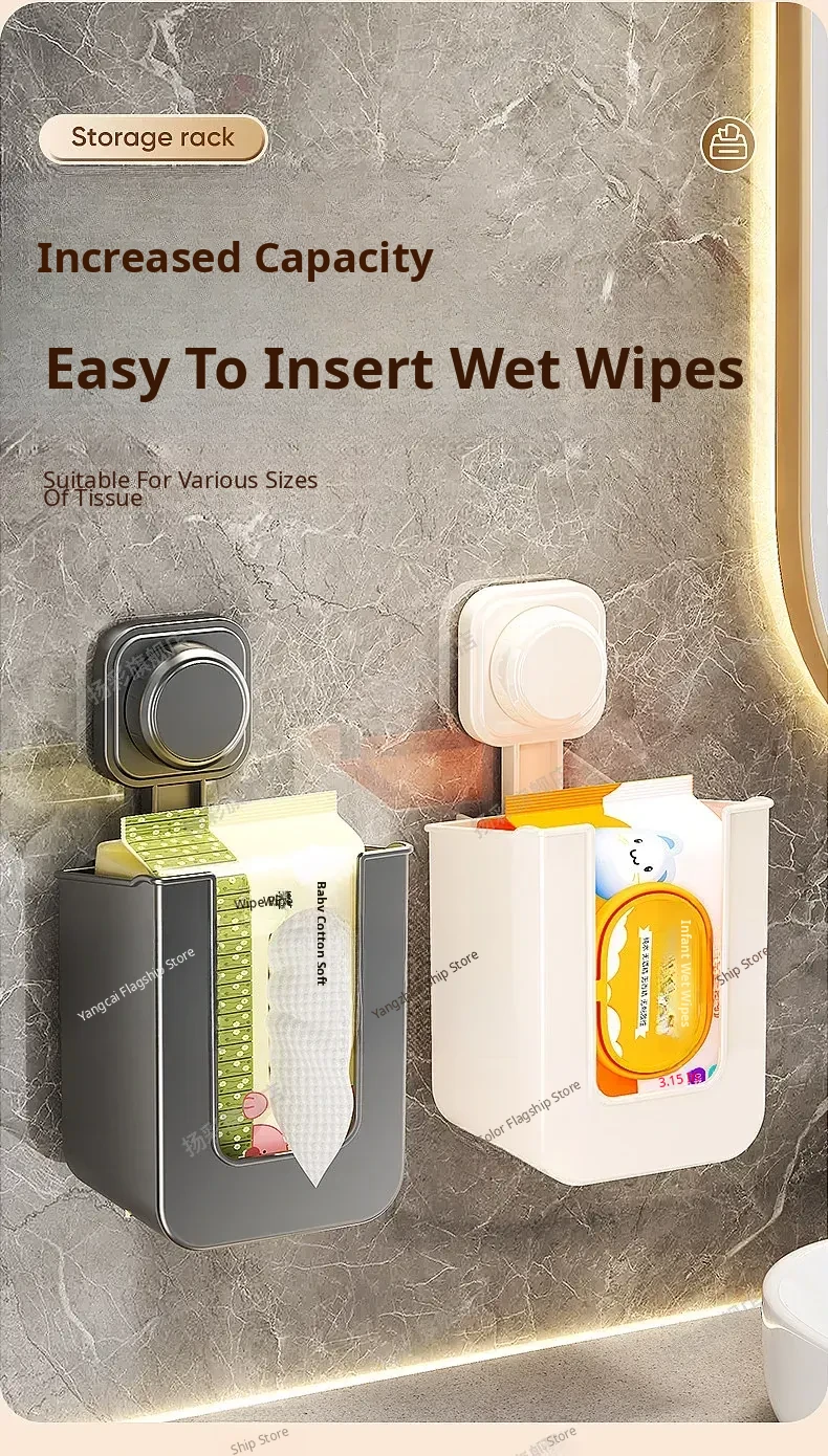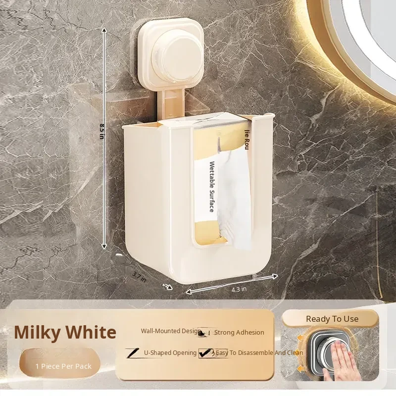 Suction Cup Wet Wipe Storage Box - No Drilling Needed, Wall-Mounted Toilet Paper Holder, Versatile Tissue and Wet Wipe Dispenser for Bathroom Convenience
