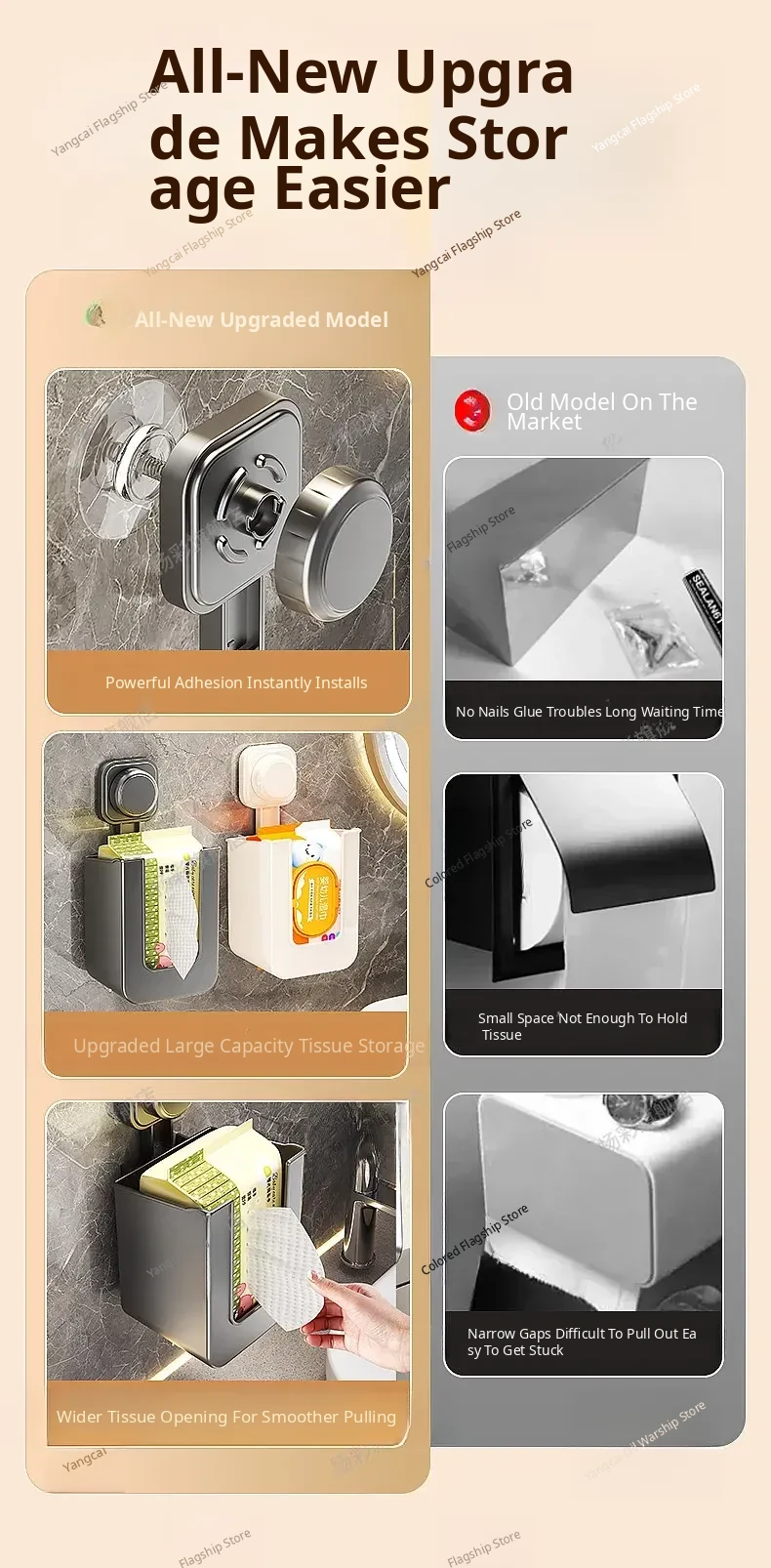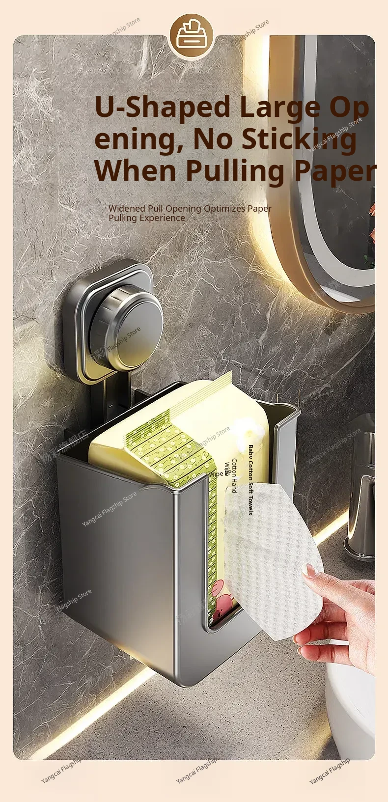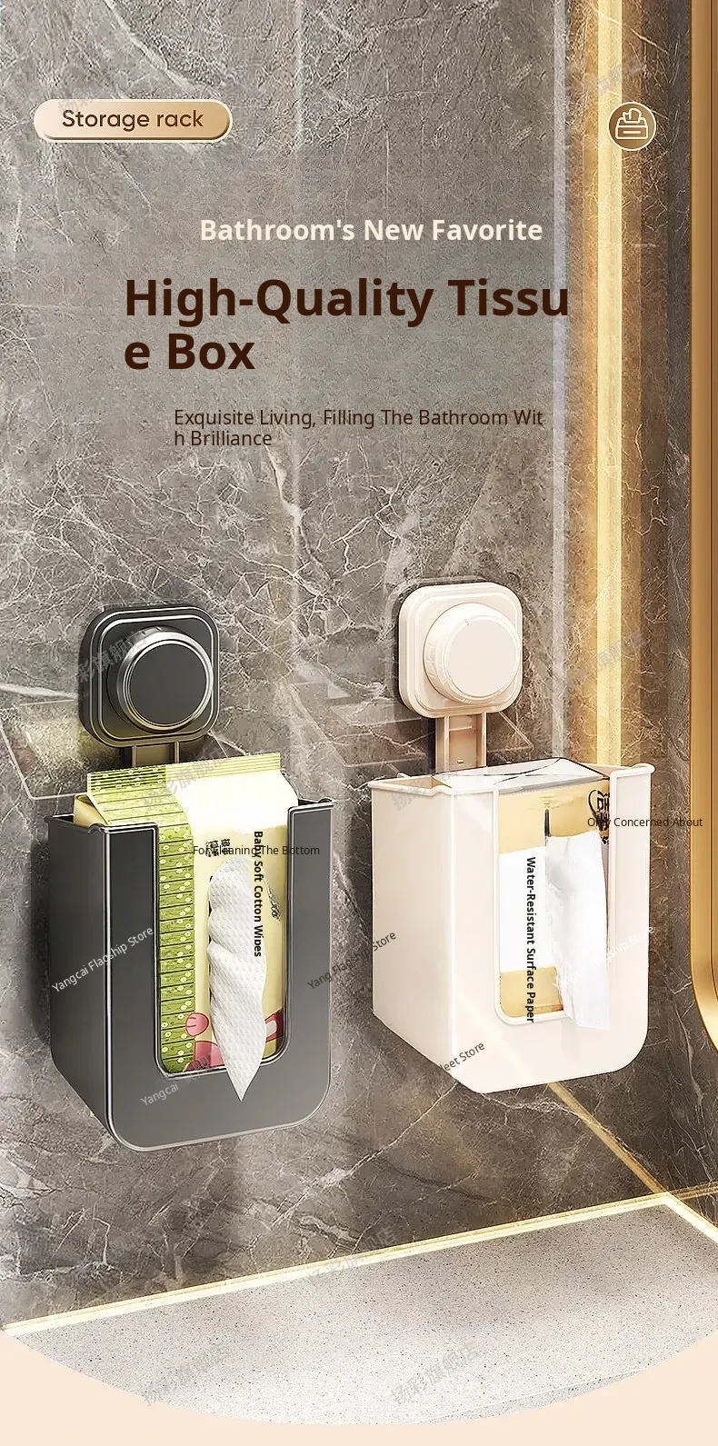 Suction Cup Wet Wipe Storage Box - No Drilling Needed, Wall-Mounted Toilet Paper Holder, Versatile Tissue and Wet Wipe Dispenser for Bathroom Convenience