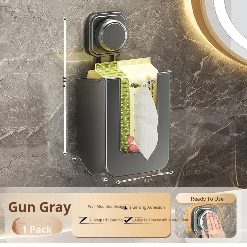 Gun Ash●Suction Cup Wall-Mounted Tissue Box [1 Pack]