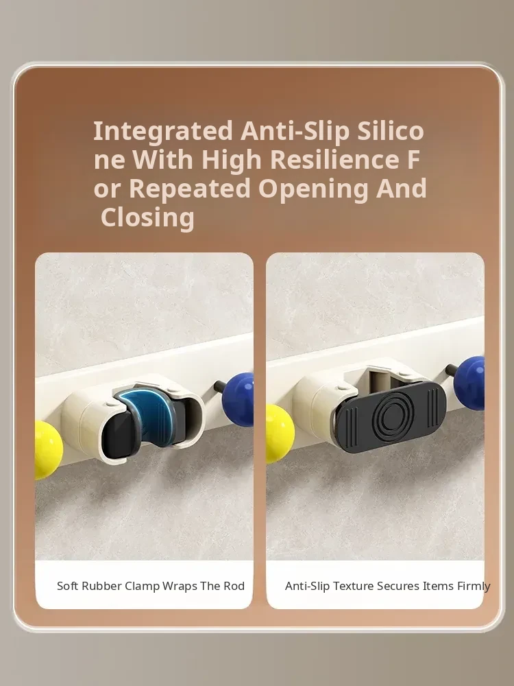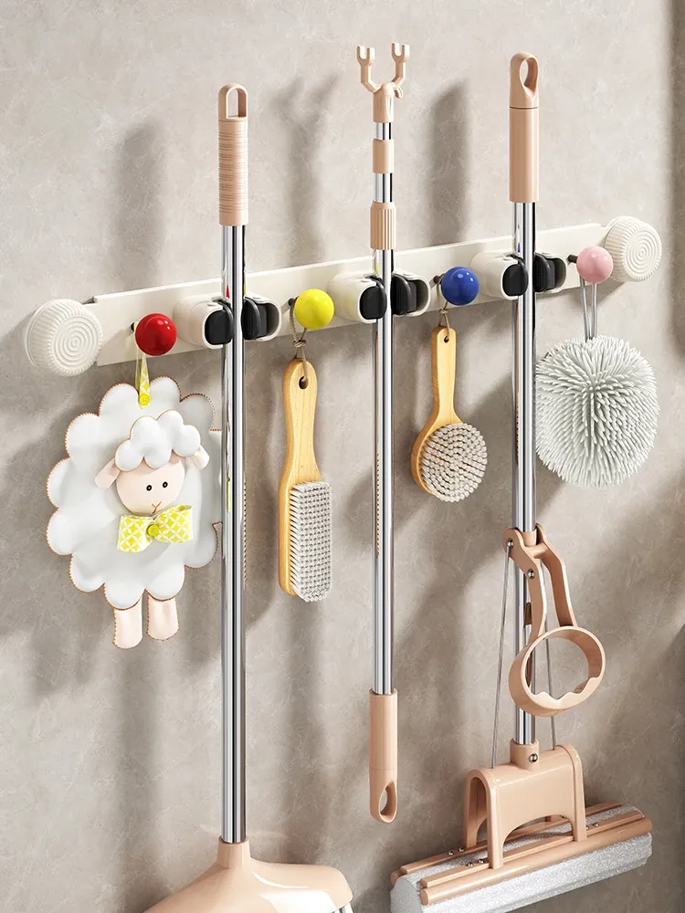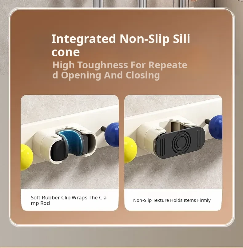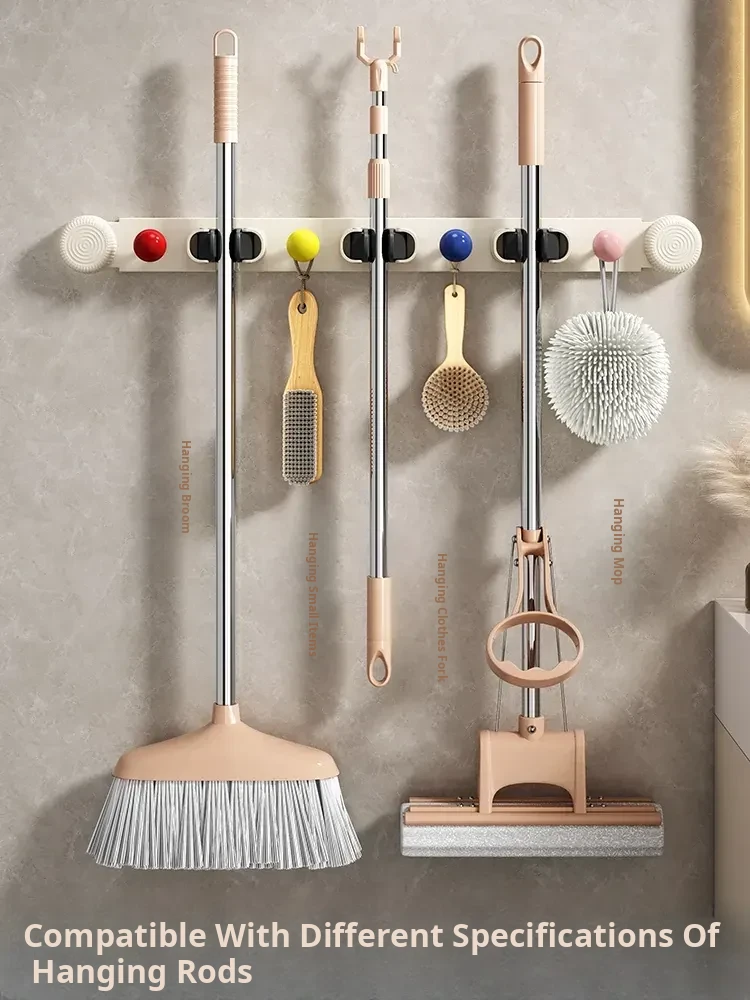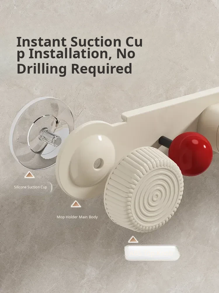Suction Mop Wall Mount Hook - No Drilling Required Bathroom and Toilet Broom Storage Holder - Space-Saving Cleaning Tool Organizer