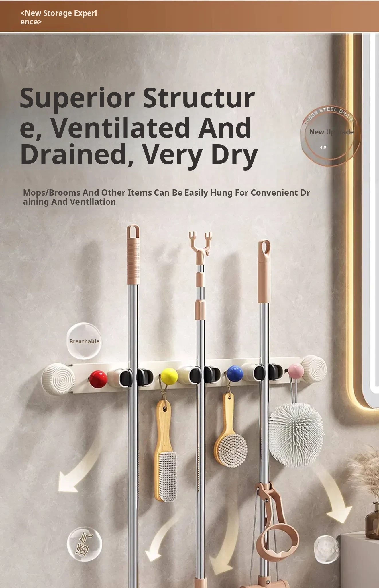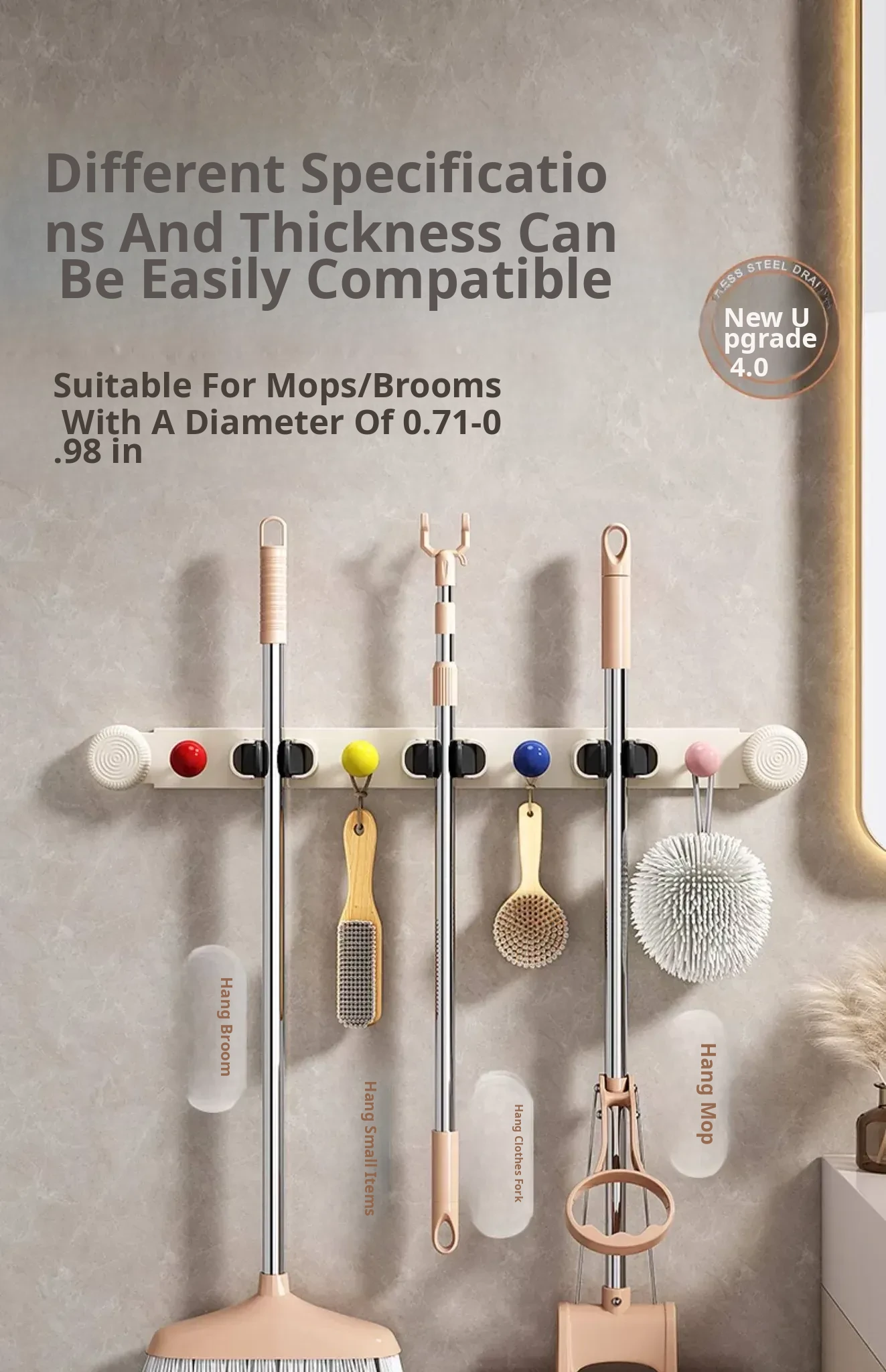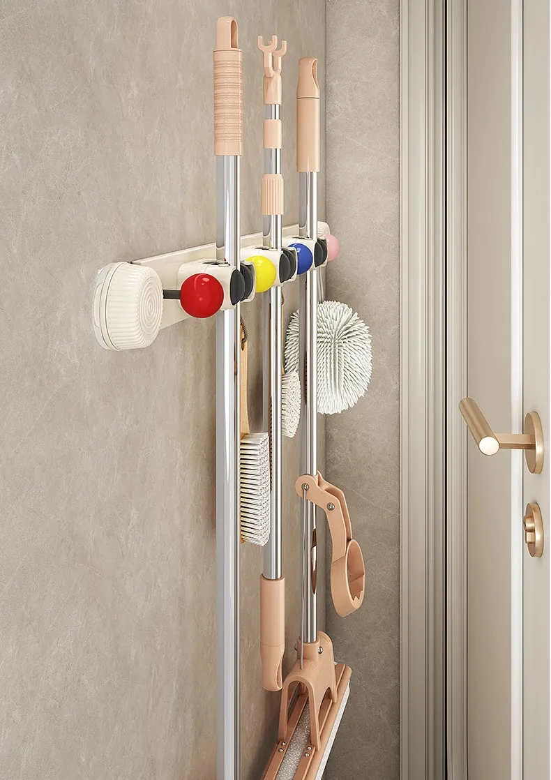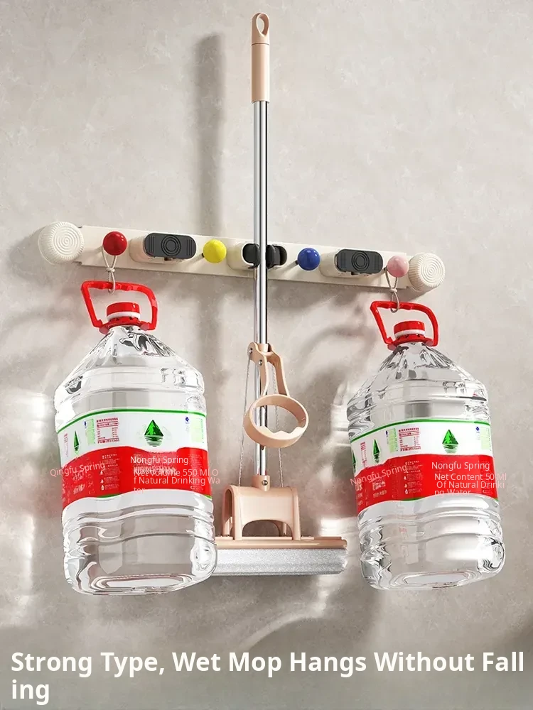 Suction Mop Wall Mount Hook - No Drilling Required Bathroom and Toilet Broom Storage Holder - Space-Saving Cleaning Tool Organizer