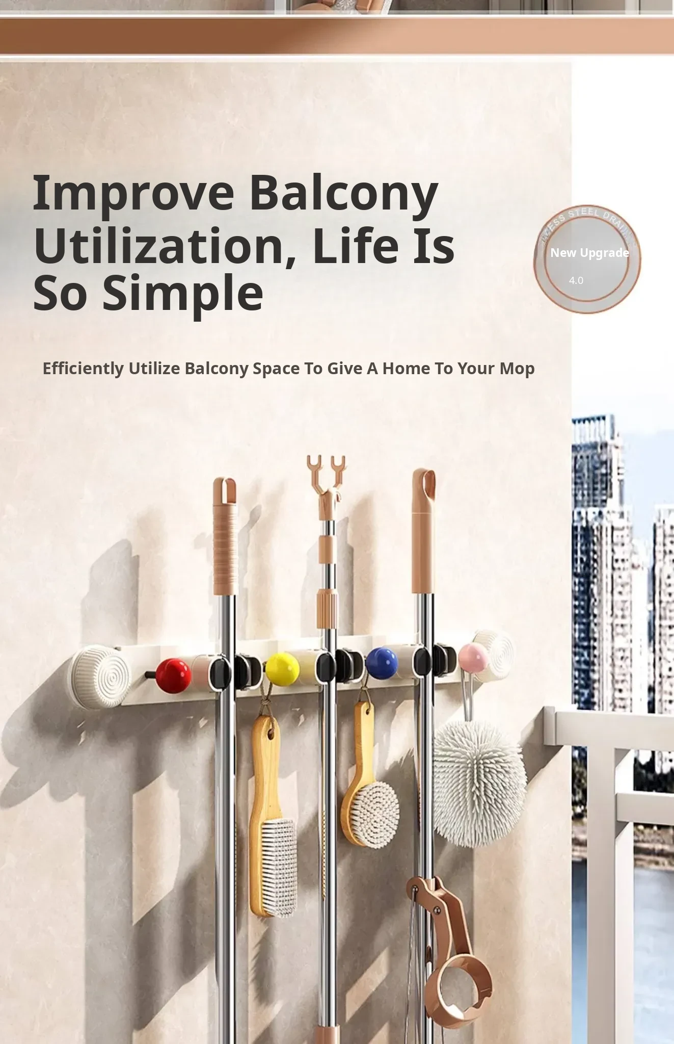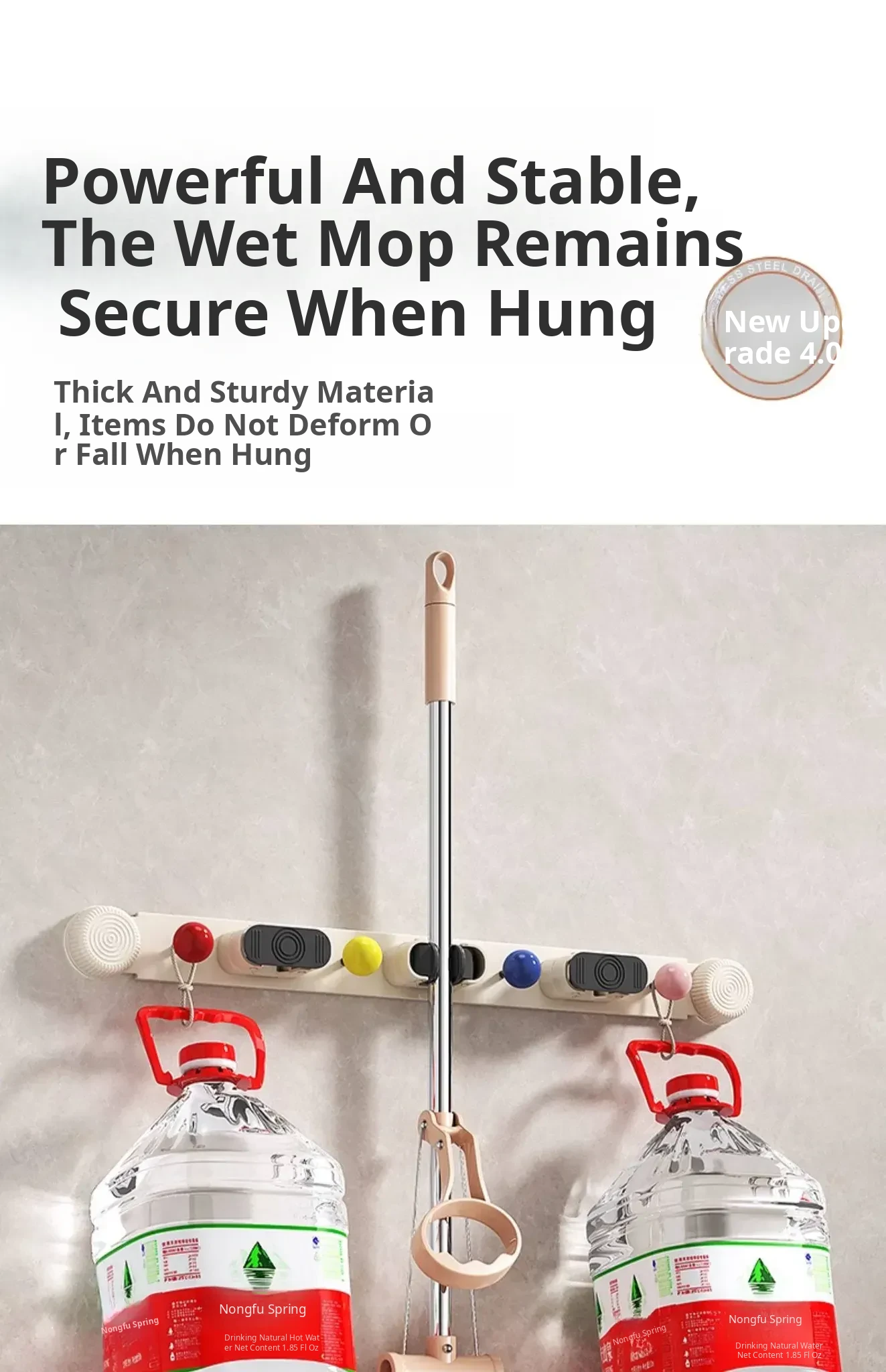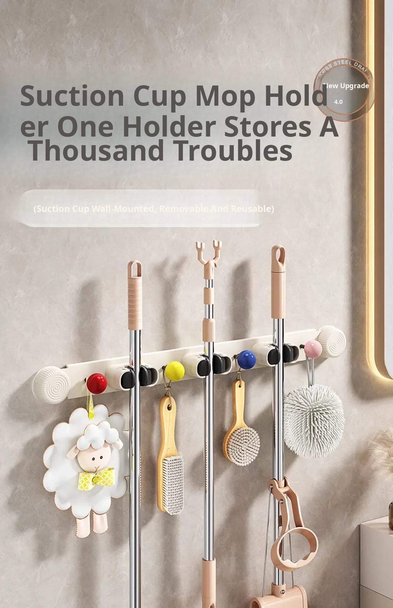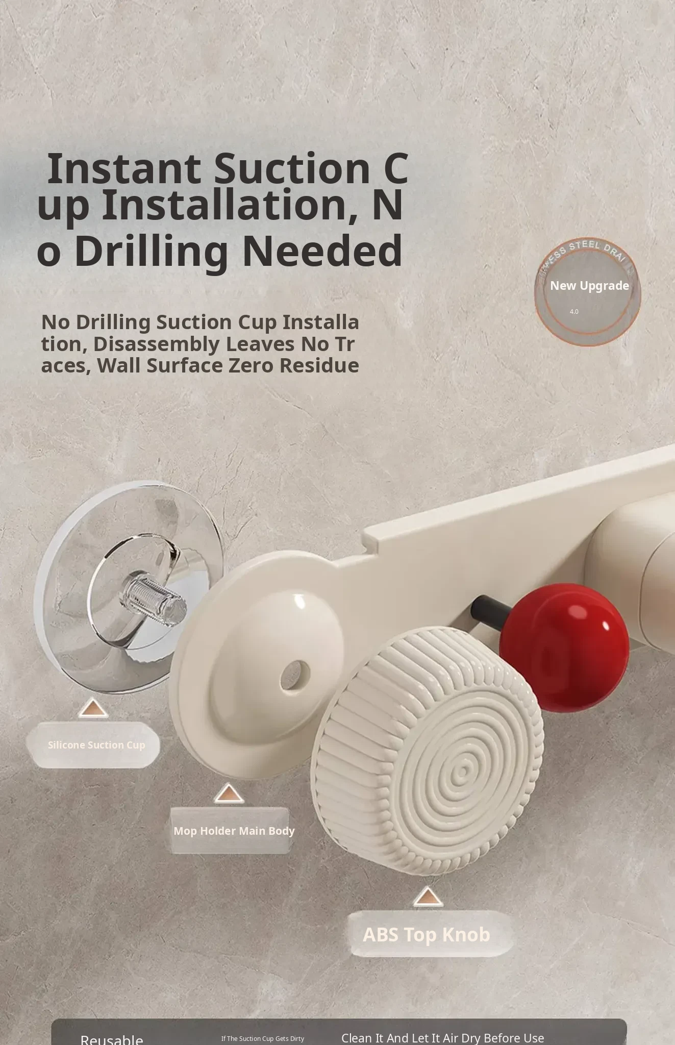 ⭐ Suction Cup Mop Holder ⭐ 3 Clips + 3 Clips