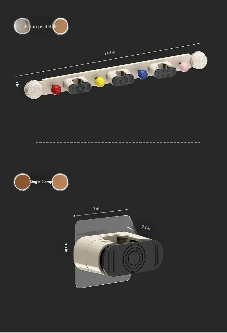 ⭐Suction Cup Mop Holder⭐2 Clips + 3 Clips