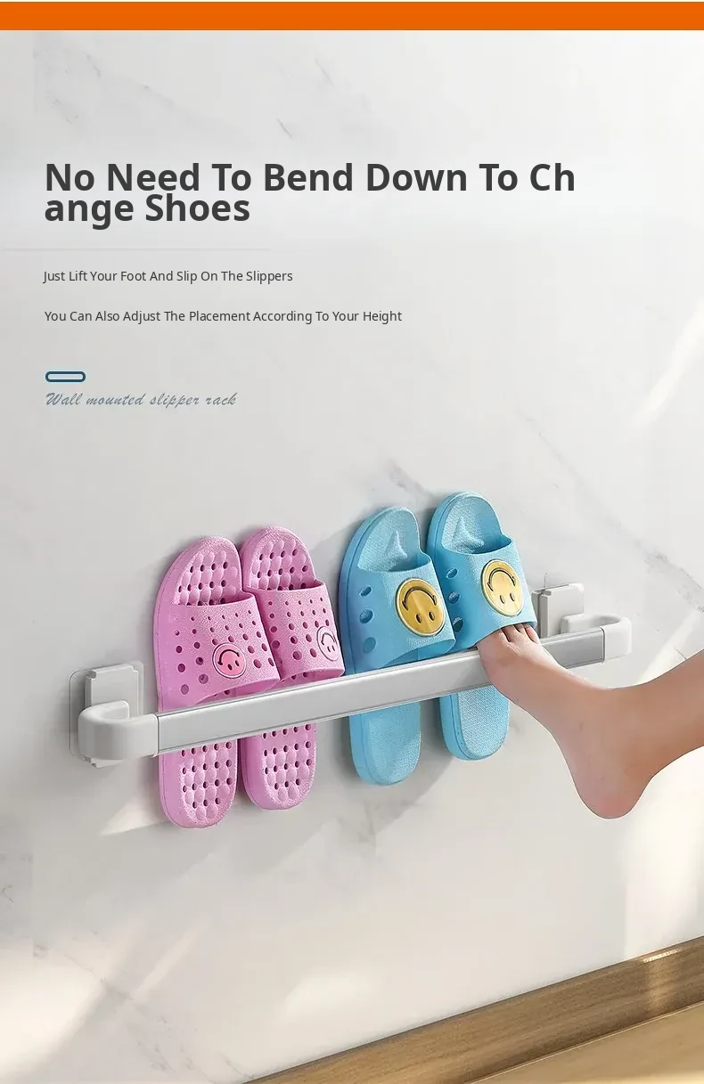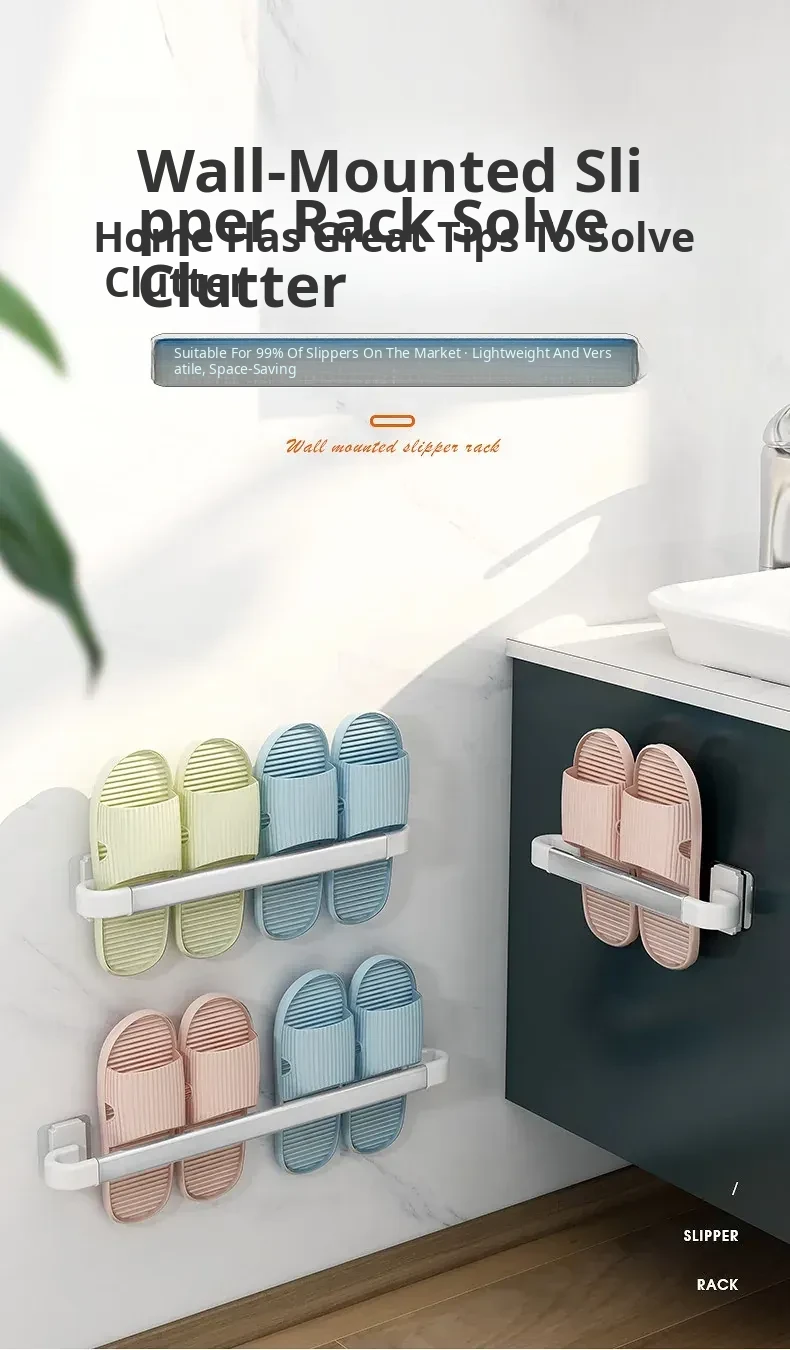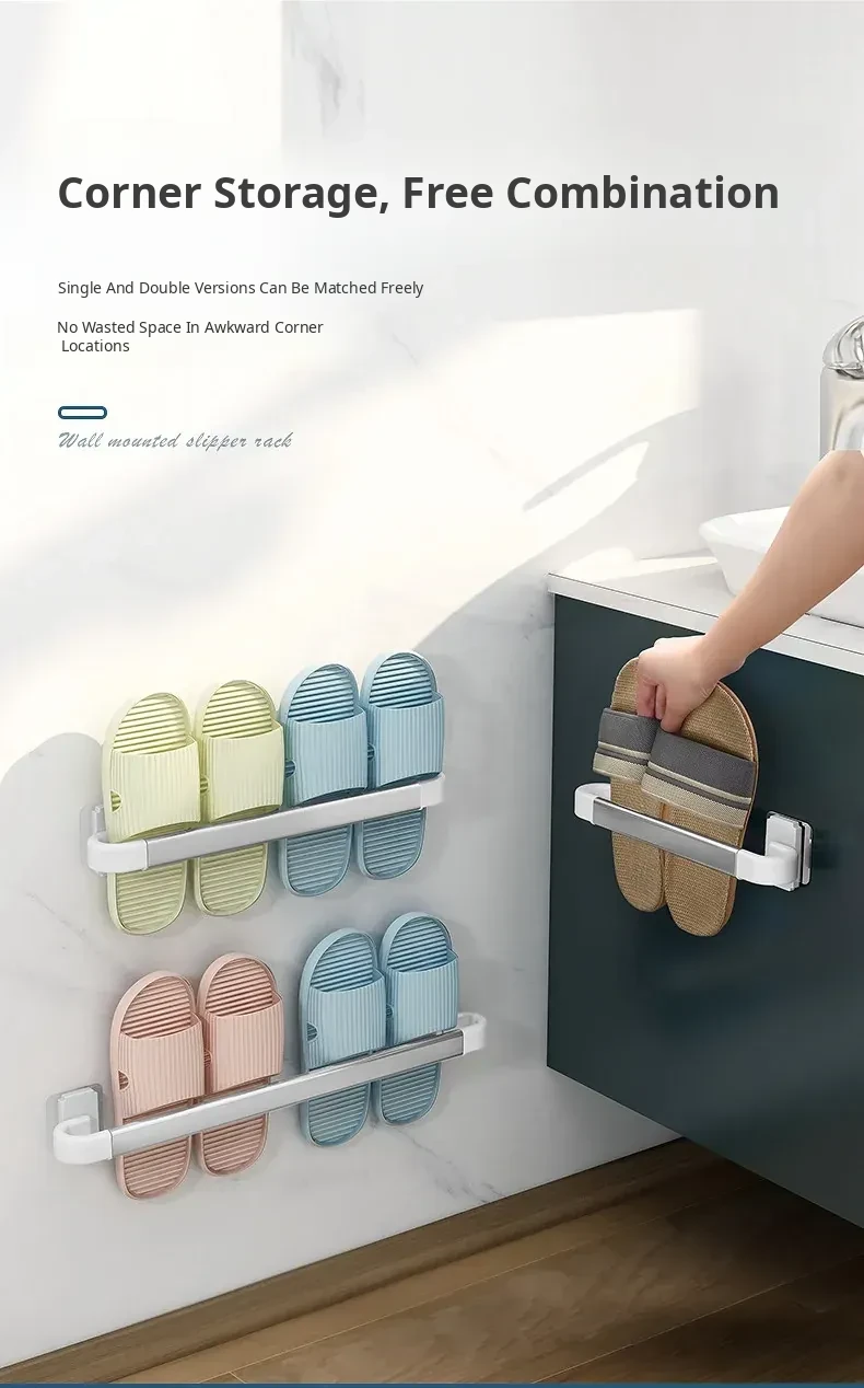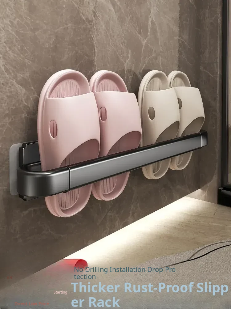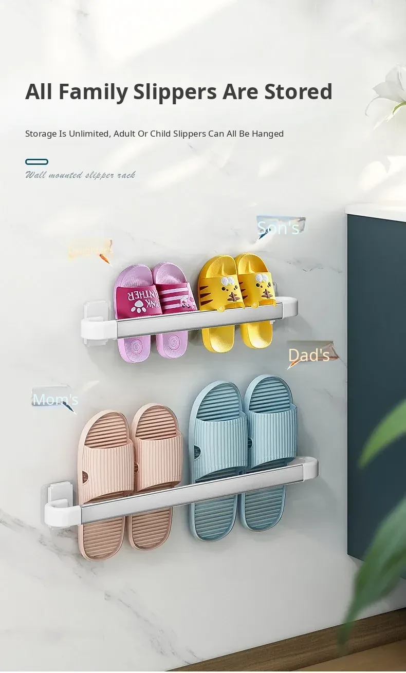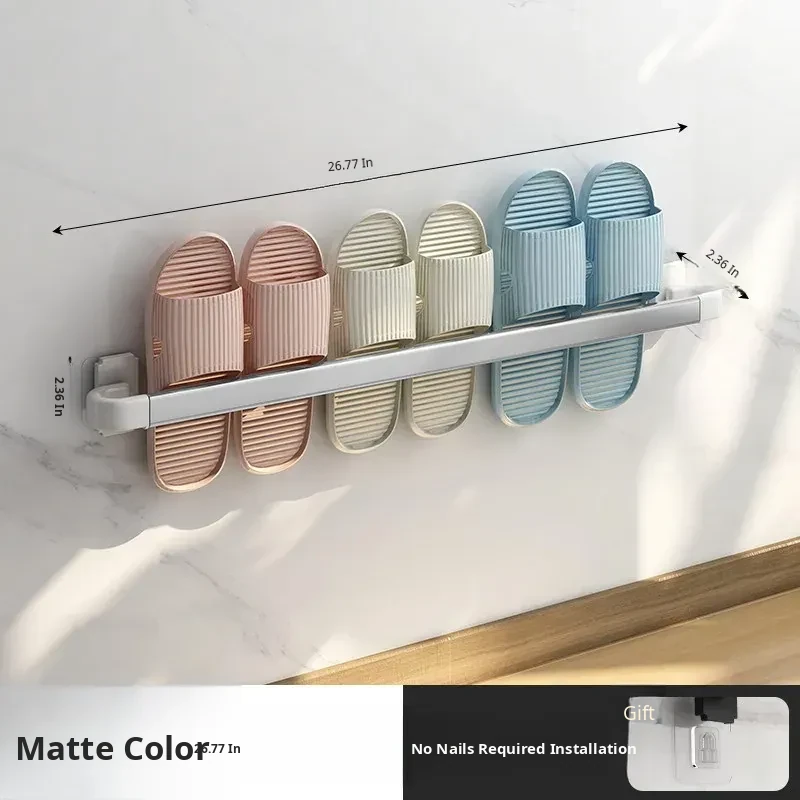 Wall-Mounted Bathroom Slipper Rack - No Drilling Required! Space-Saving Storage Solution for Shoes & Toiletries, Moisture-Proof Design for a Tidy Toilet Space.