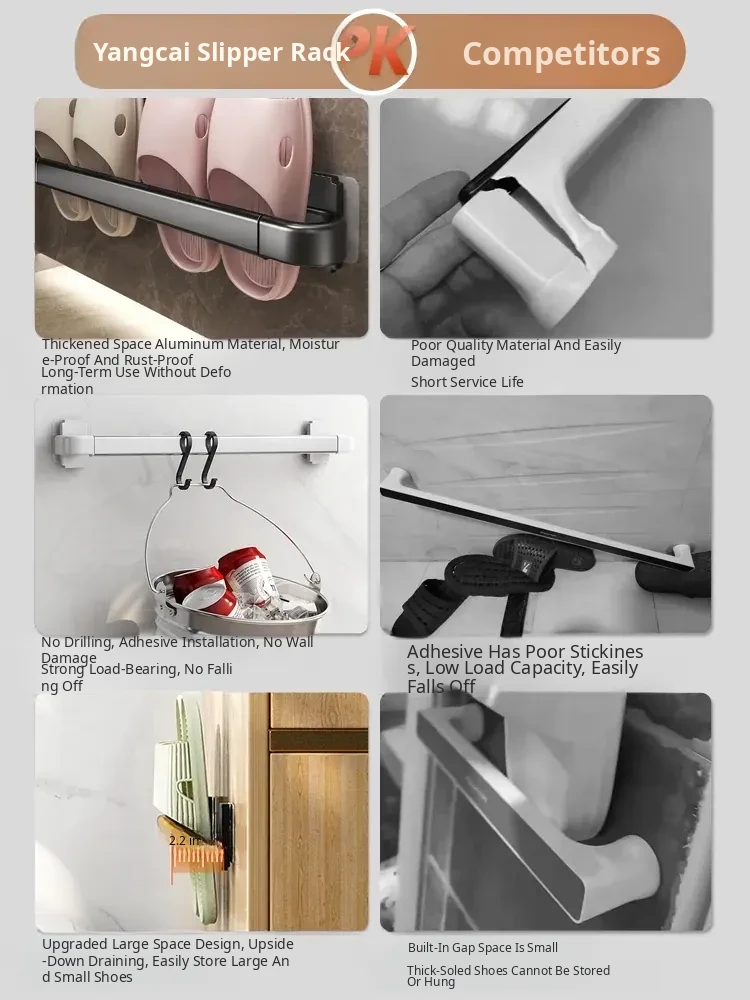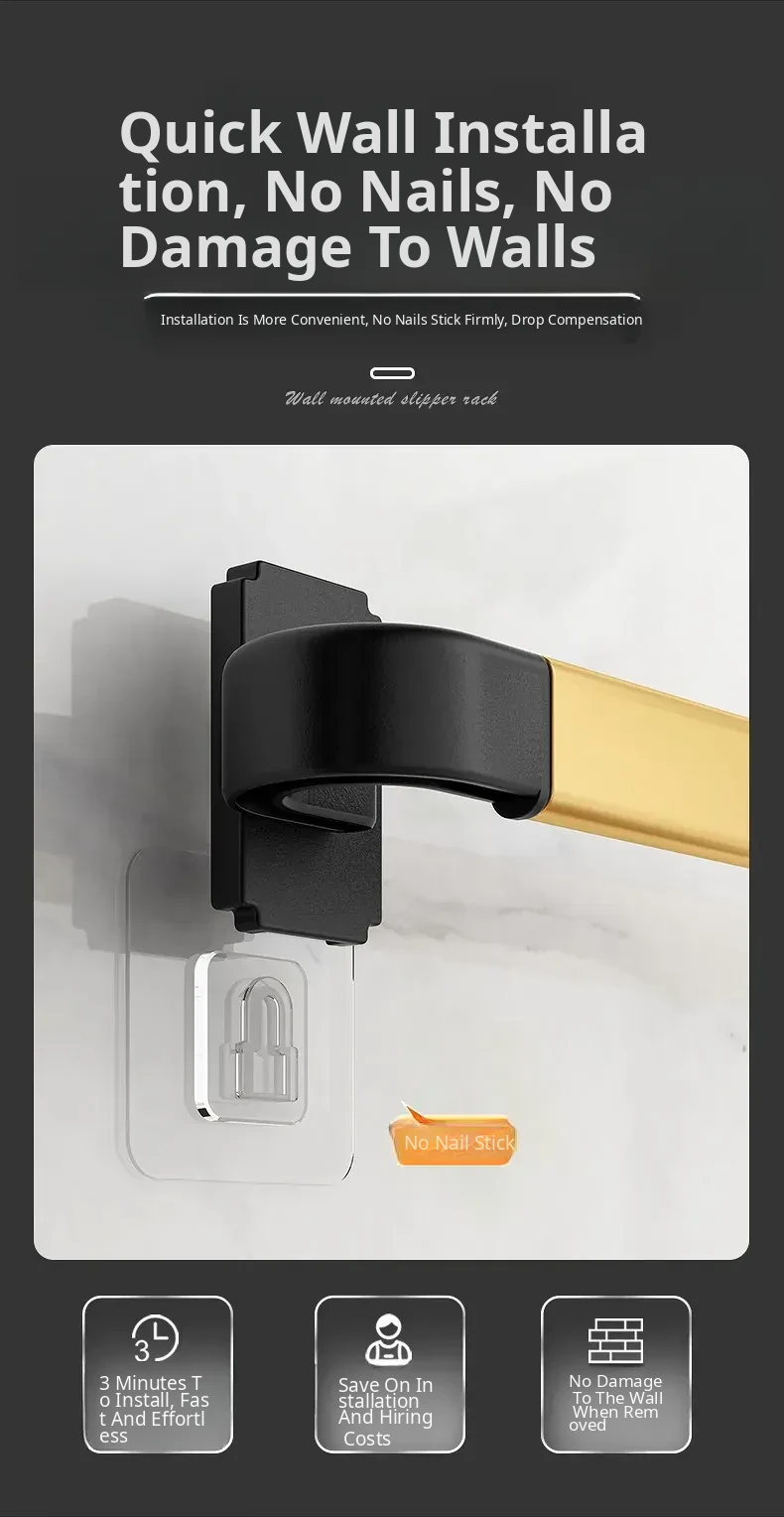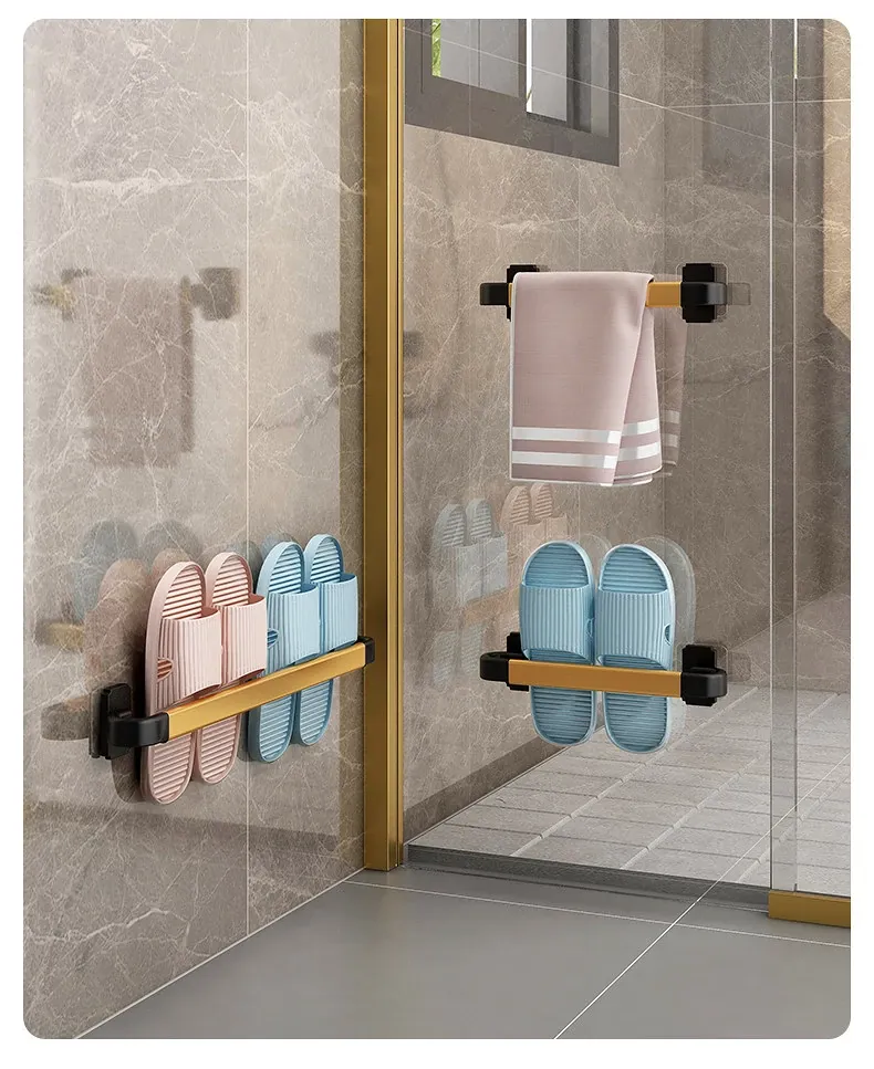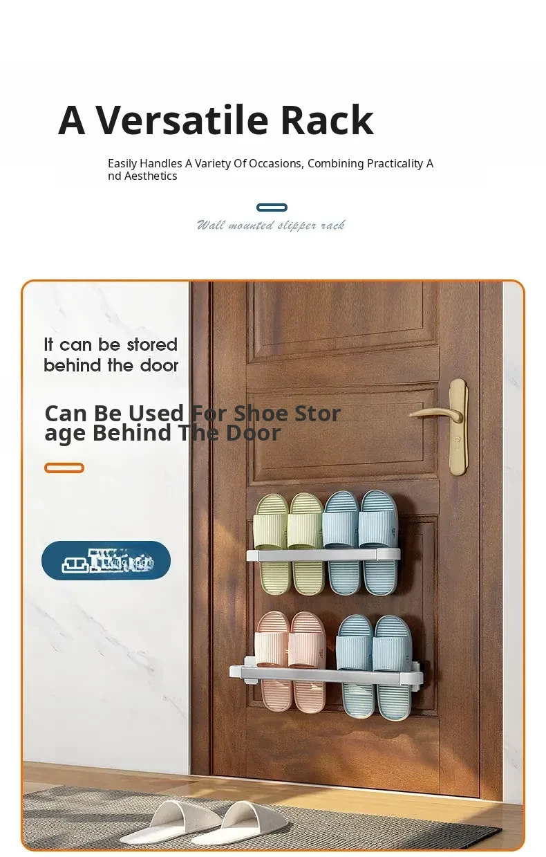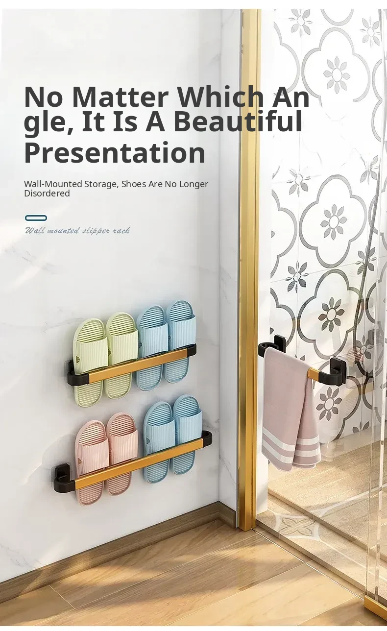 Wall-Mounted Bathroom Slipper Rack - No Drilling Required! Space-Saving Storage Solution for Shoes & Toiletries, Moisture-Proof Design for a Tidy Toilet Space.