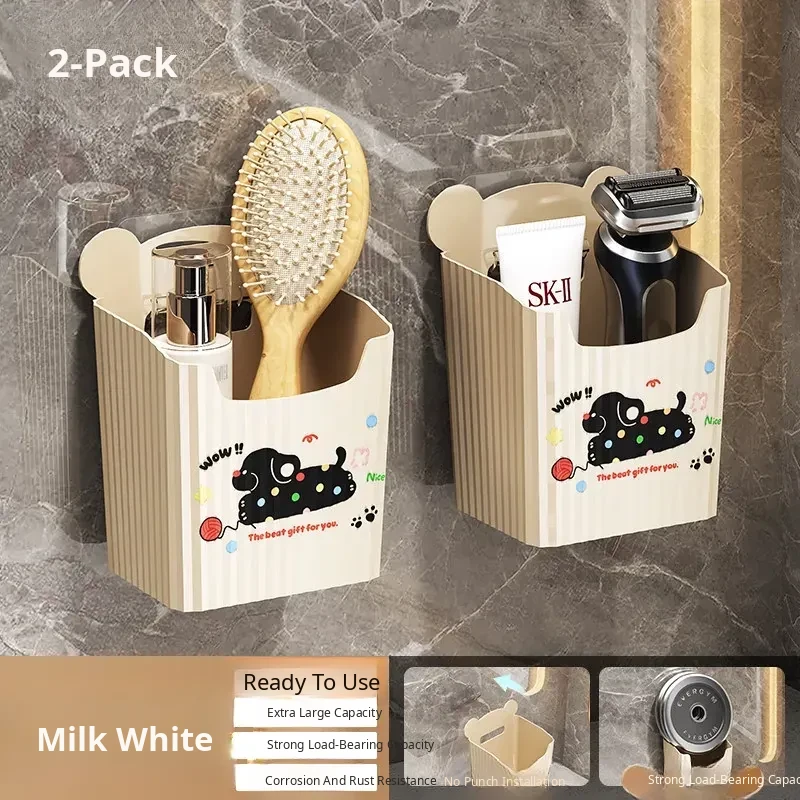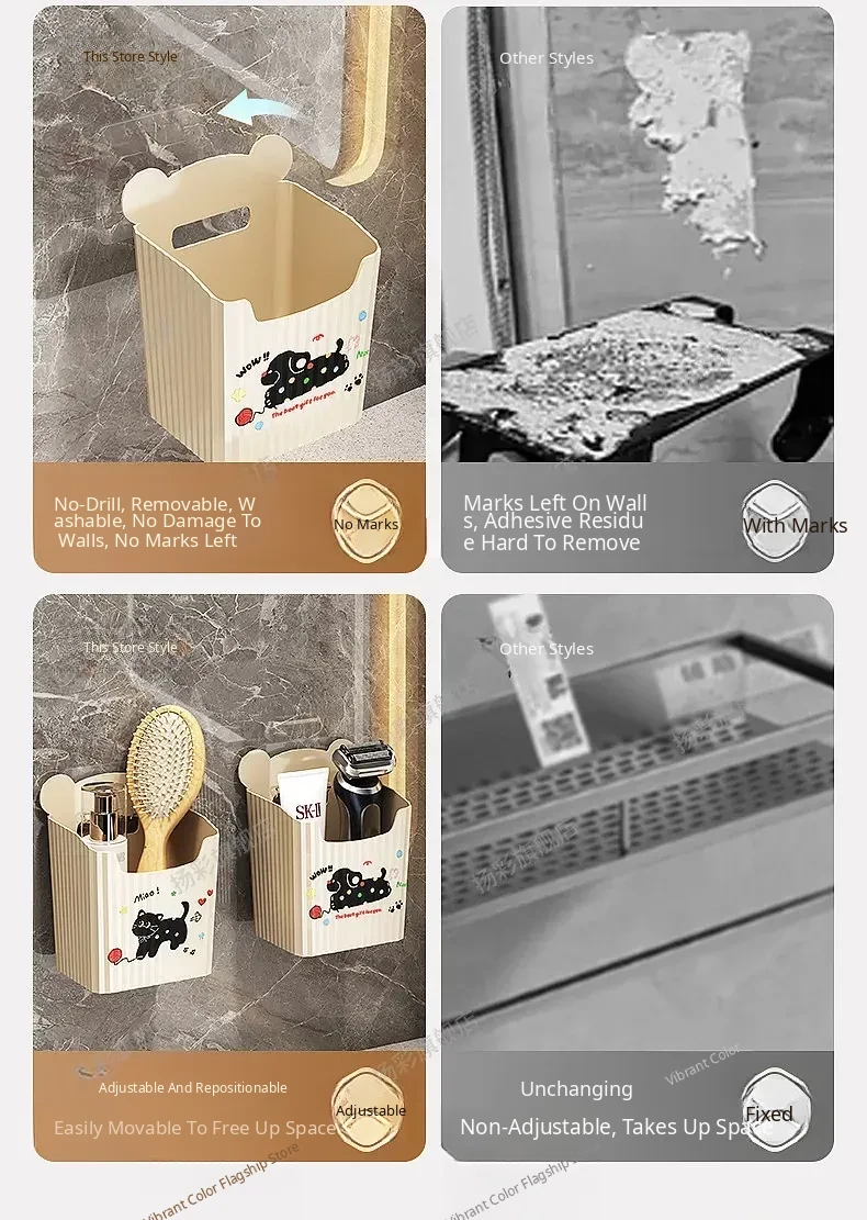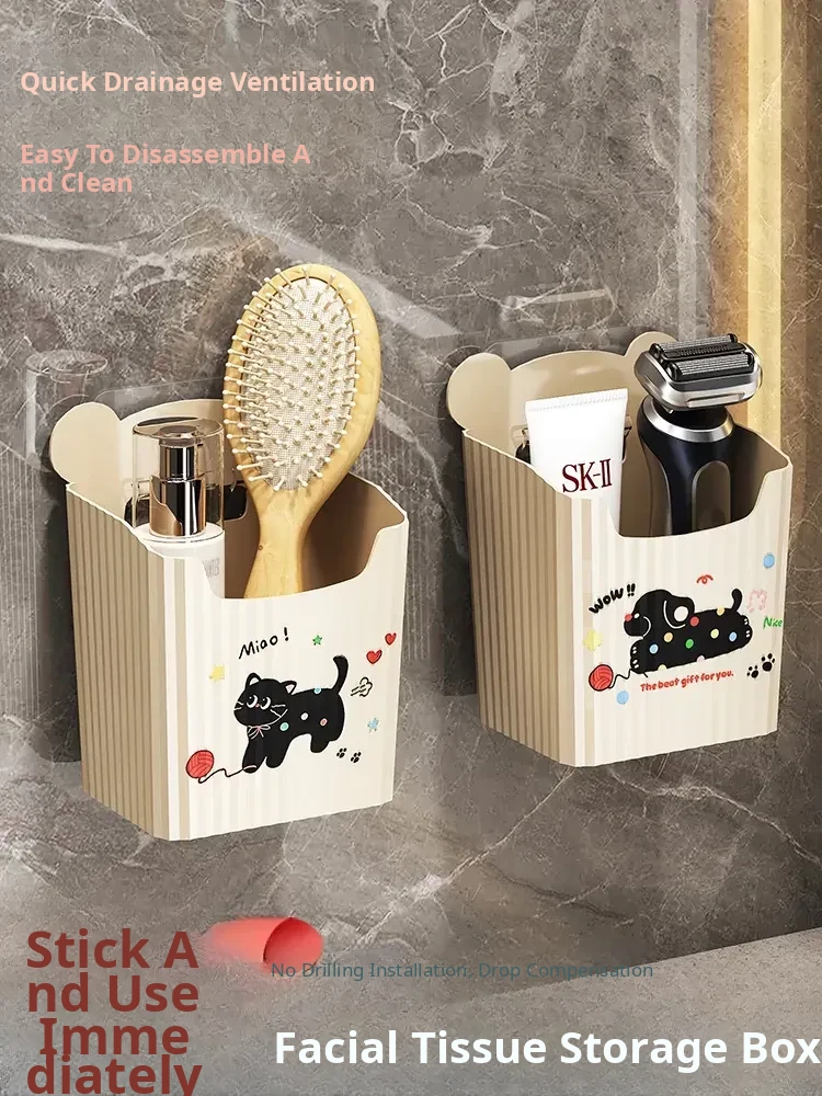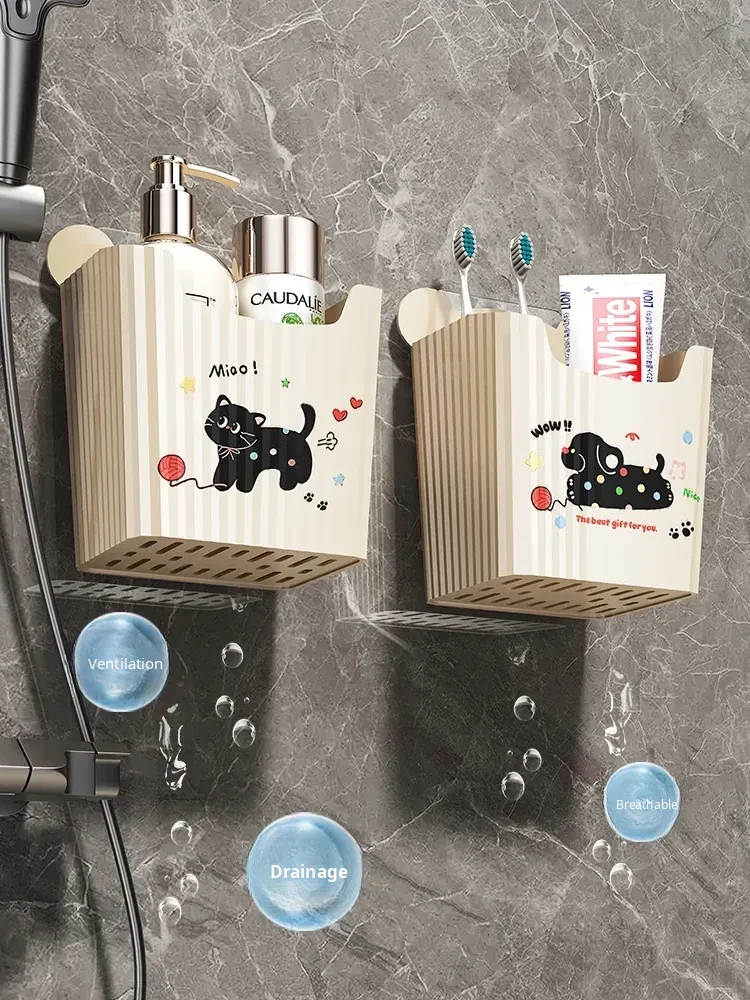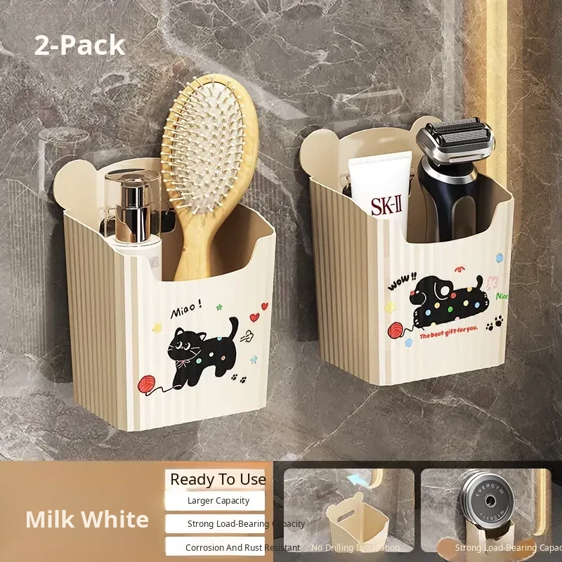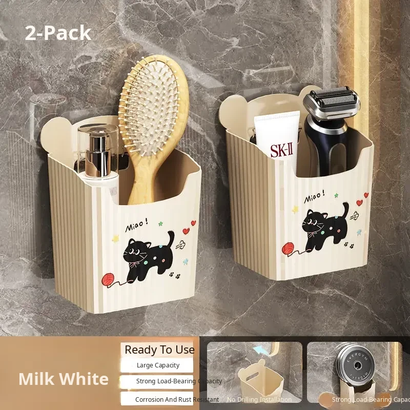 Wall-Mounted Bathroom Storage Rack - No Drilling Required, Perfect for Organizing Toiletries and Cosmetics in Your Restroom! Ideal for Space-Saving Solutions in Your Washroom.