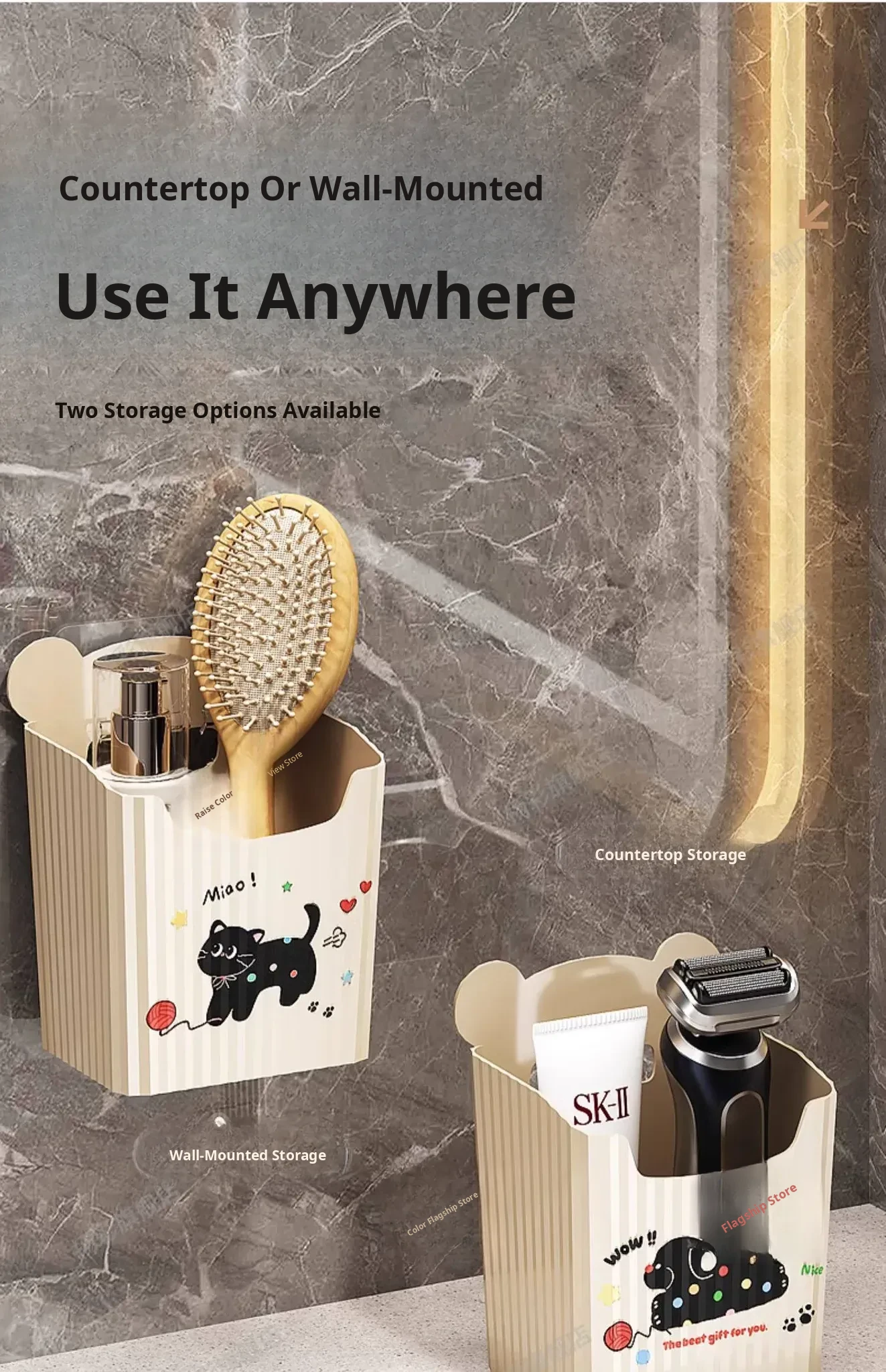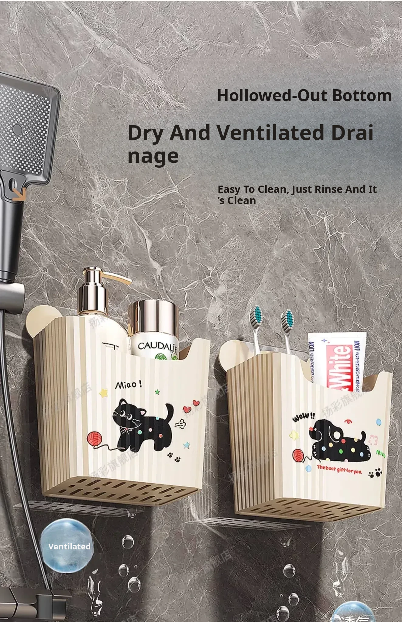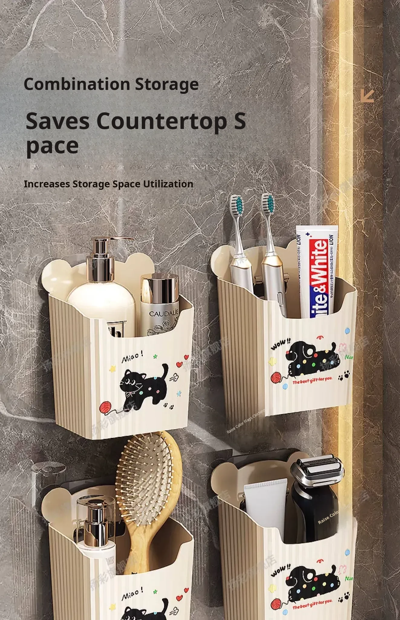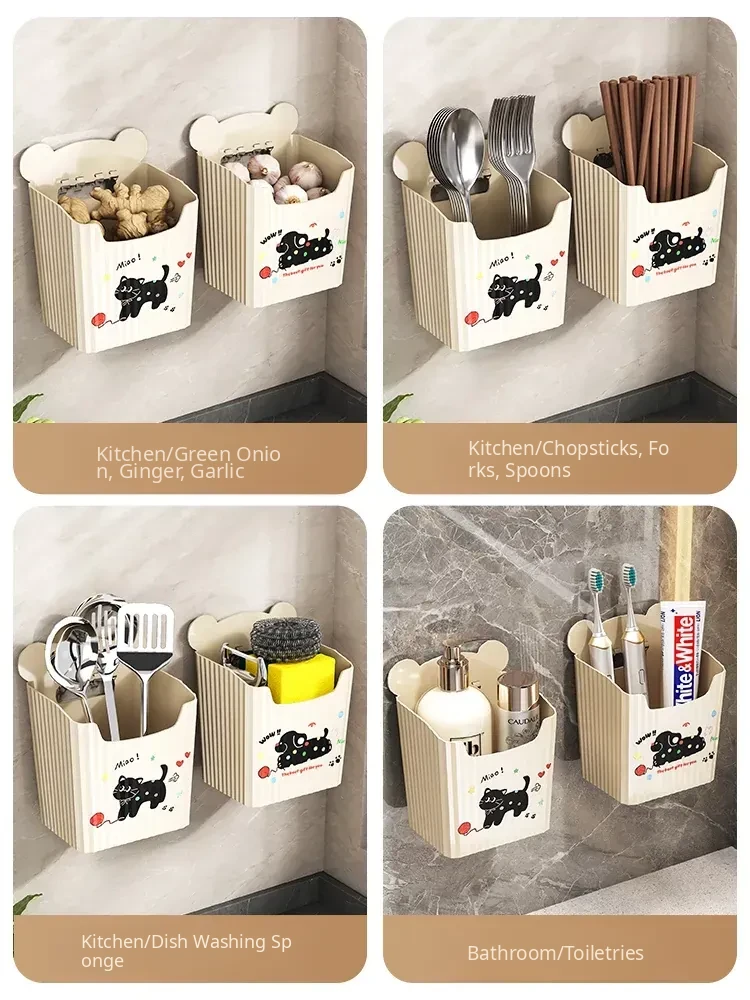 Wall-Mounted Bathroom Storage Rack - No Drilling Required, Perfect for Organizing Toiletries and Cosmetics in Your Restroom! Ideal for Space-Saving Solutions in Your Washroom.
