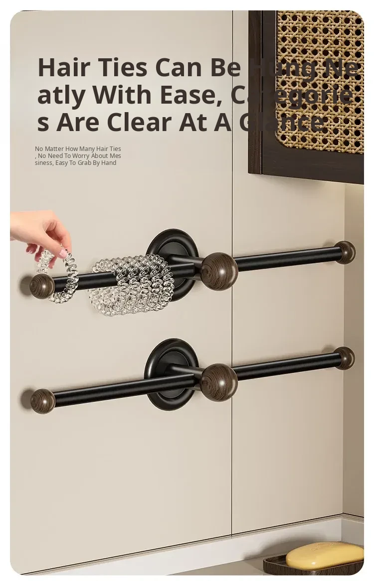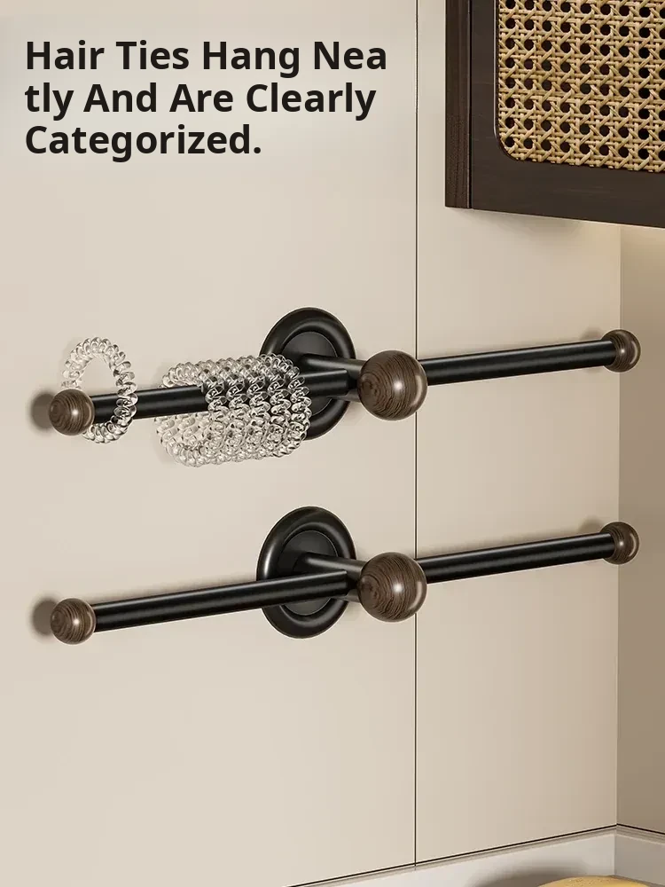 Wall-Mounted Hair Accessory Organizer - Walnut Wood No-Drill Storage Solution for Hair Ties, Headbands, and Clips - Keep Your Bathroom Neat and Stylish!