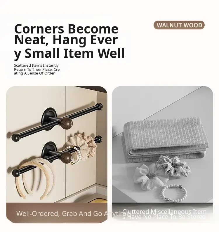 [Walnut Color] Double Ball Hair Accessories Hanger●19.69in