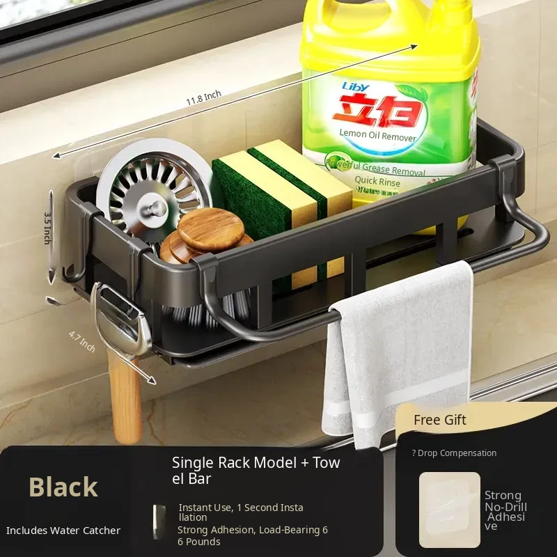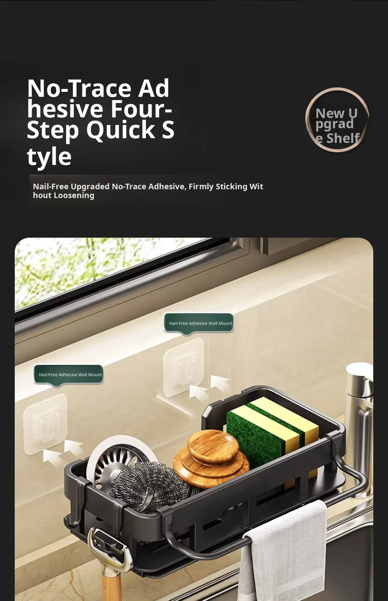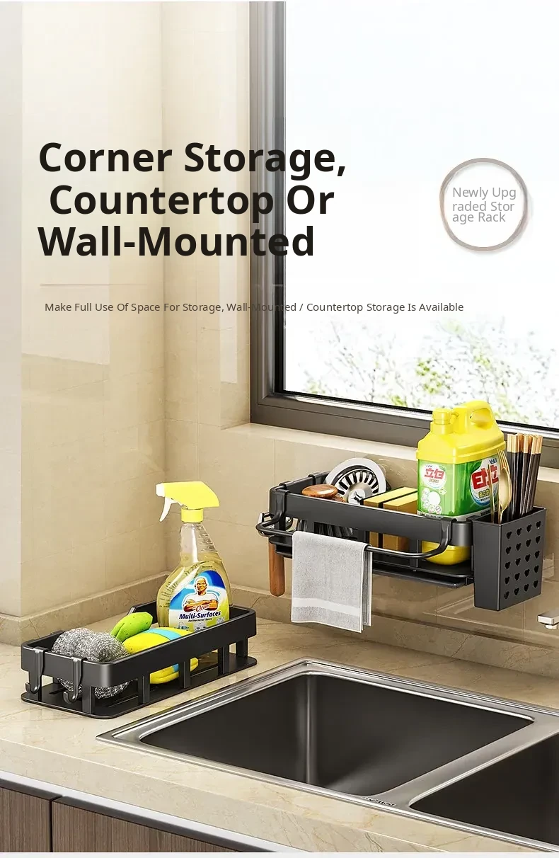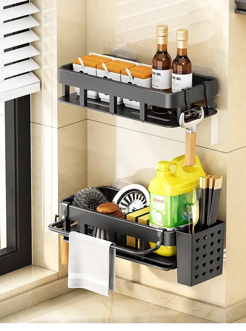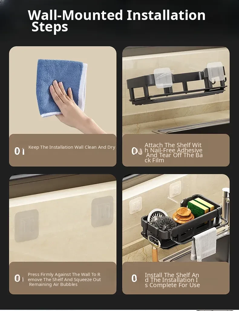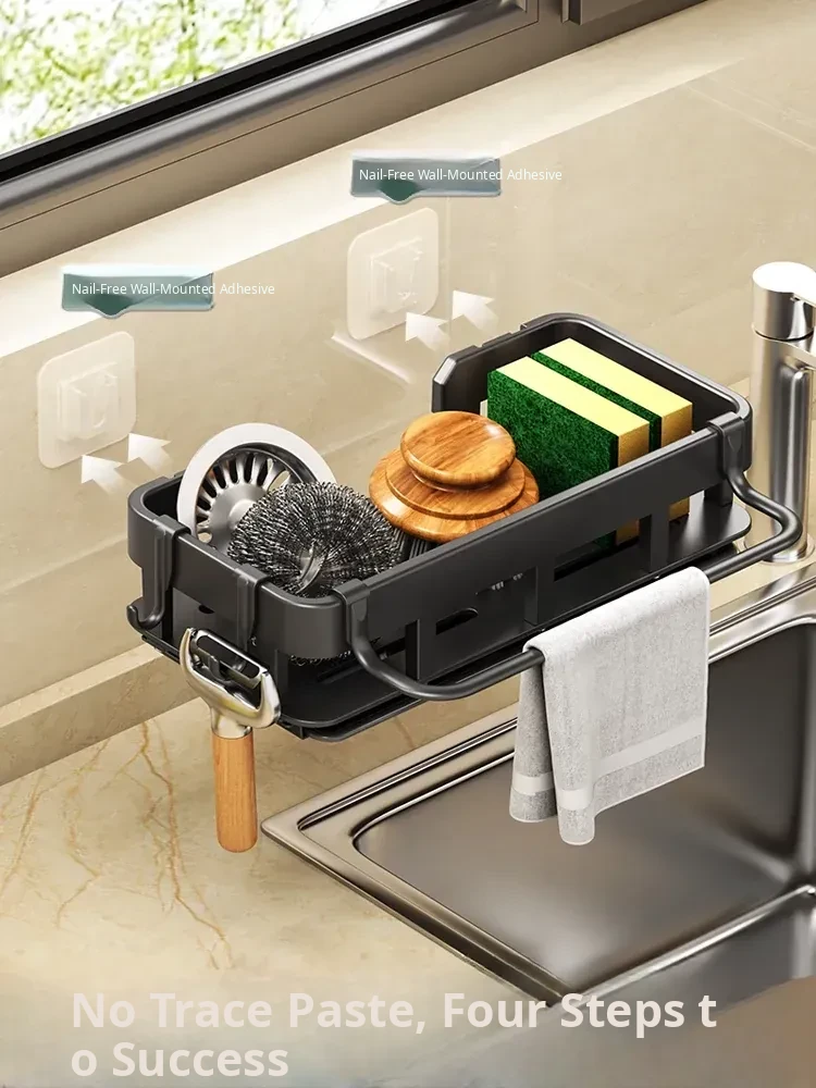 Wall-Mounted Kitchen Sink Organizer - No Drilling Required, Multi-Functional Rack for Dishcloths and Seasonings, Perfect Space-Saving Solution for Home Use!