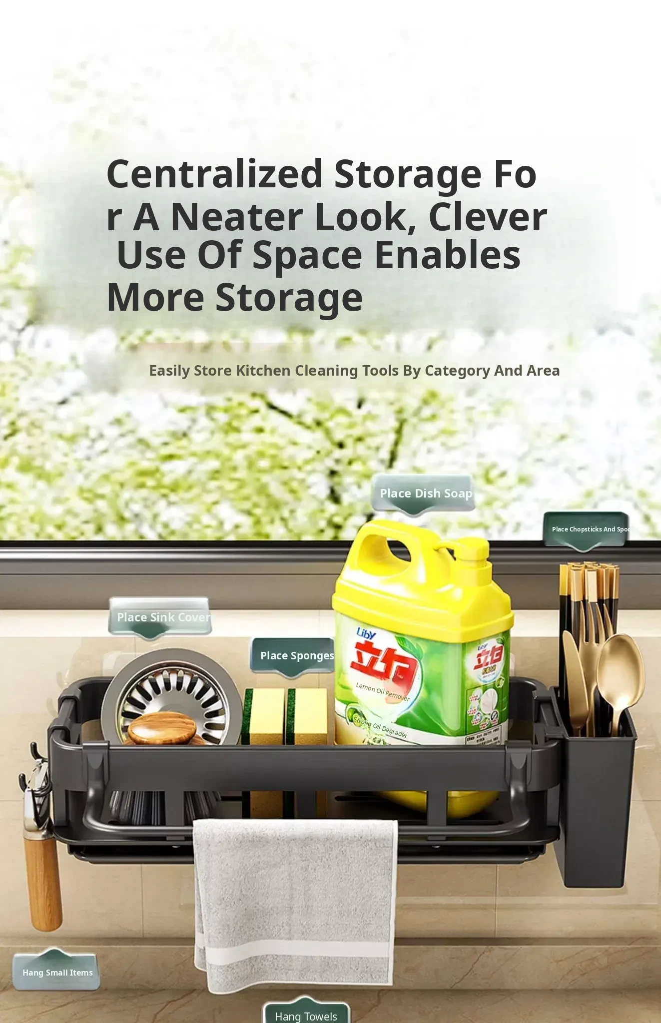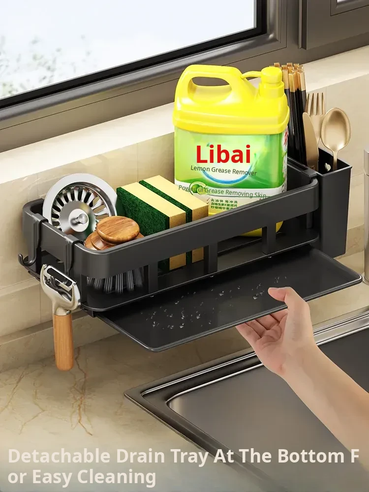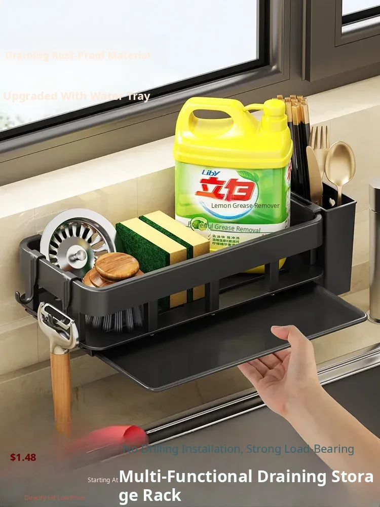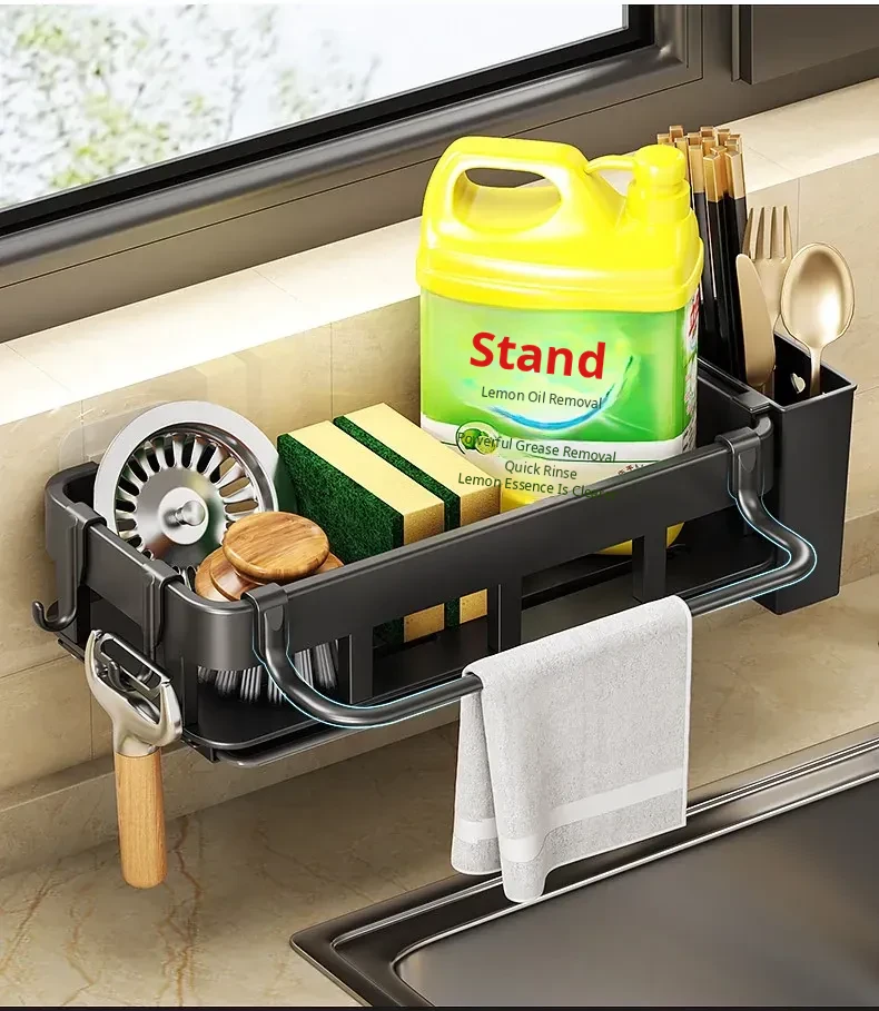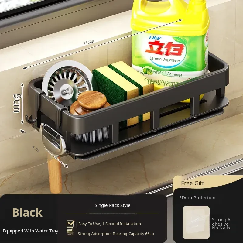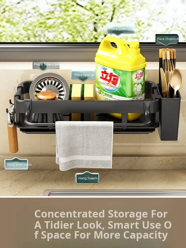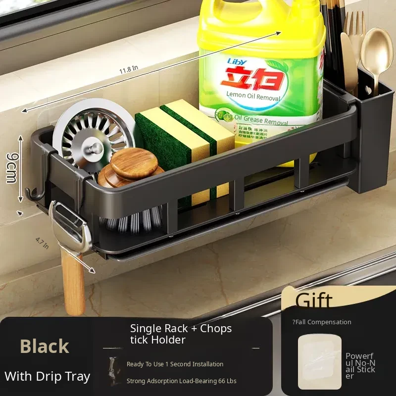 Wall-Mounted Kitchen Sink Organizer - No Drilling Required, Multi-Functional Rack for Dishcloths and Seasonings, Perfect Space-Saving Solution for Home Use!