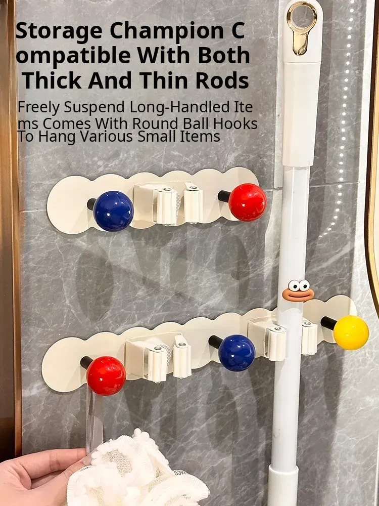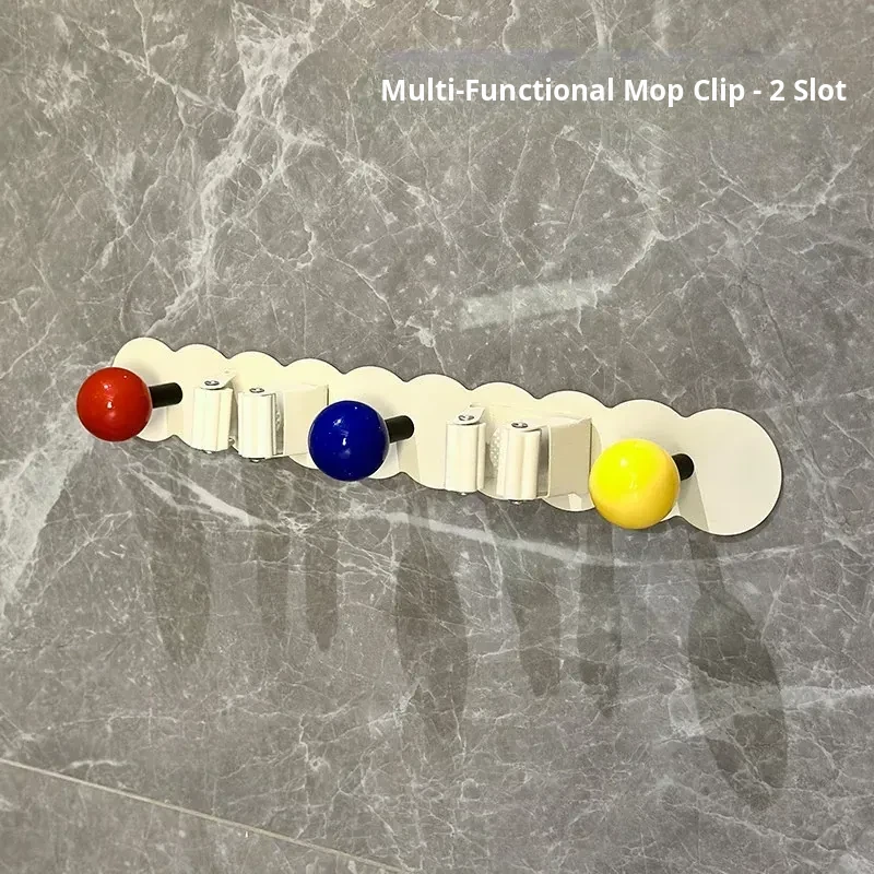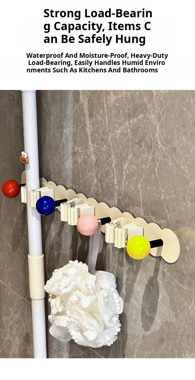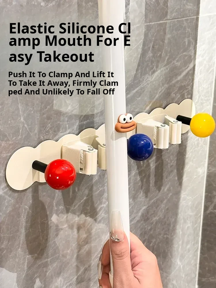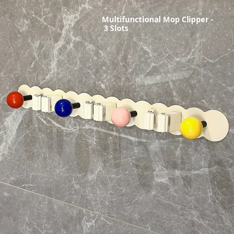 Wall-Mounted Mop Holder with No-Drill Hooks - The Ultimate Space-Saving Solution for Your Bathroom! Keep Your Mops and Brooms Organized and Easily Accessible with This Innovative Mop Clip!