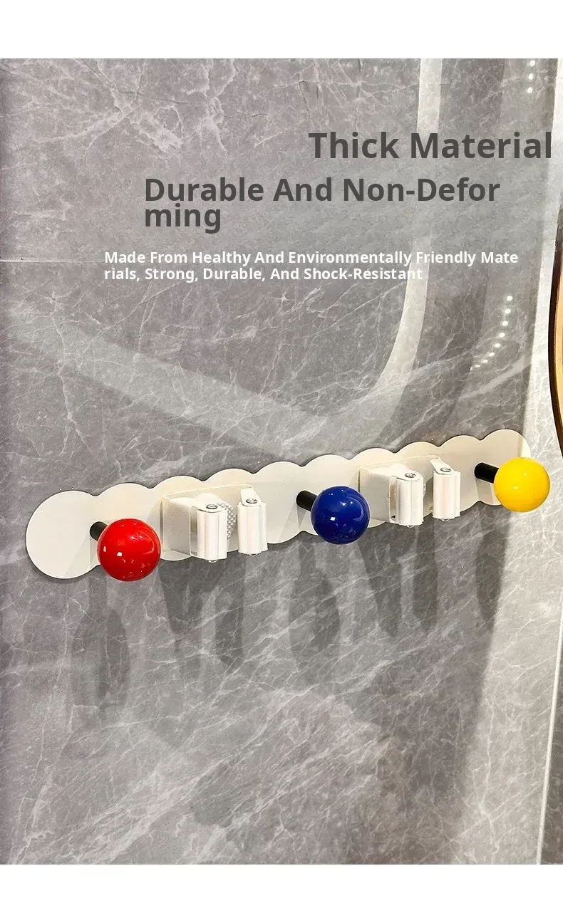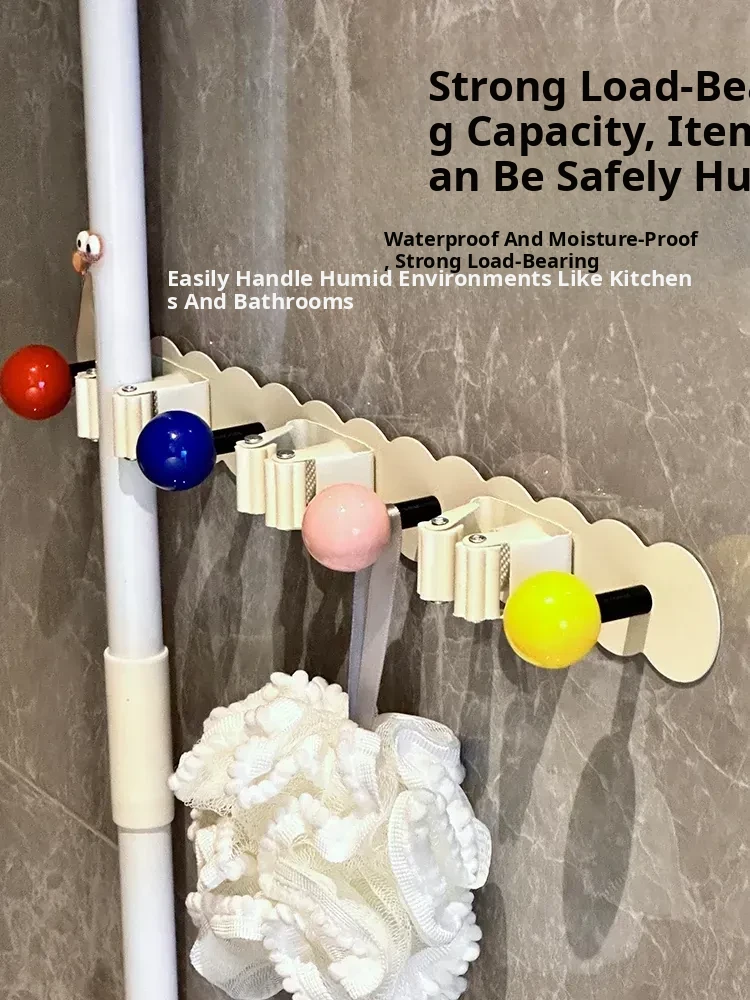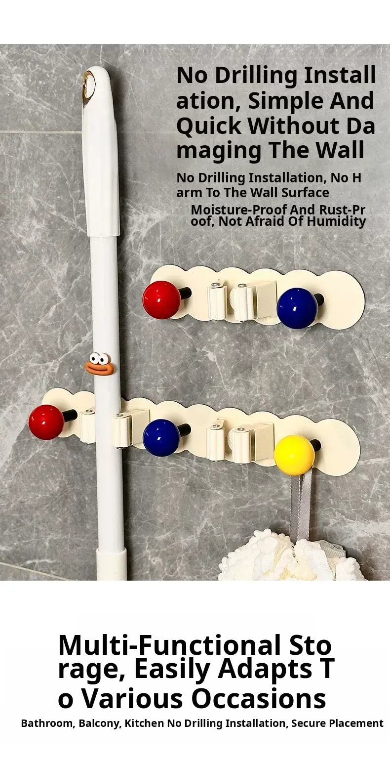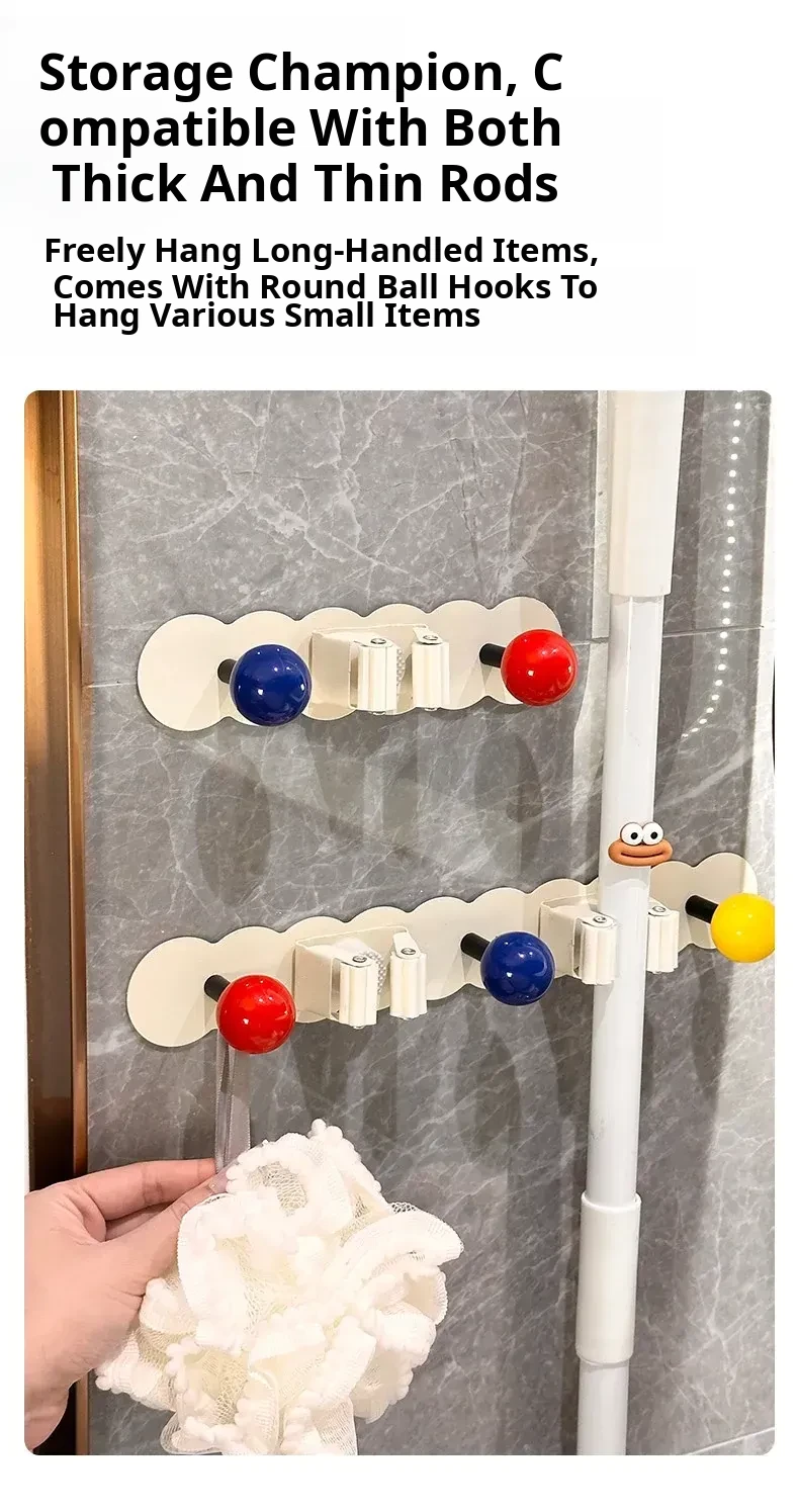Wall-Mounted Mop Holder with No-Drill Hooks - The Ultimate Space-Saving Solution for Your Bathroom! Keep Your Mops and Brooms Organized and Easily Accessible with This Innovative Mop Clip!