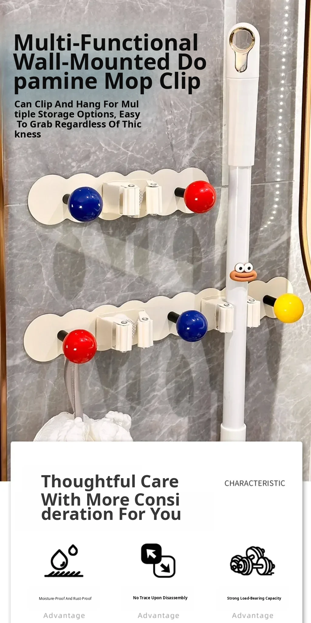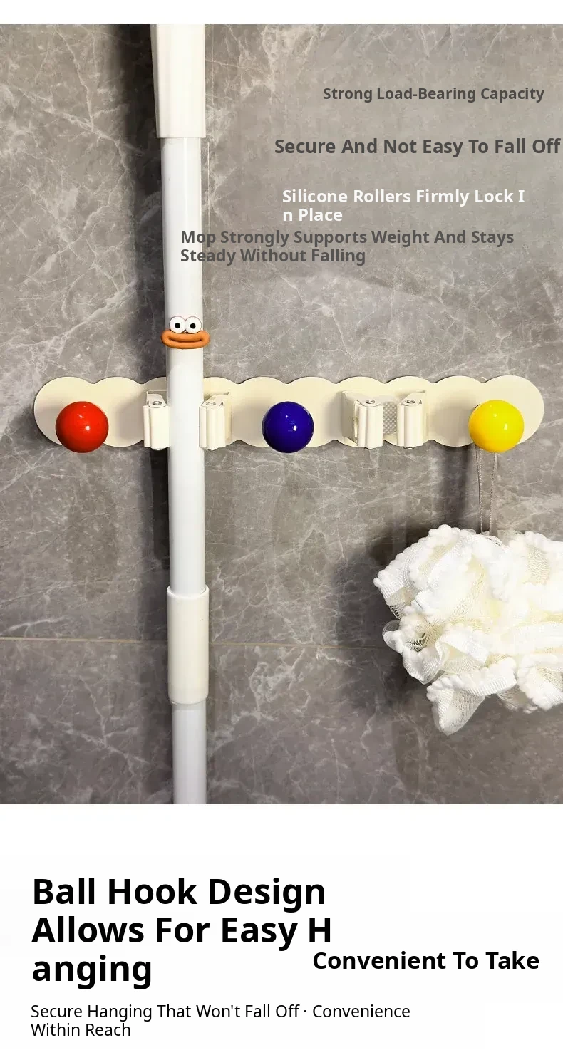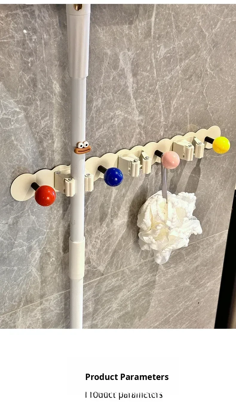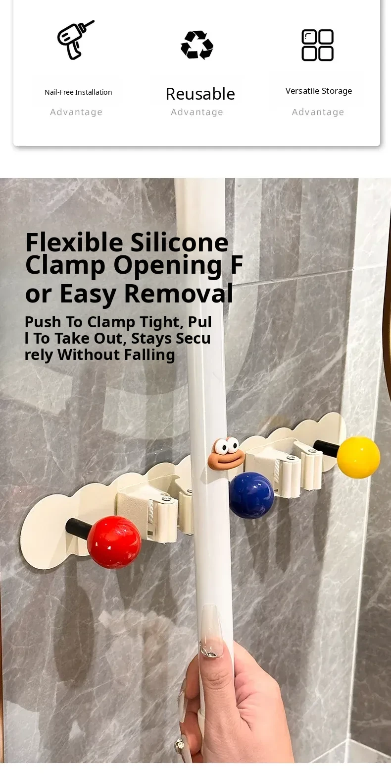 Wall-Mounted Mop Holder with No-Drill Hooks - The Ultimate Space-Saving Solution for Your Bathroom! Keep Your Mops and Brooms Organized and Easily Accessible with This Innovative Mop Clip!
