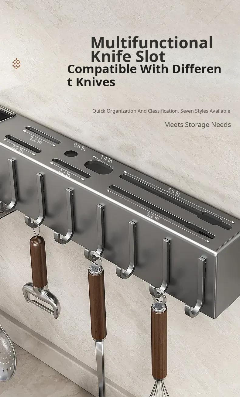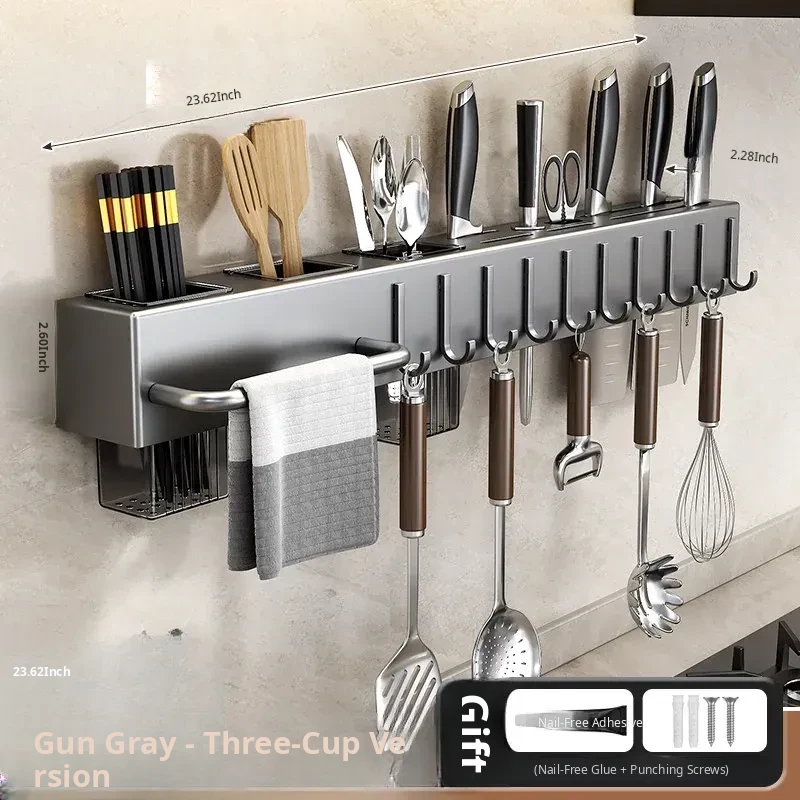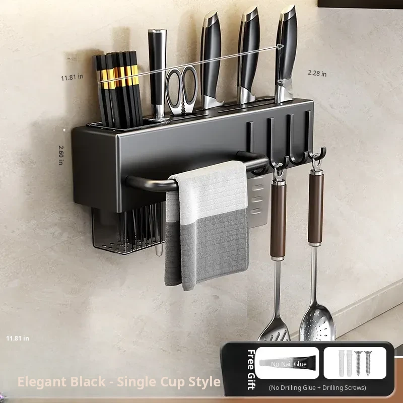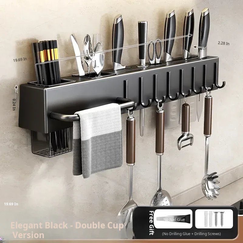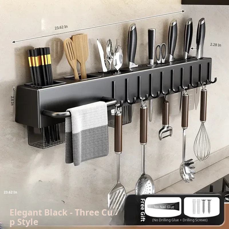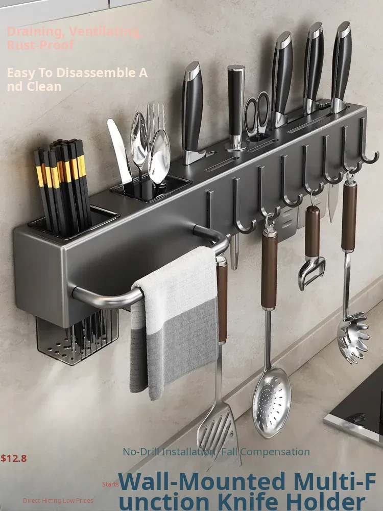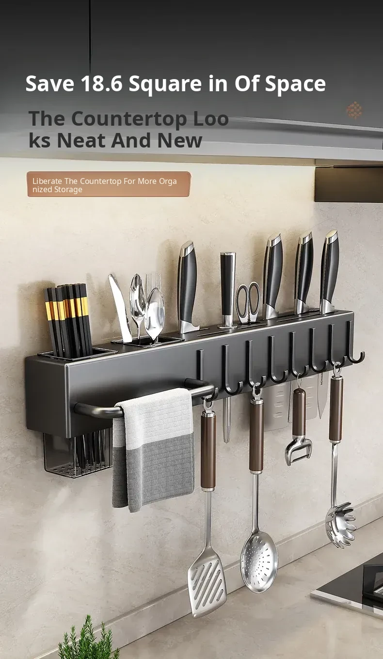 Wall-Mounted Multifunctional Kitchen Storage Rack - No Drilling Required! Space-Saving Utensil Organizer for Knives, Chopsticks, and More - Perfect for Every Home!