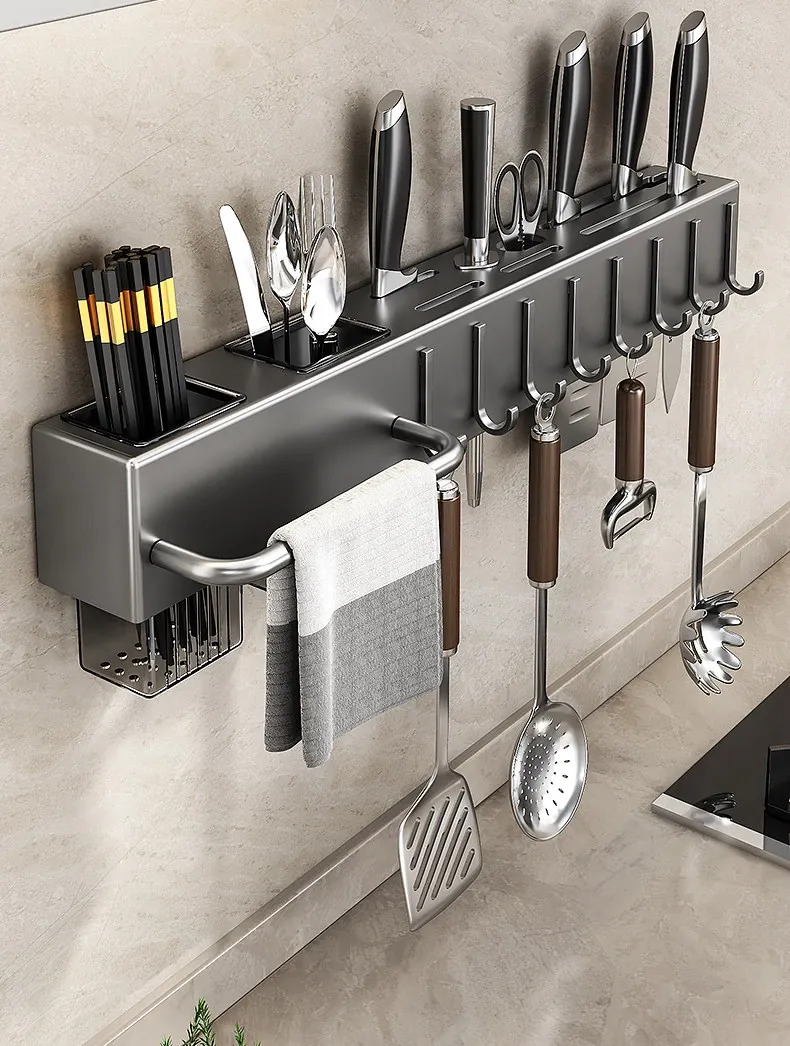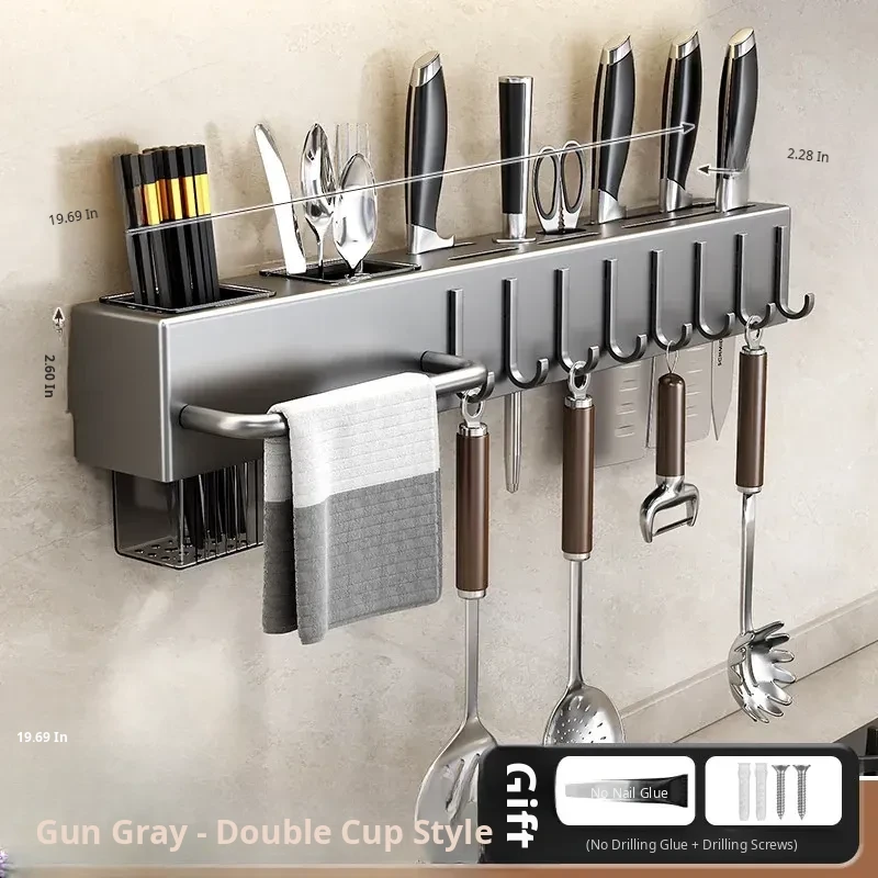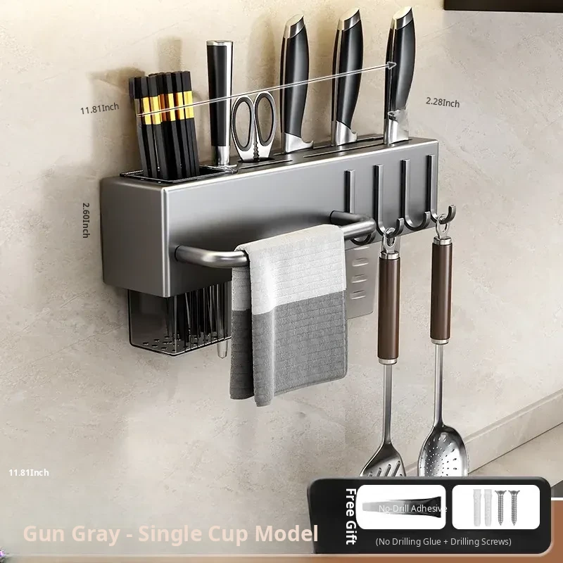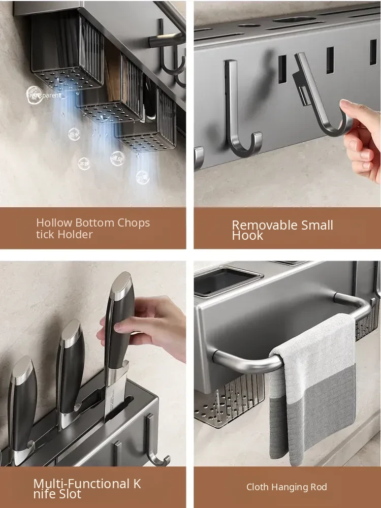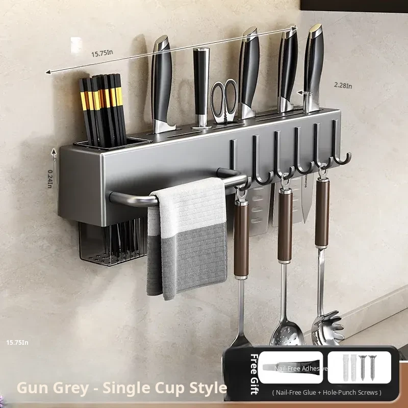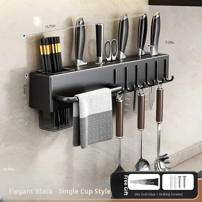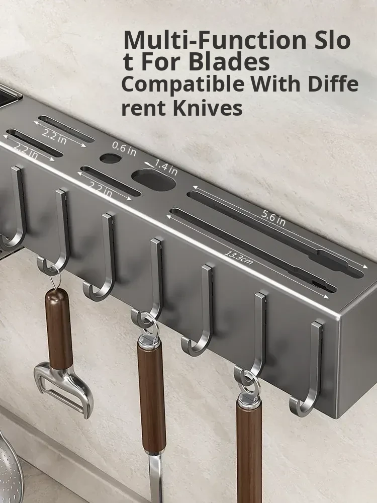 Wall-Mounted Multifunctional Kitchen Storage Rack - No Drilling Required! Space-Saving Utensil Organizer for Knives, Chopsticks, and More - Perfect for Every Home!