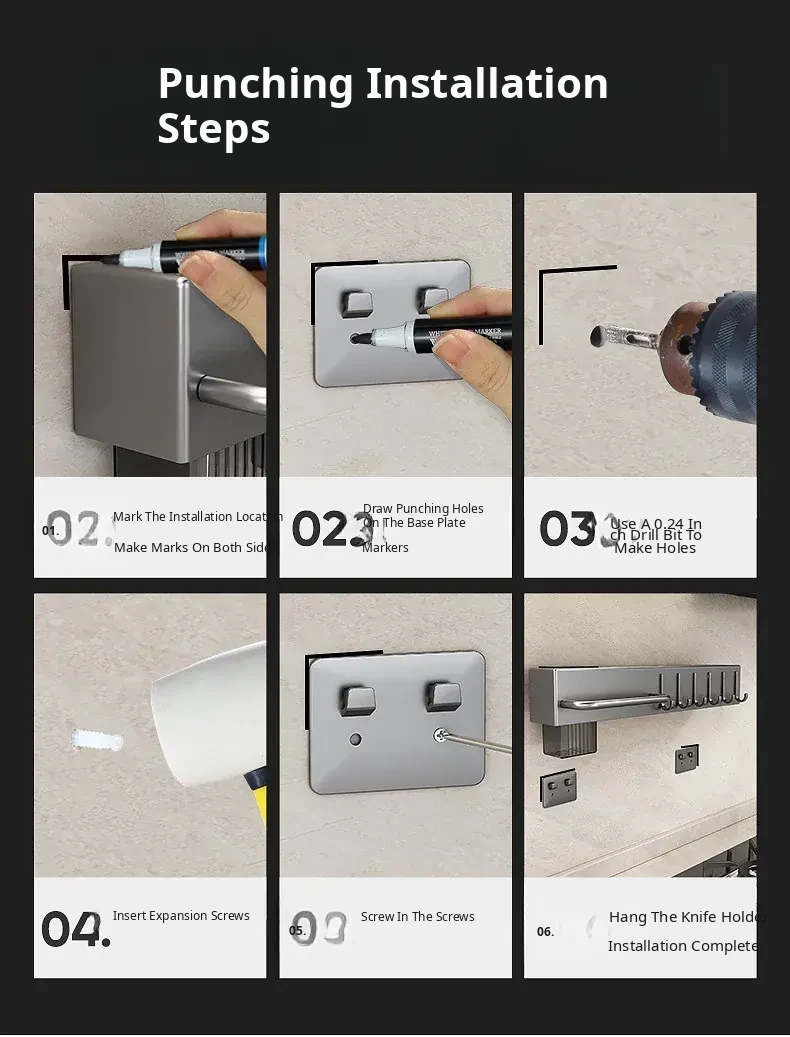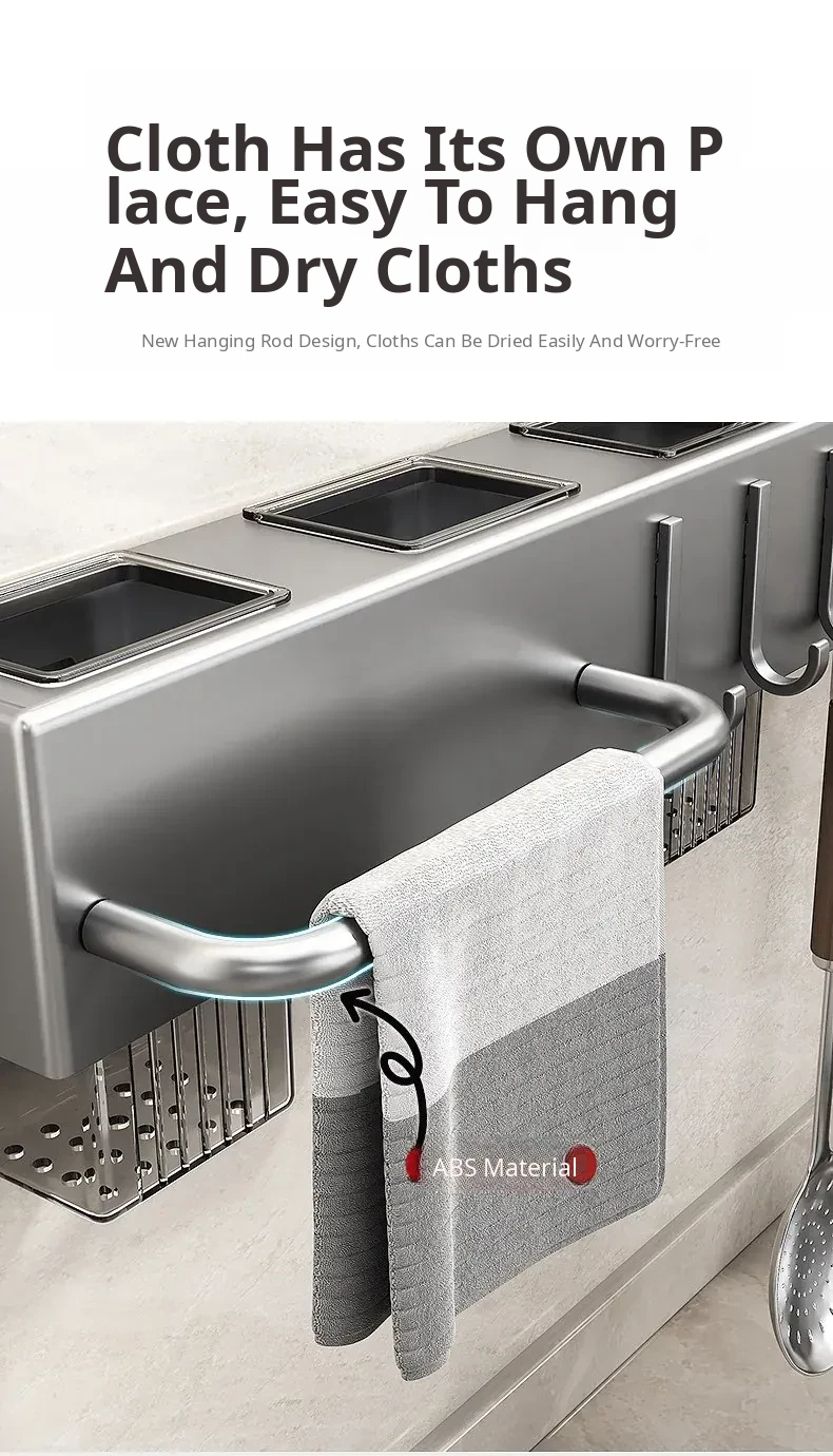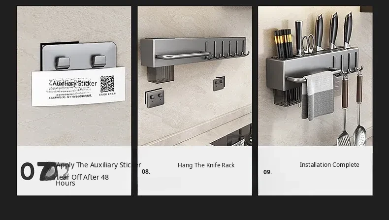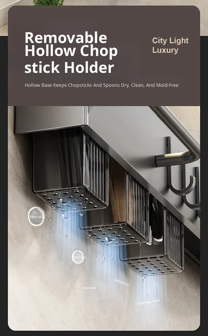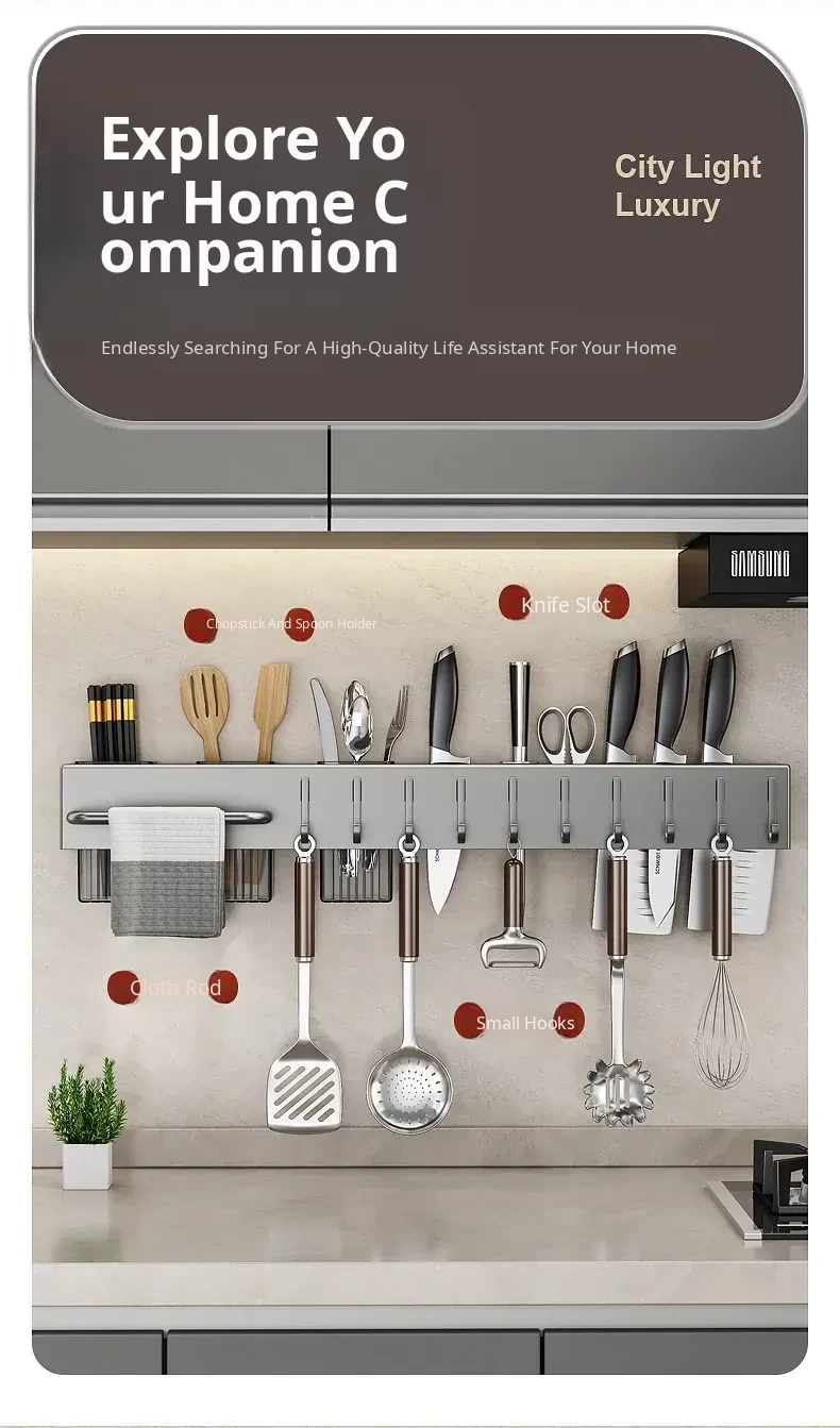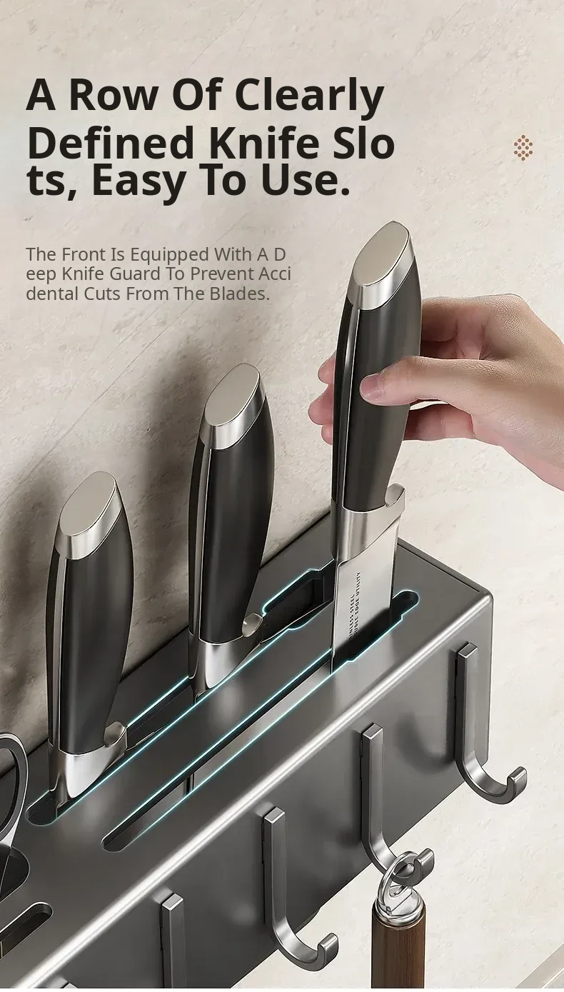 Wall-Mounted Multifunctional Kitchen Storage Rack - No Drilling Required! Space-Saving Utensil Organizer for Knives, Chopsticks, and More - Perfect for Every Home!
