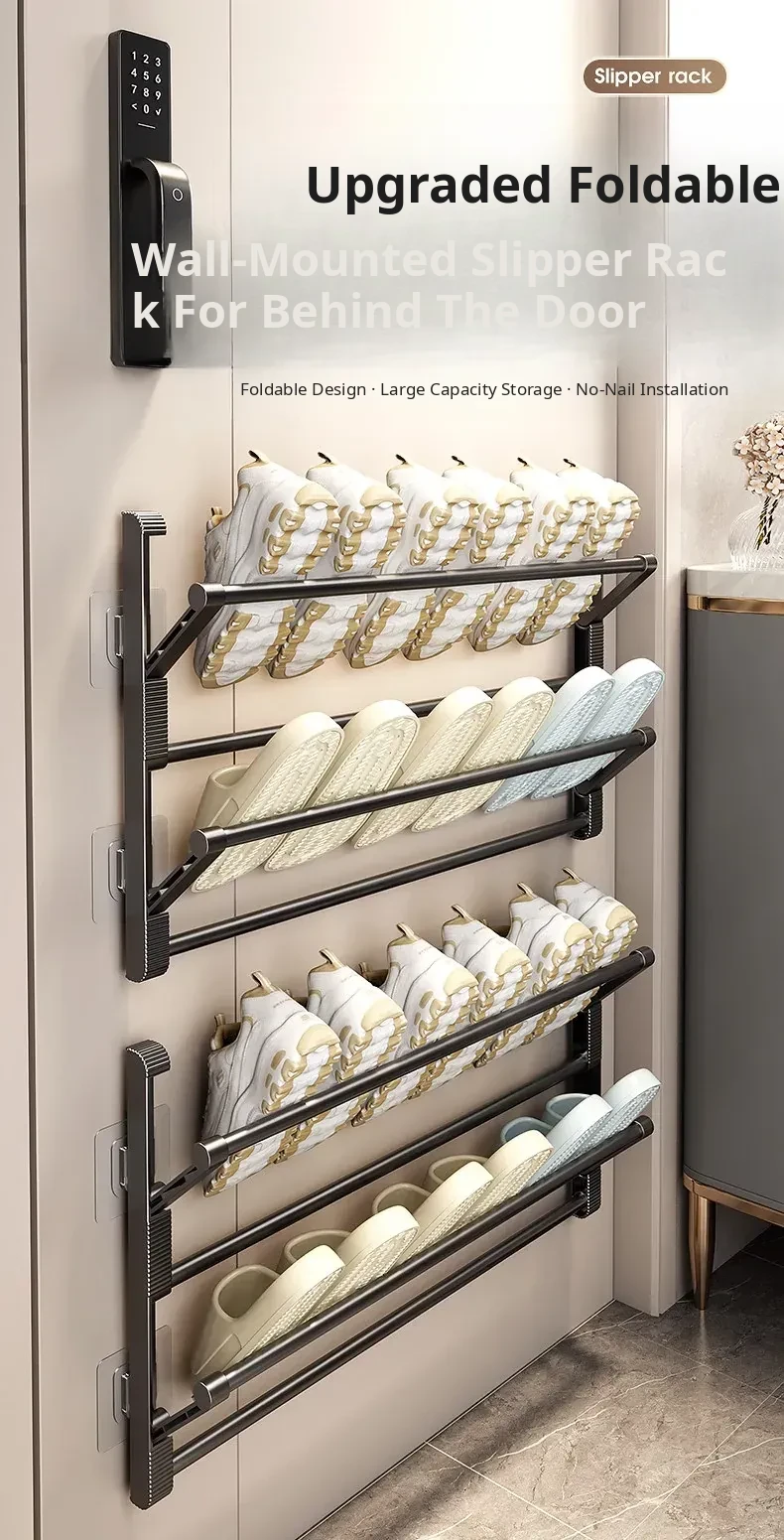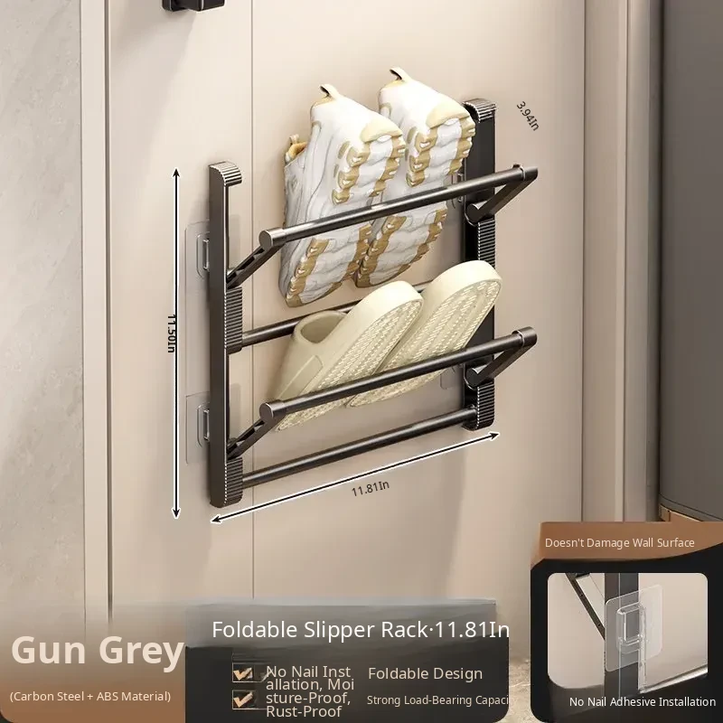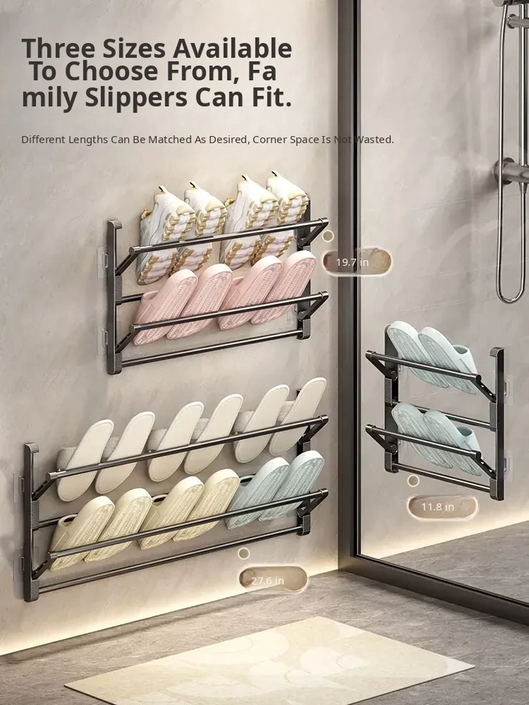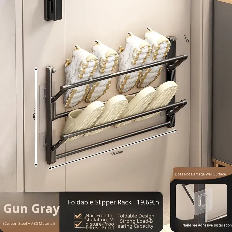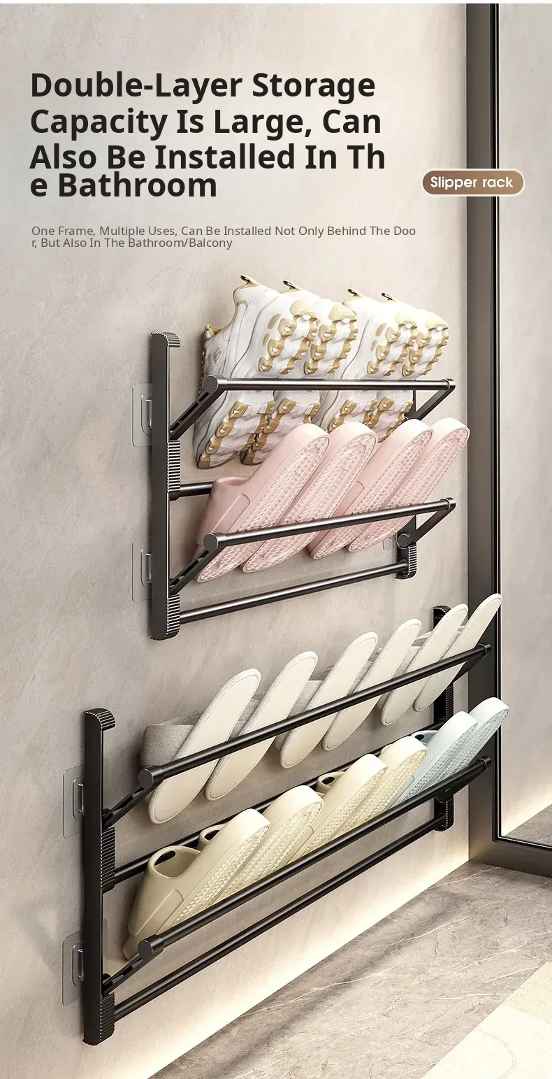 Wall-Mounted No-Drill Bathroom Slipper Rack - Foldable Double-Layer Drainage Shoe Organizer for Space-Saving Storage Behind Doors, Perfect for Your Bathroom!
