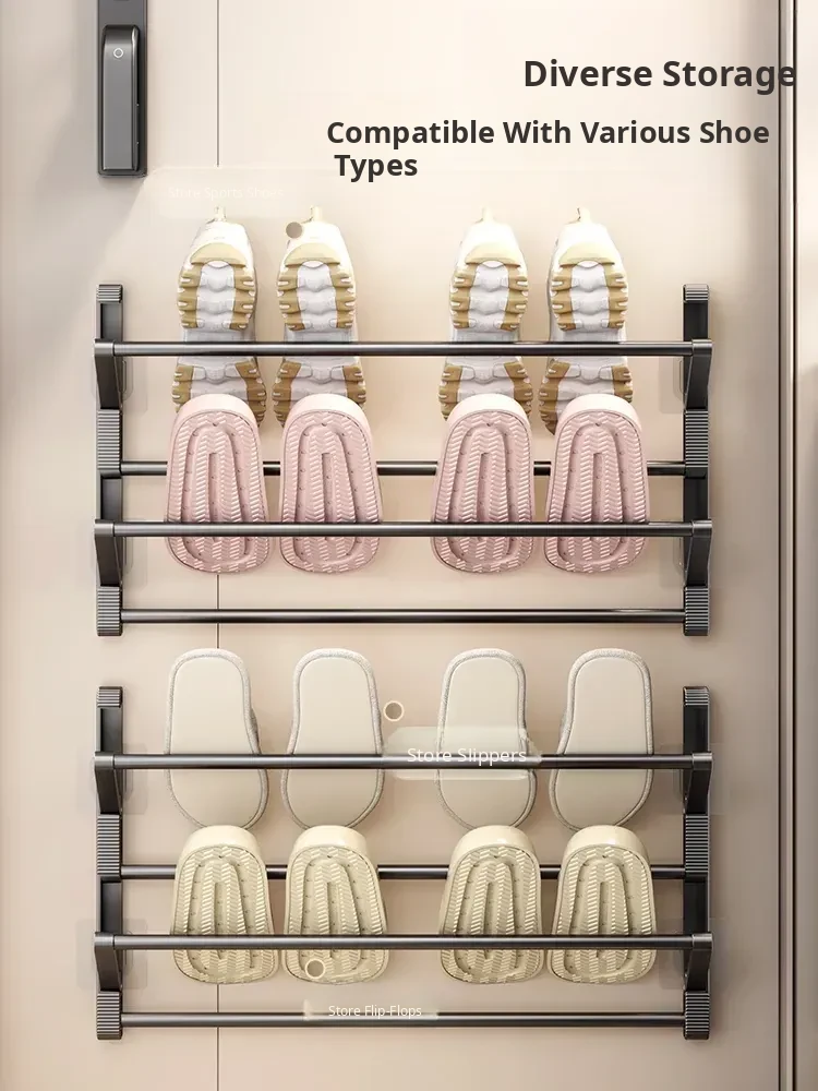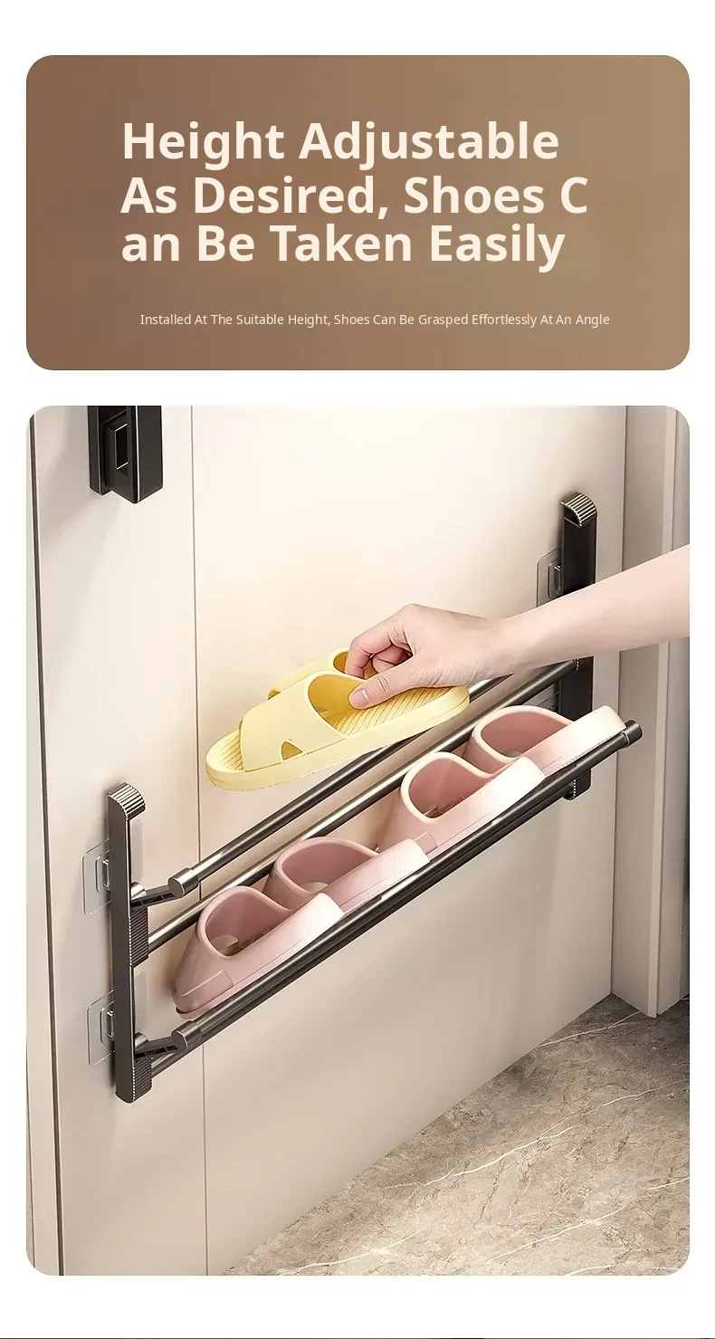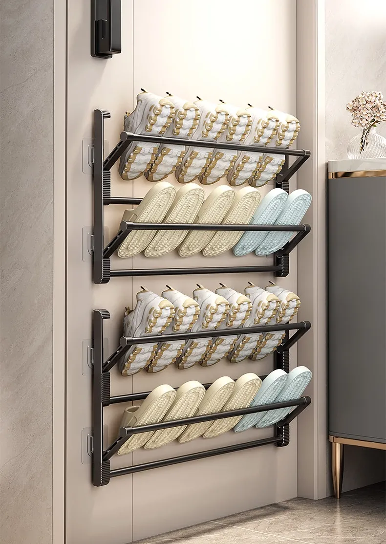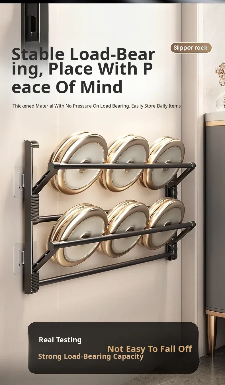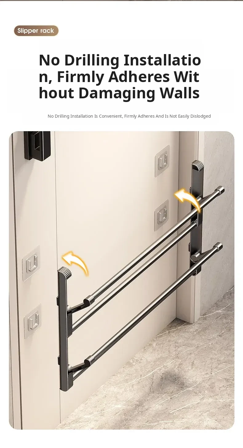 Wall-Mounted No-Drill Bathroom Slipper Rack - Foldable Double-Layer Drainage Shoe Organizer for Space-Saving Storage Behind Doors, Perfect for Your Bathroom!