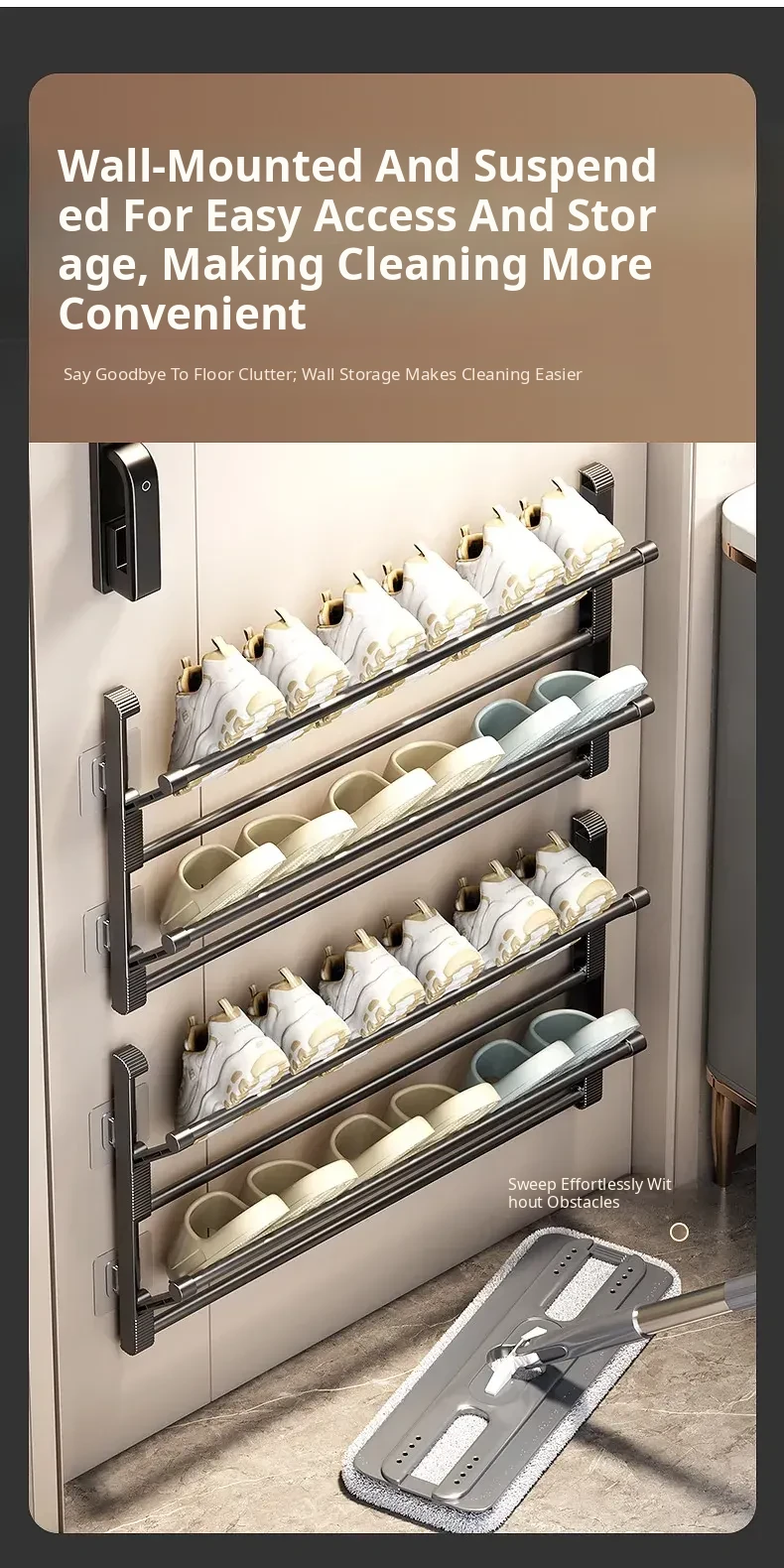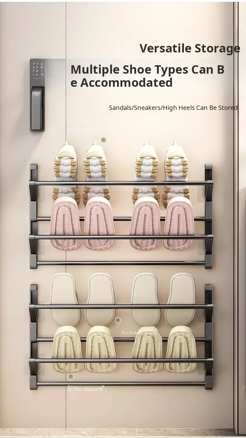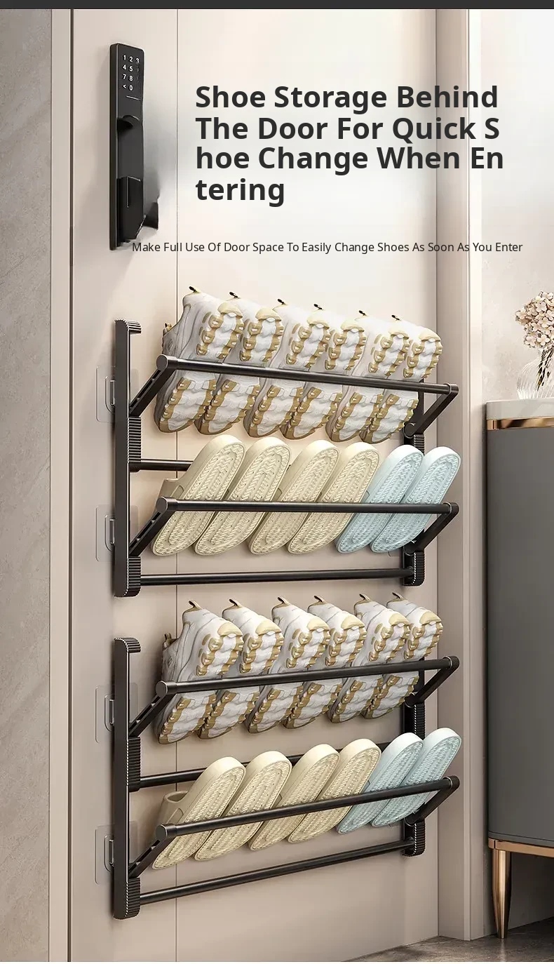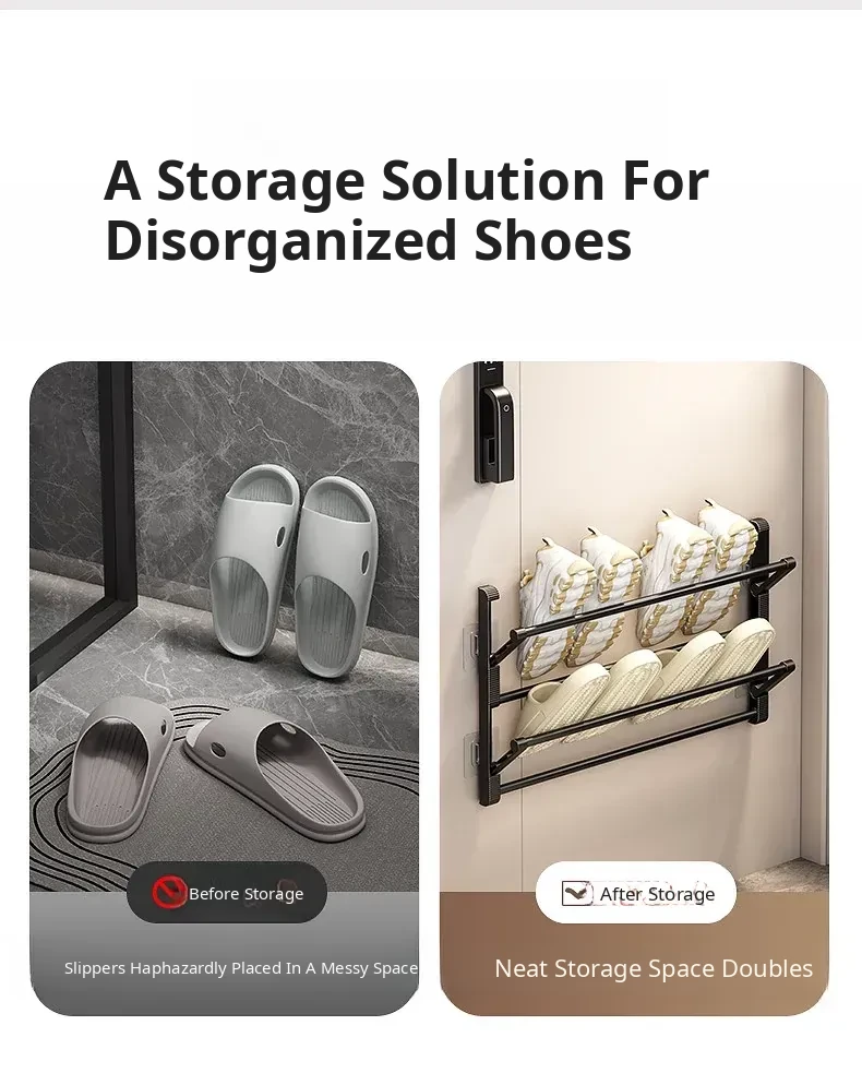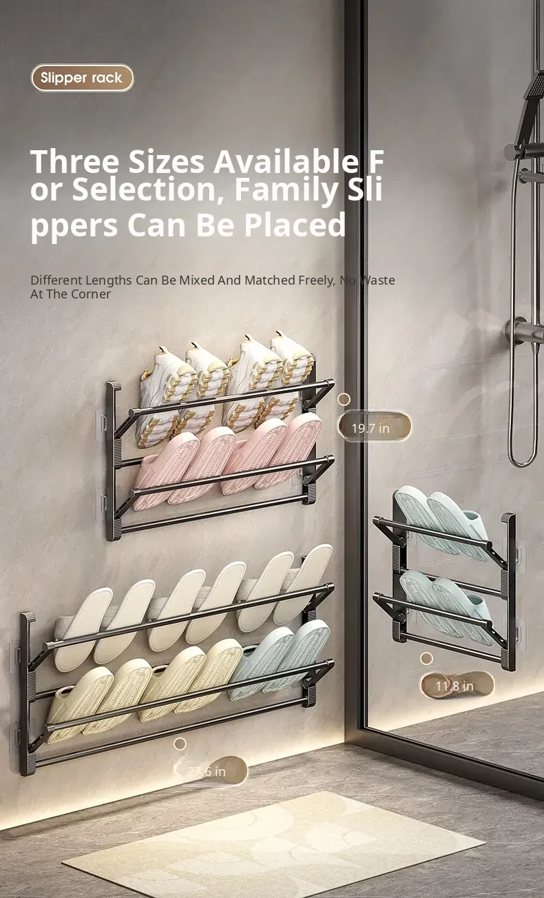 Wall-Mounted No-Drill Bathroom Slipper Rack - Foldable Double-Layer Drainage Shoe Organizer for Space-Saving Storage Behind Doors, Perfect for Your Bathroom!