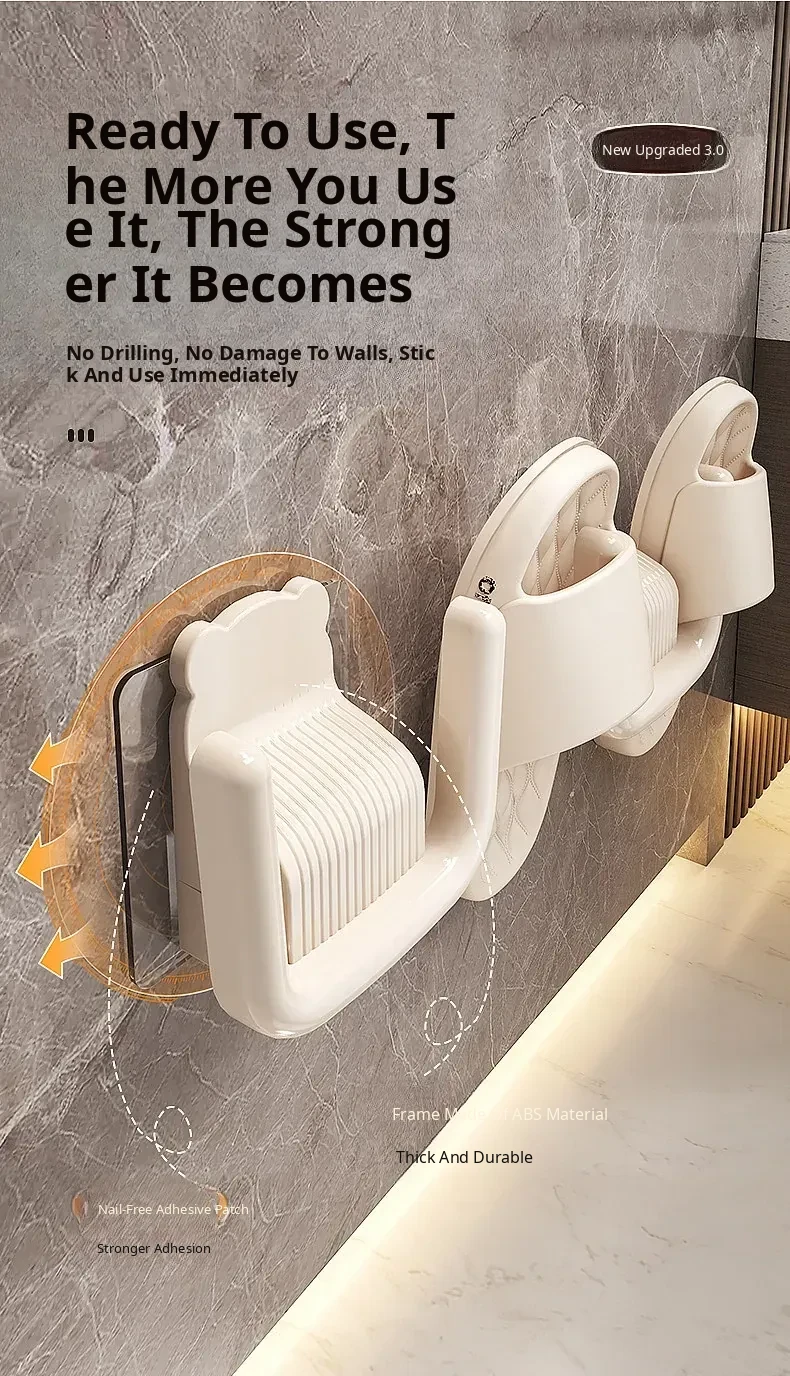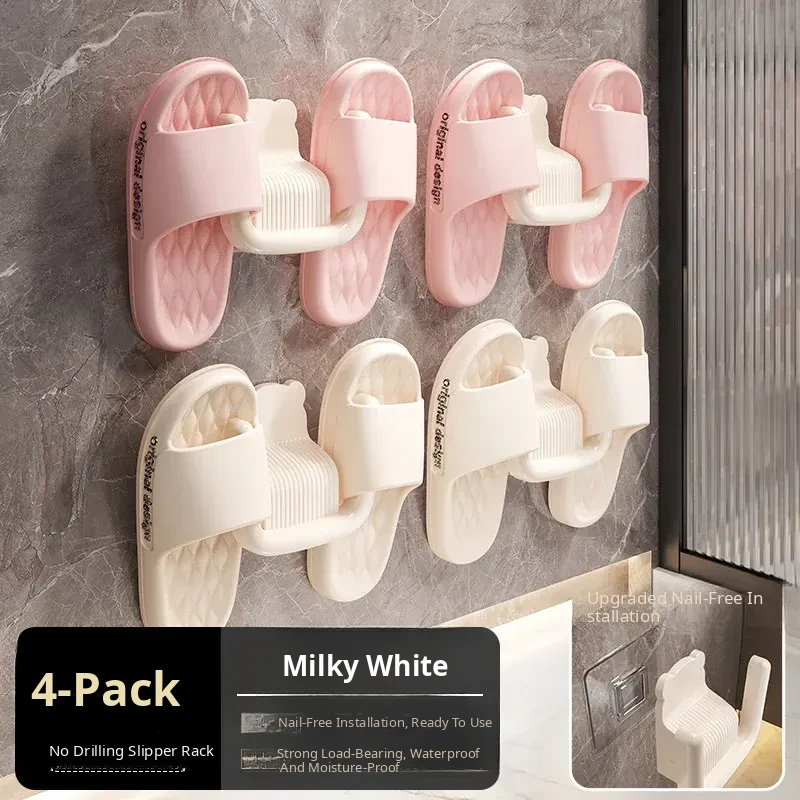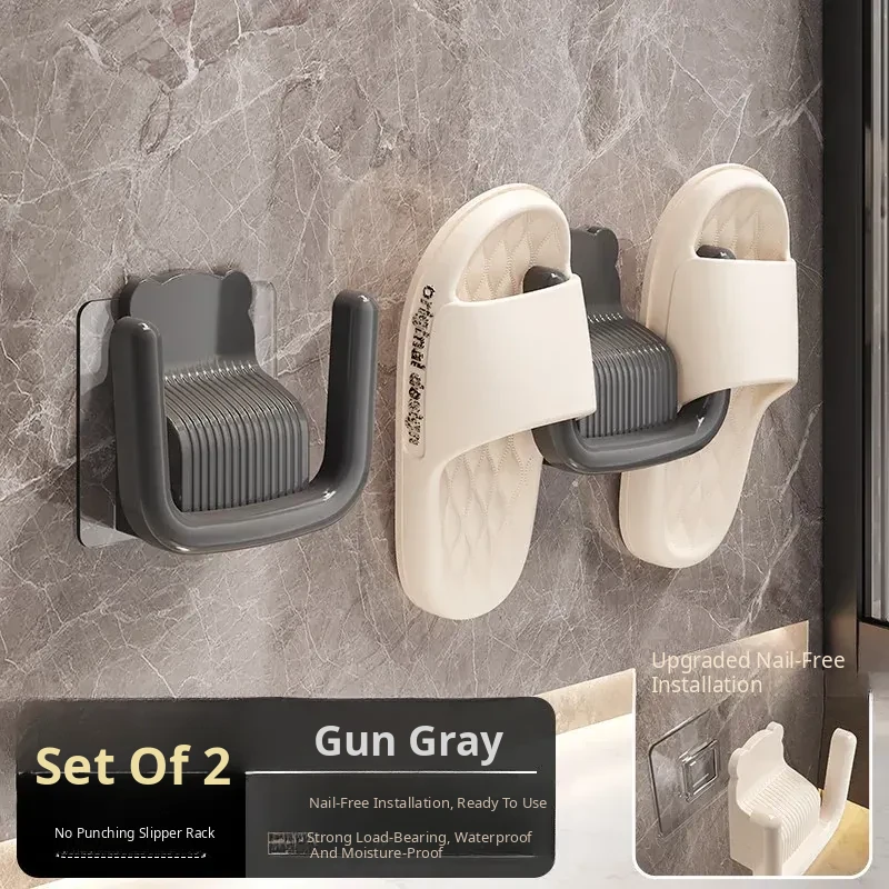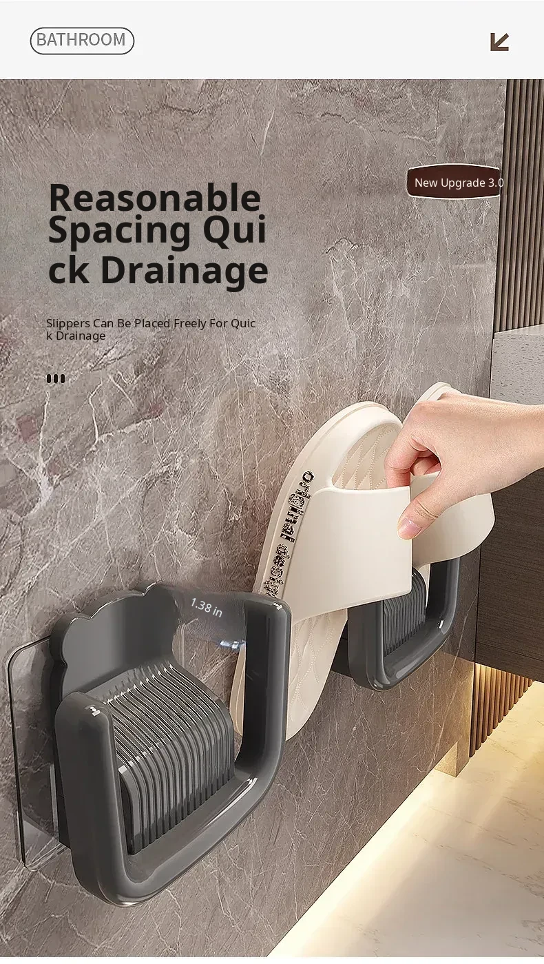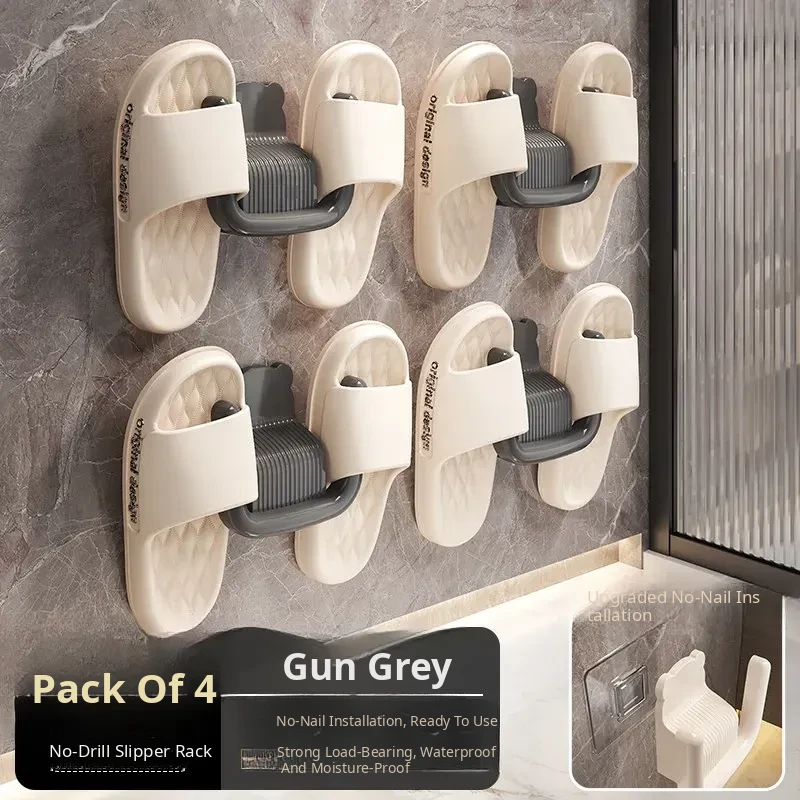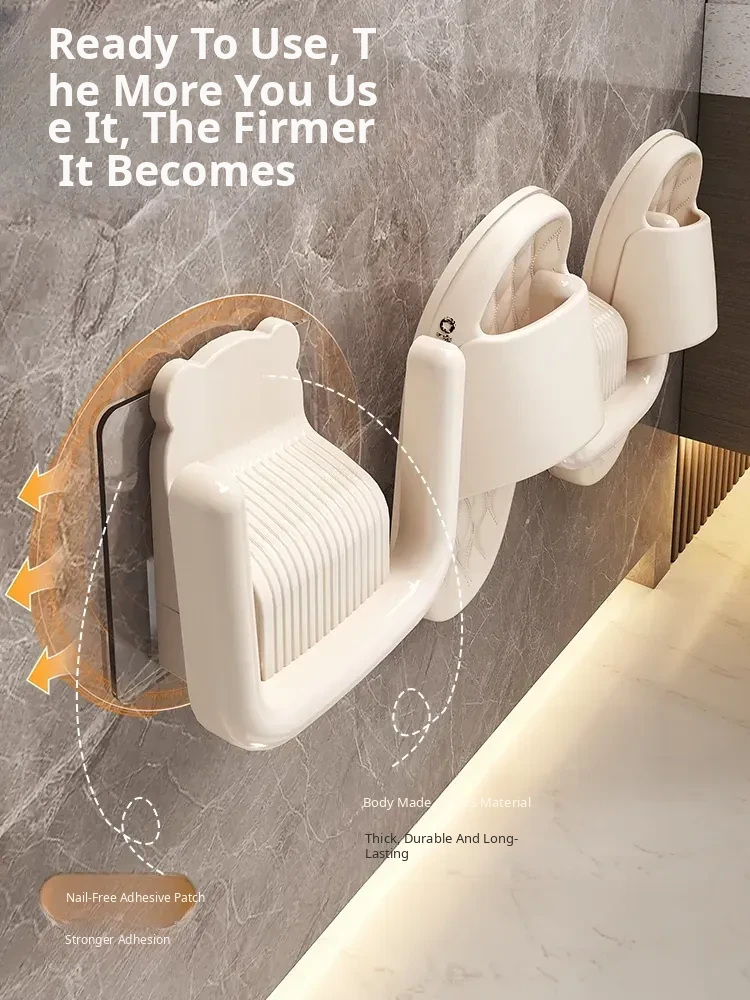 Wall-Mounted Non-Punching Slipper Hook - Draining Shoe Rack for Bathroom, Dormitory, and Restroom Storage Solution - Space-Saving Organizer for Easy Access and Drying