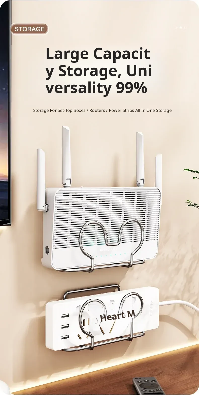 Wall-Mounted Router Shelf – No Drill WiFi Storage Rack for Set-Top Boxes and Power Strips – The Ultimate Space-Saving Solution for Your Home!