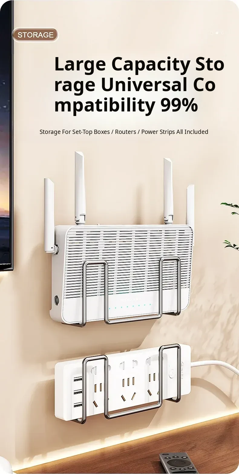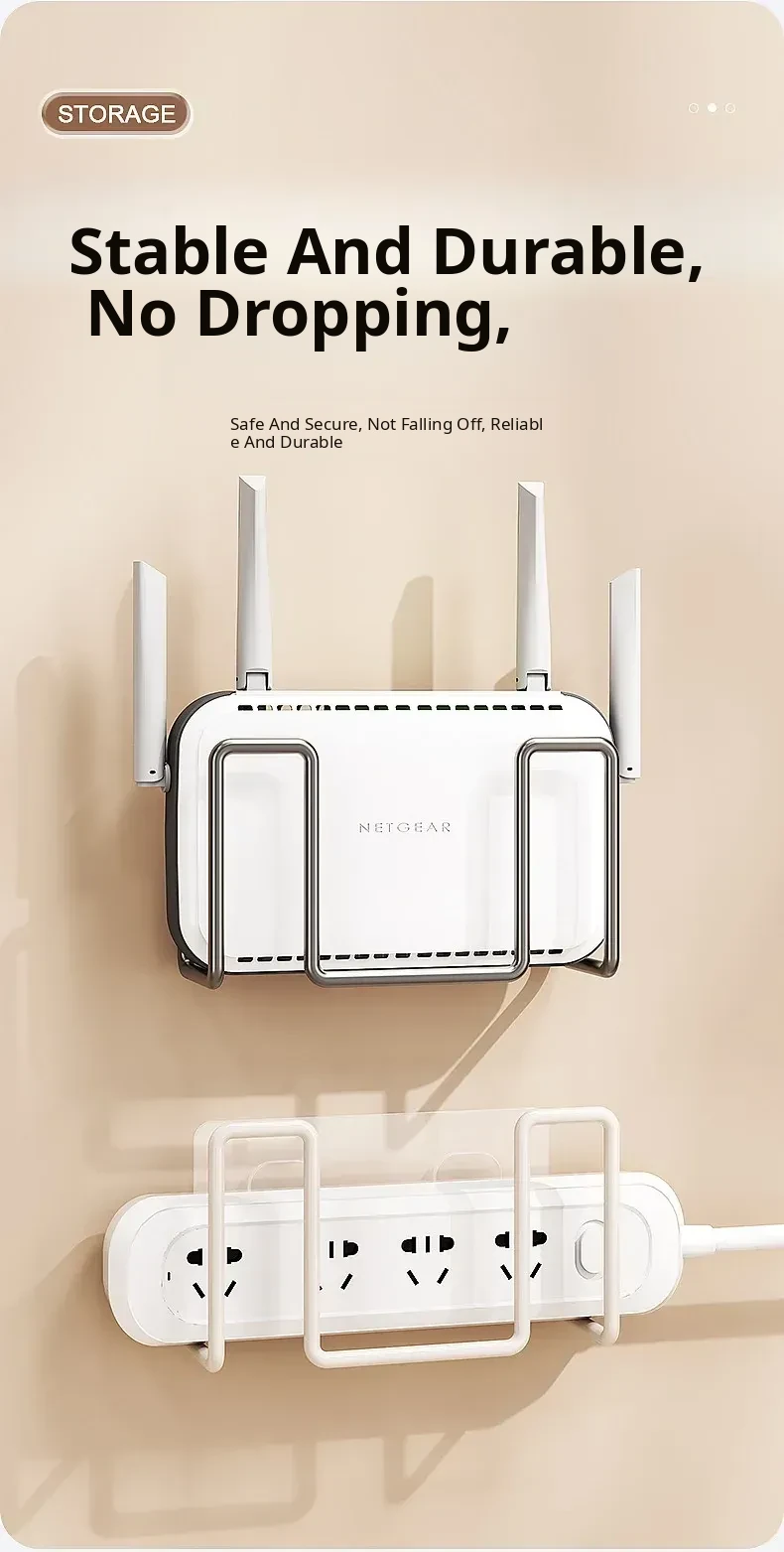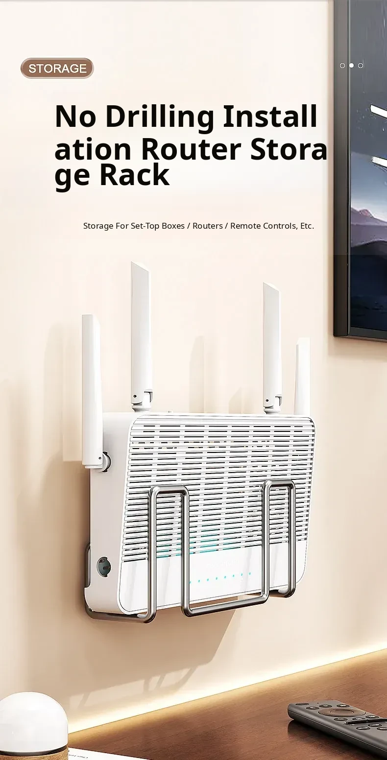 Wall-Mounted Router Shelf – No Drill WiFi Storage Rack with Power Strip Holder for Set-Top Boxes – Perfect Organizer for Your Home!