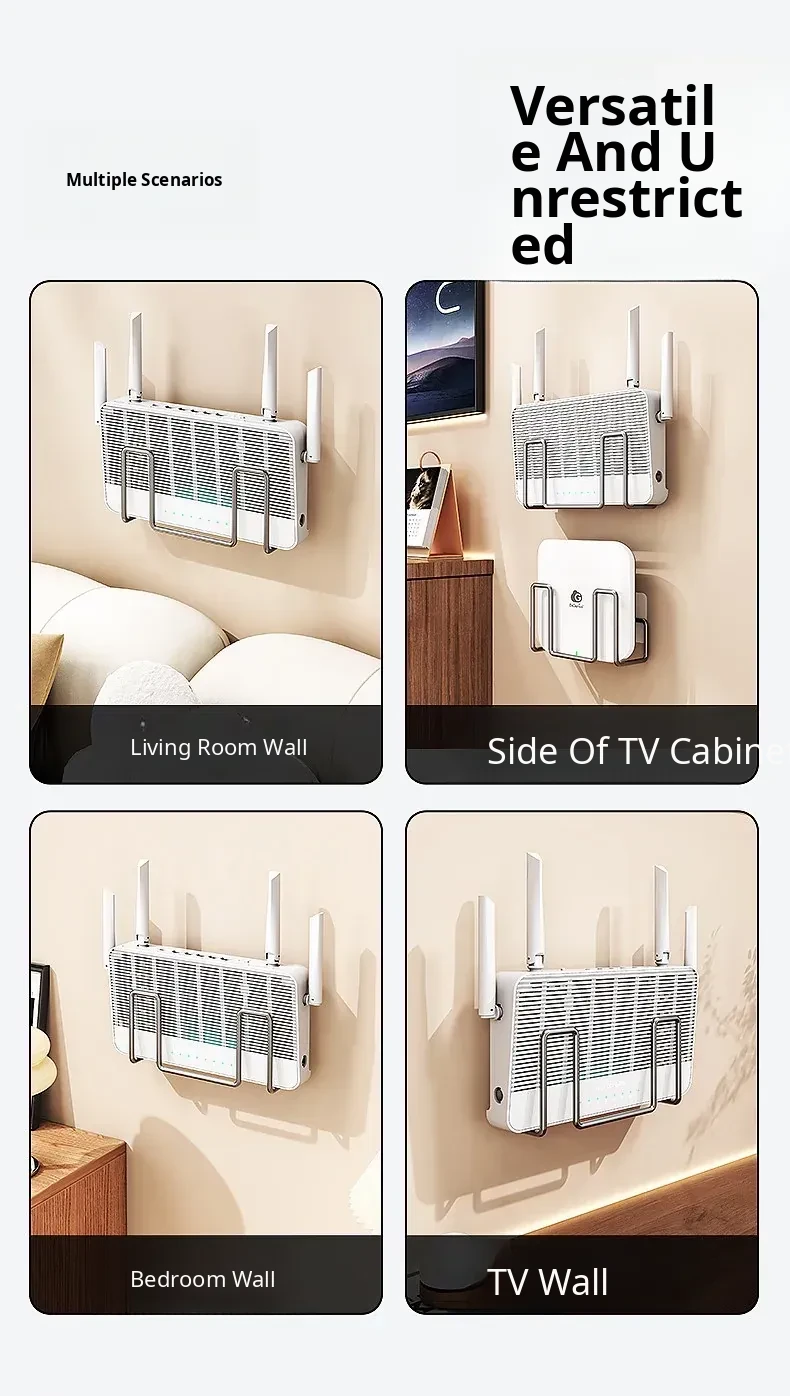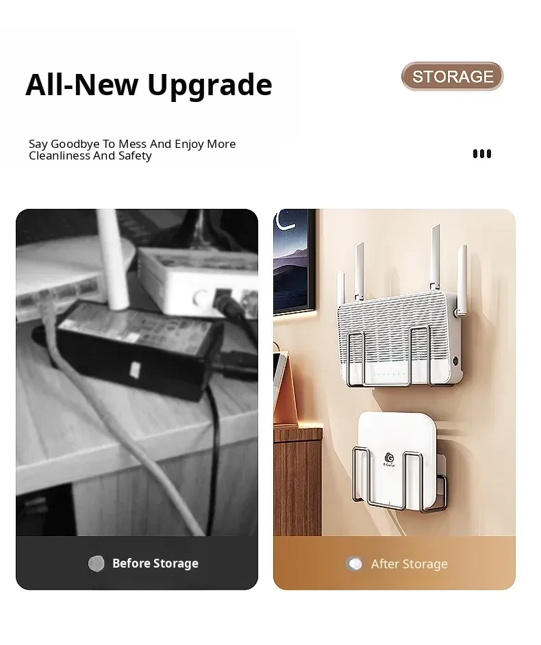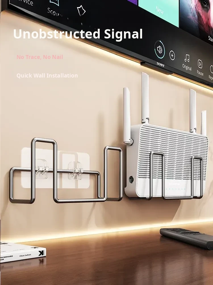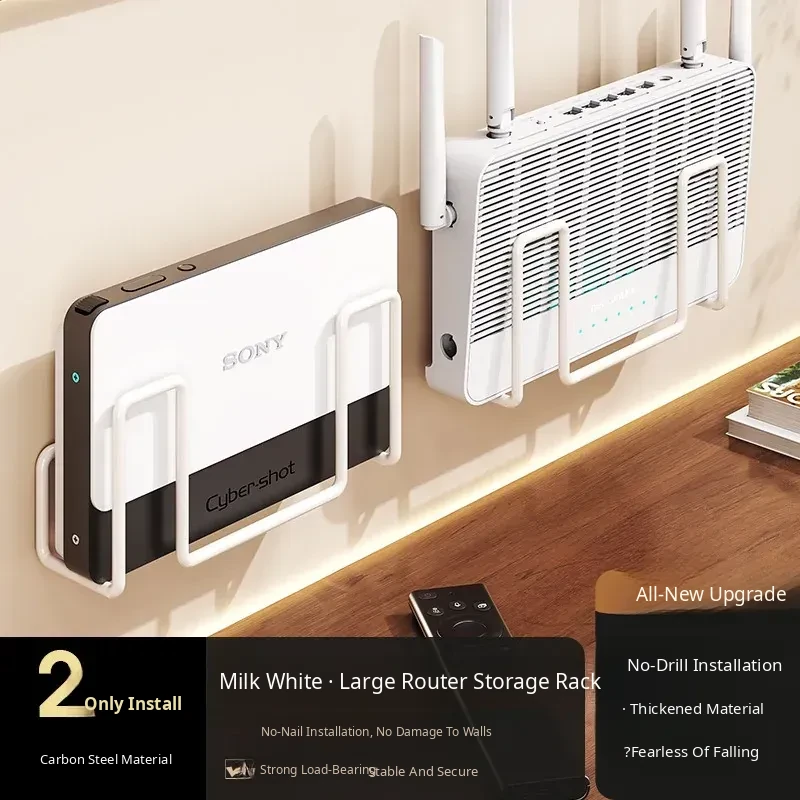 Wall-Mounted Router Shelf – No Drill WiFi Storage Rack with Power Strip Holder for Set-Top Boxes – Perfect Organizer for Your Home!
