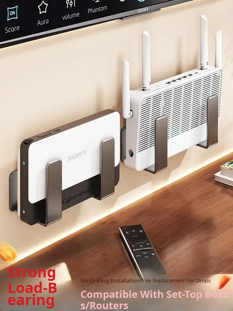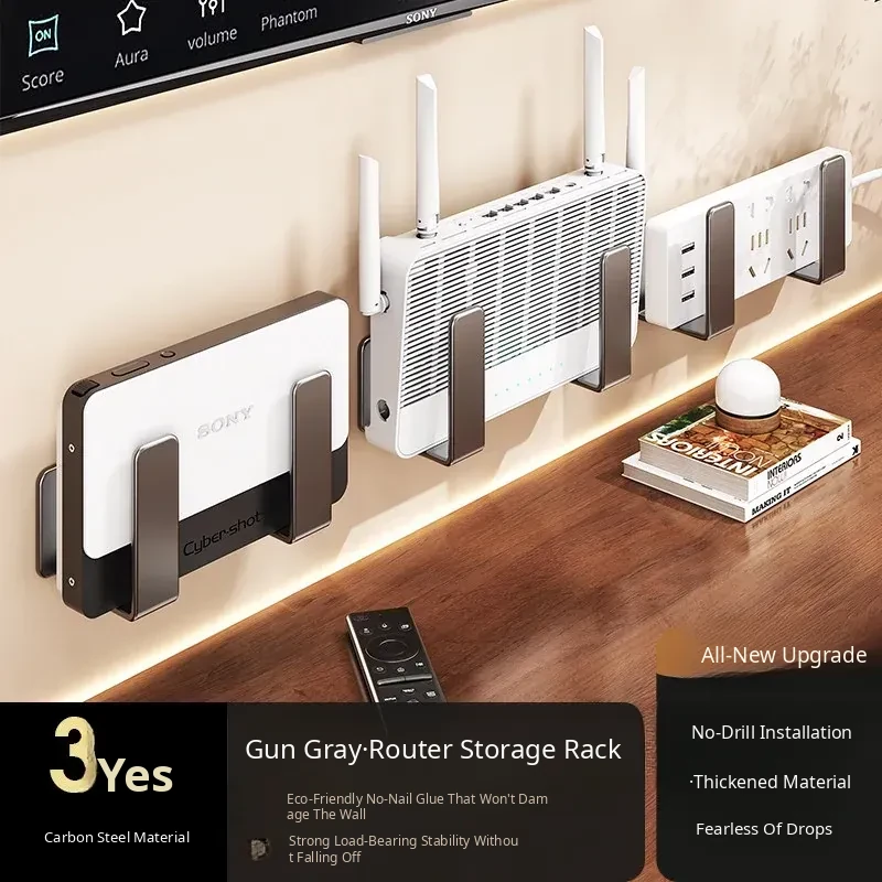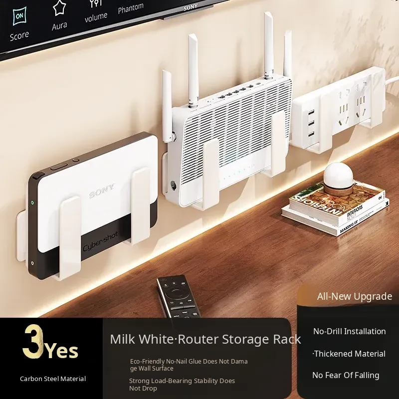 Wall-Mounted Router Shelf - No Drill Required, Perfect for Fiber Optic Modems and WiFi Set-Top Boxes, Organize Your Space with This Convenient Power Strip Storage Rack