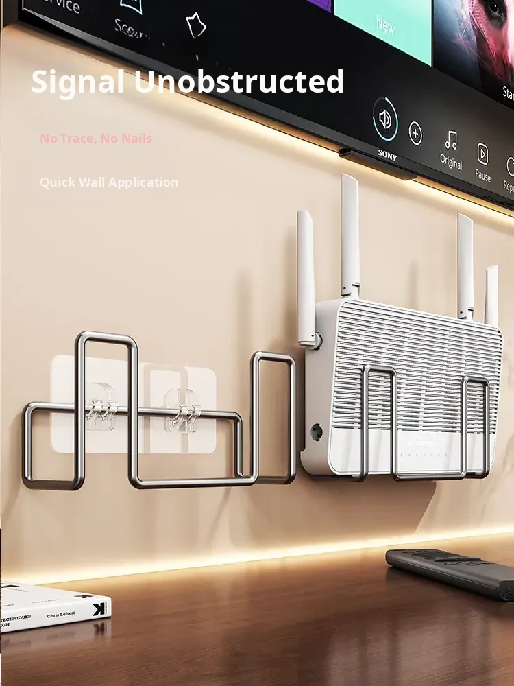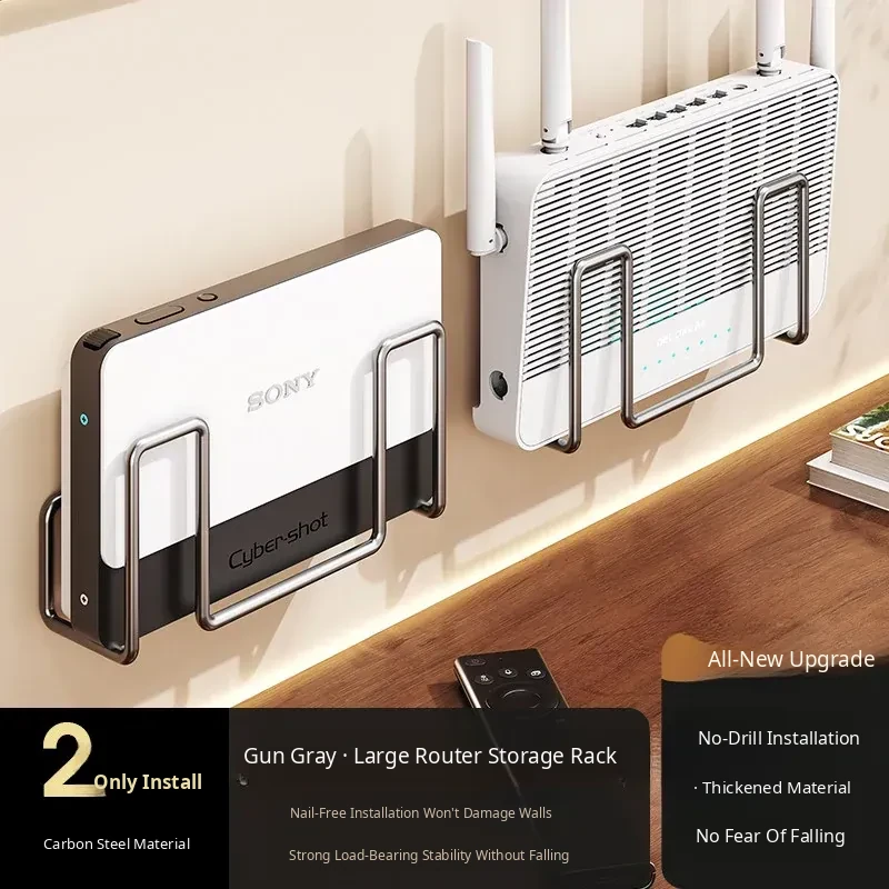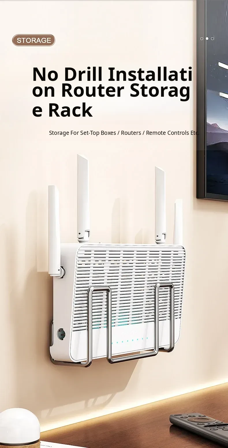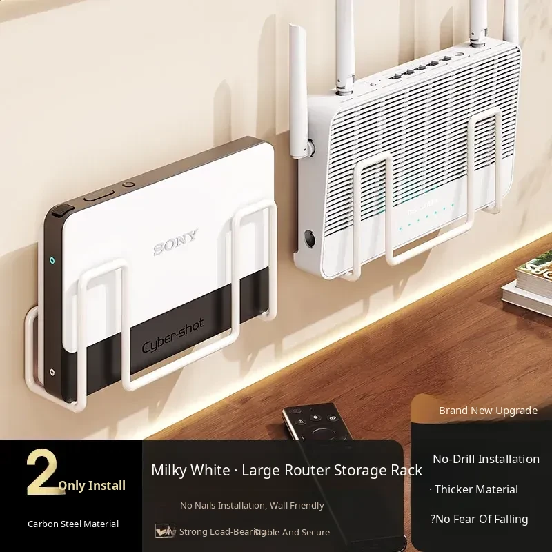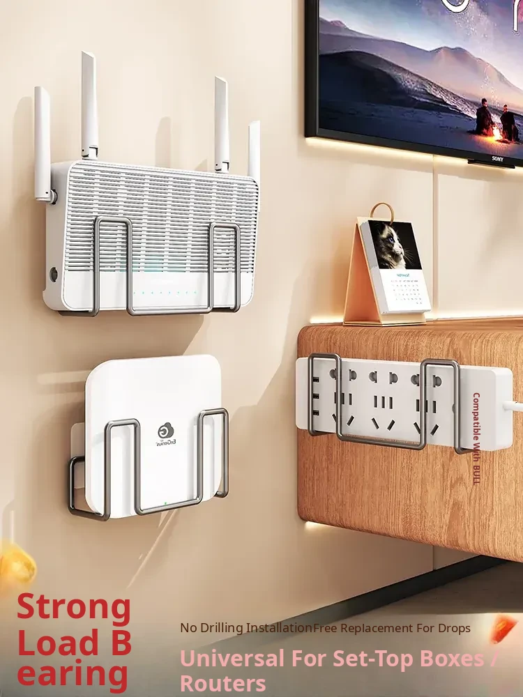 Wall-Mounted Router Shelf - No Drilling Required, WiFi Storage Rack with Socket Holder, Perfect for Organizing Set-Top Boxes and Accessories