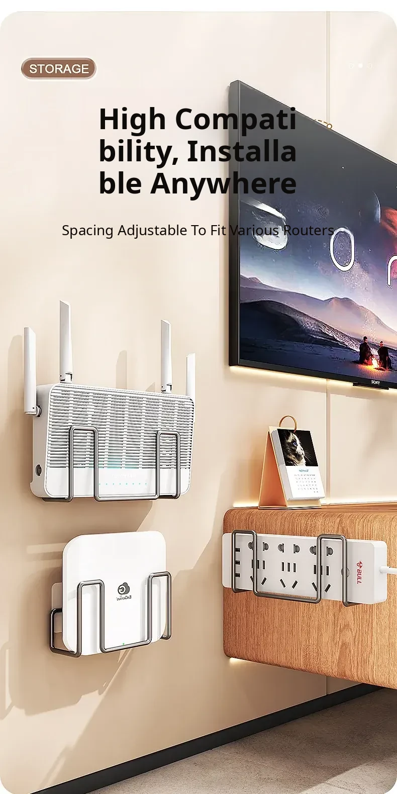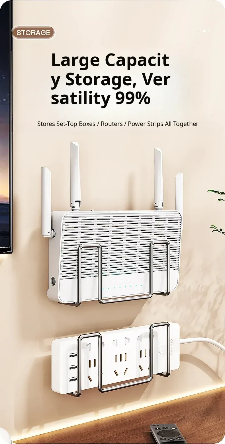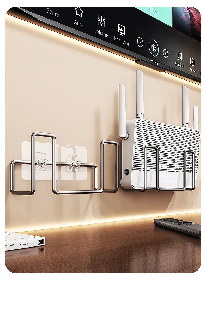 Wall-Mounted Router Shelf - No Drilling Required, WiFi Storage Rack with Socket Holder, Perfect for Organizing Set-Top Boxes and Accessories