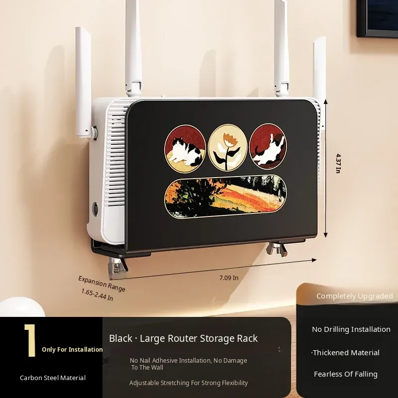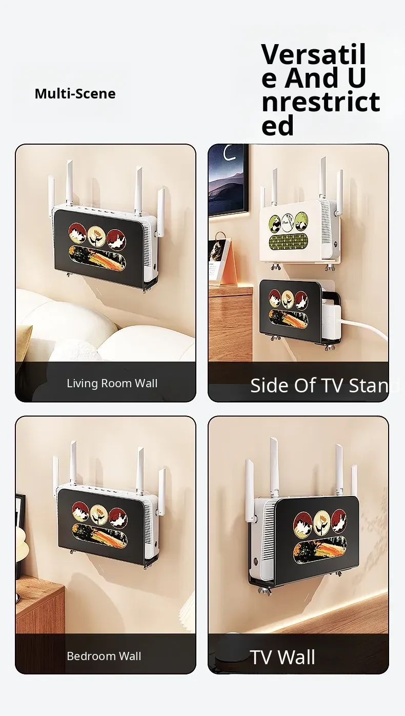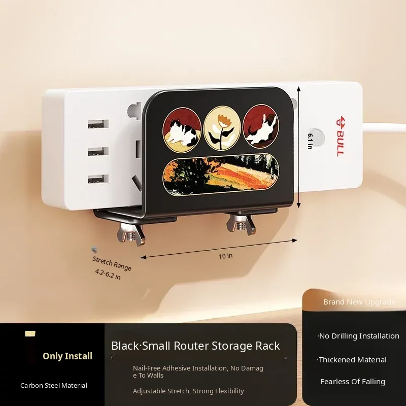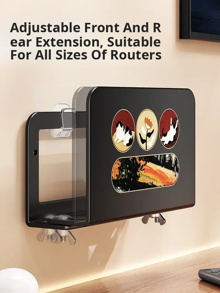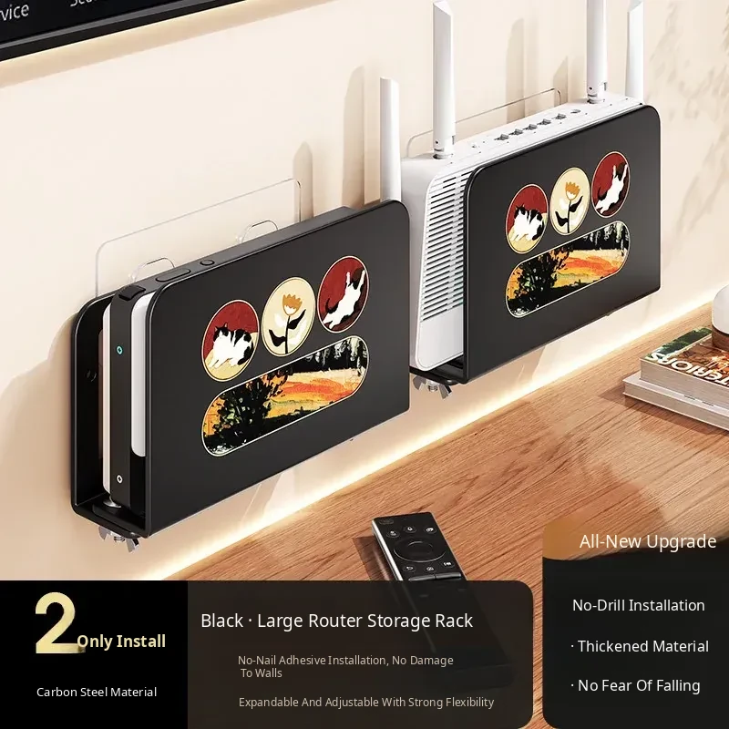 Wall-Mounted Router Shelf: No-Drill WiFi Storage Rack with Power Strip Holder for Cable Box - Space-Saving Organizer for Clean and Tidy Living Spaces