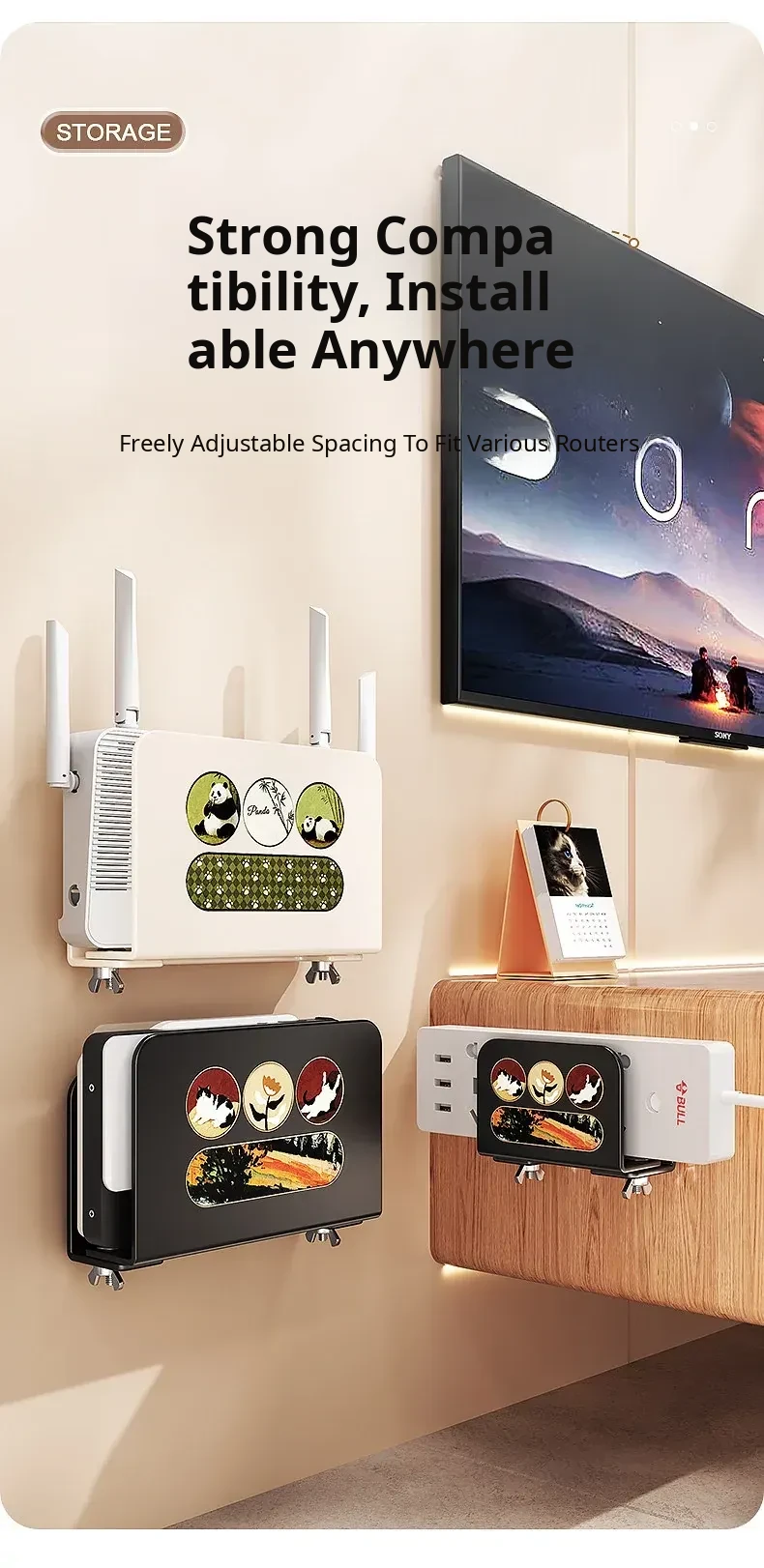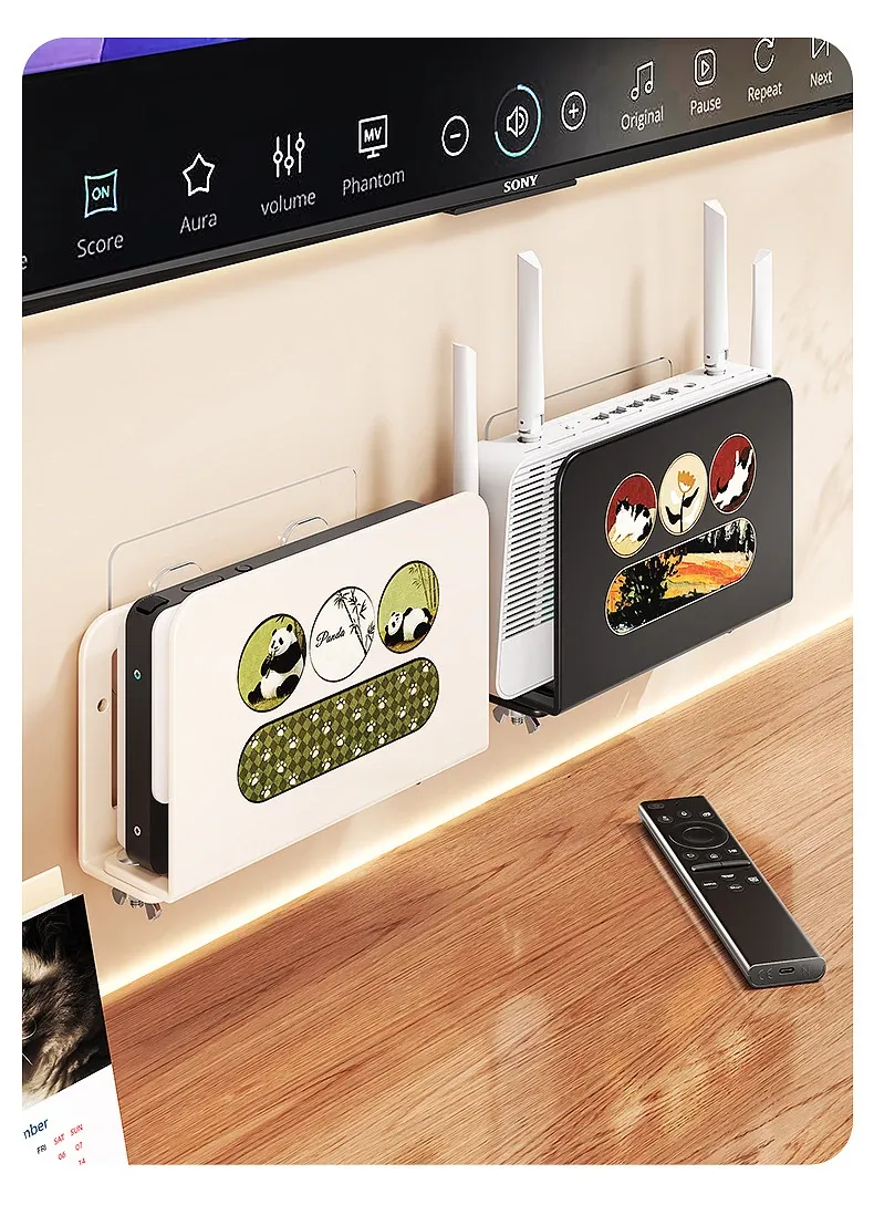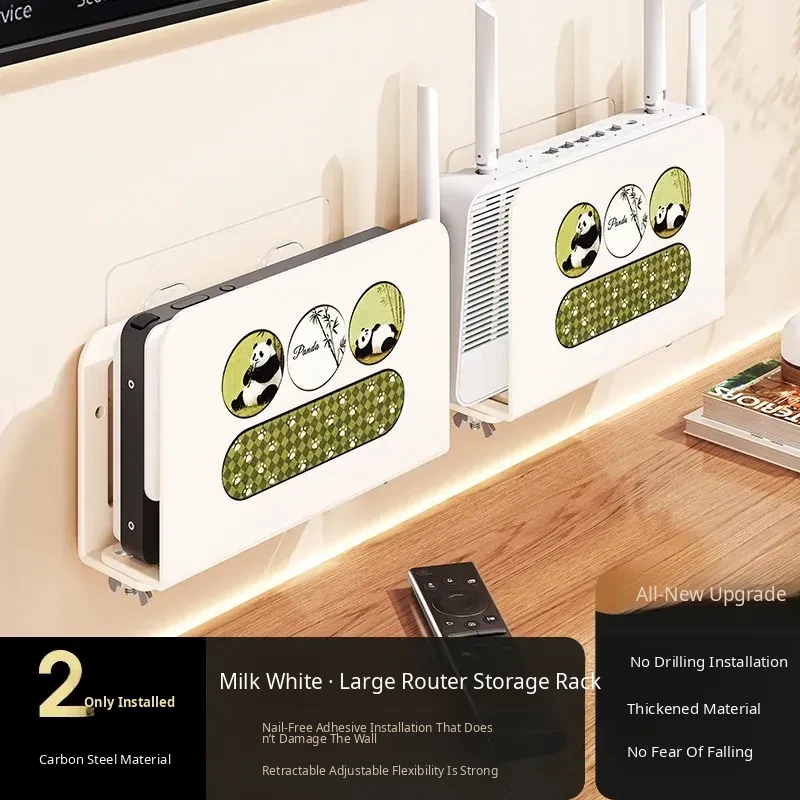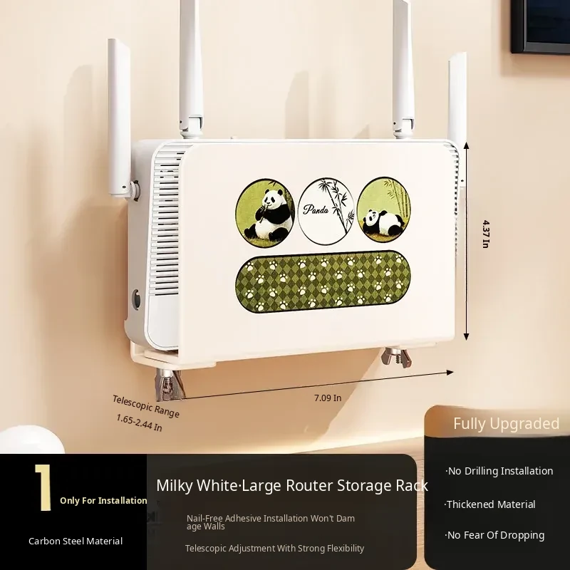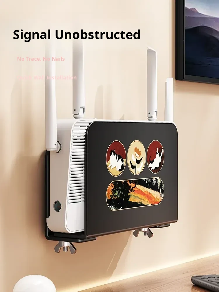 Wall-Mounted Router Shelf: No-Drill WiFi Storage Rack with Power Strip Holder for Cable Box - Space-Saving Organizer for Clean and Tidy Living Spaces