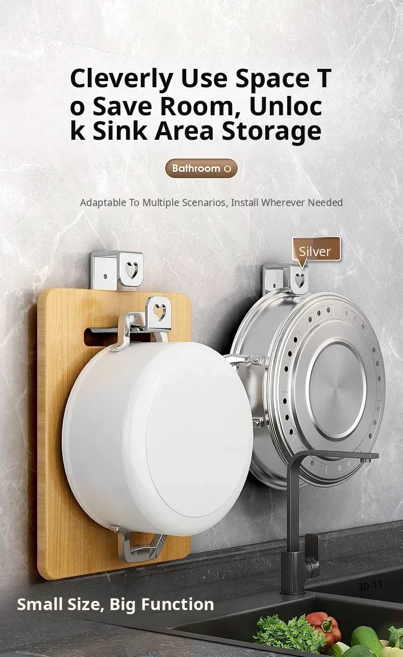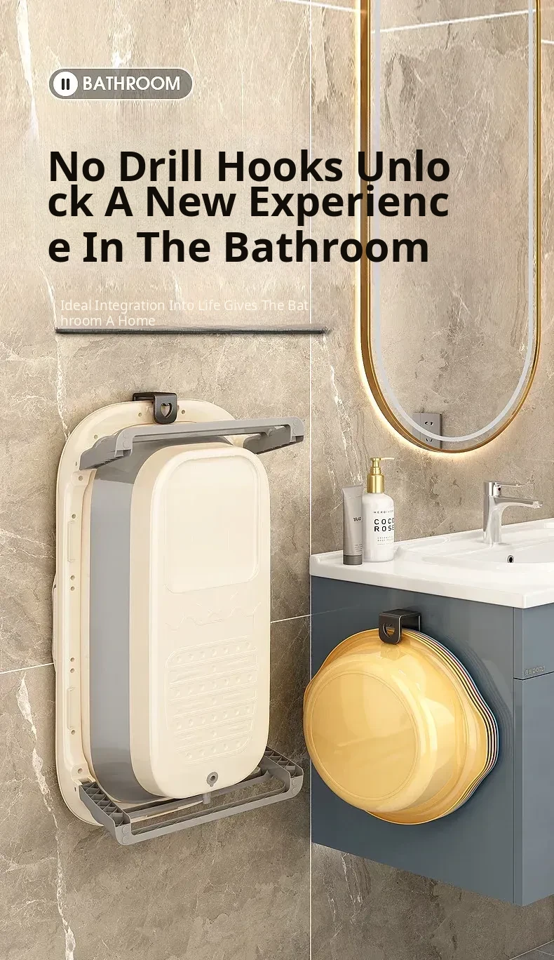 Wall-Mounted Sink Hook - No Drill Bathroom Storage Solution for Basins, Bathtubs, and Washrooms - Space-Saving Hanging Basin Organizer