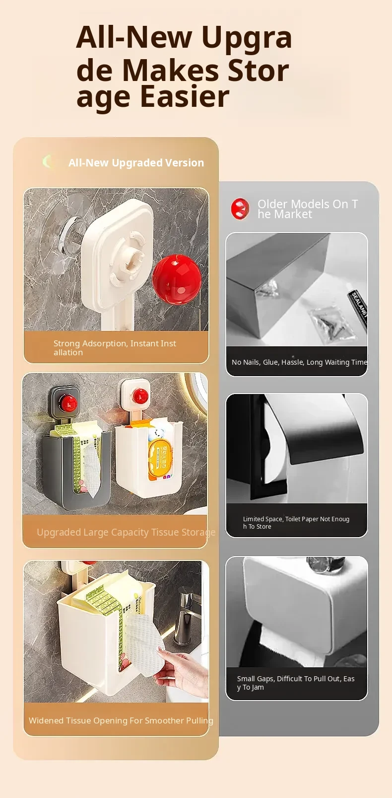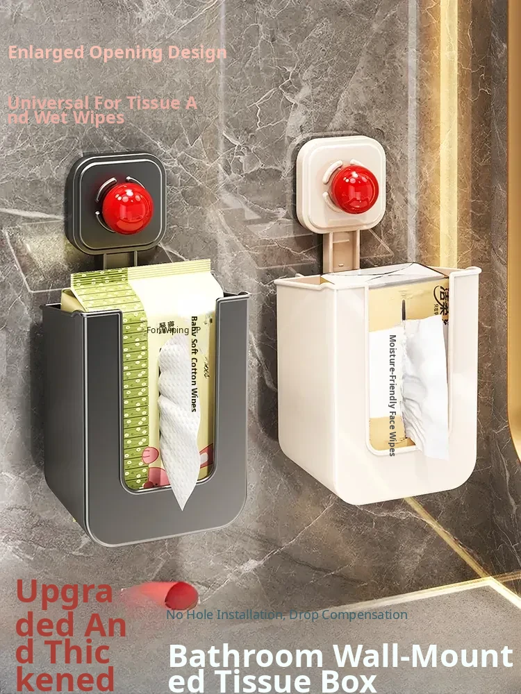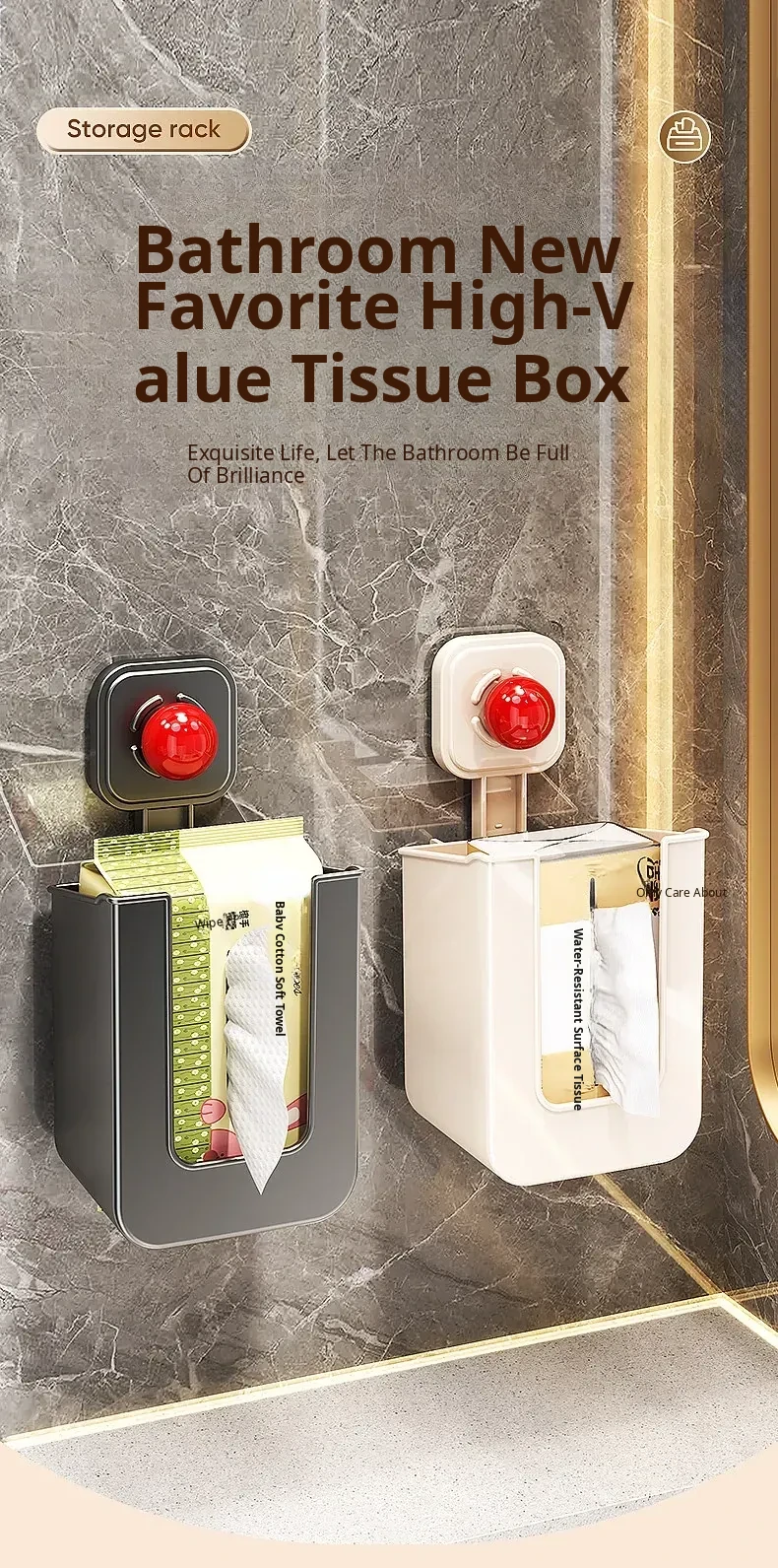Wall-Mounted Suction Cup Tissue Box - No Drill Bathroom Toilet Paper Holder, Perfect for Storing Face Towels and Household Paper Towels in Your Bathroom!