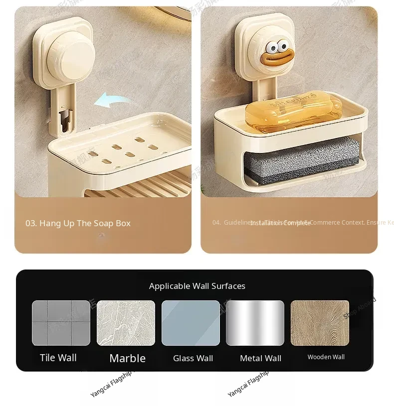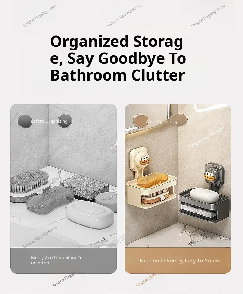Wall-Mounted Suction Soap Holder - No Drilling Required, Stylish Bathroom Soap Organizer with Drainage for Easy Storage and Convenience
