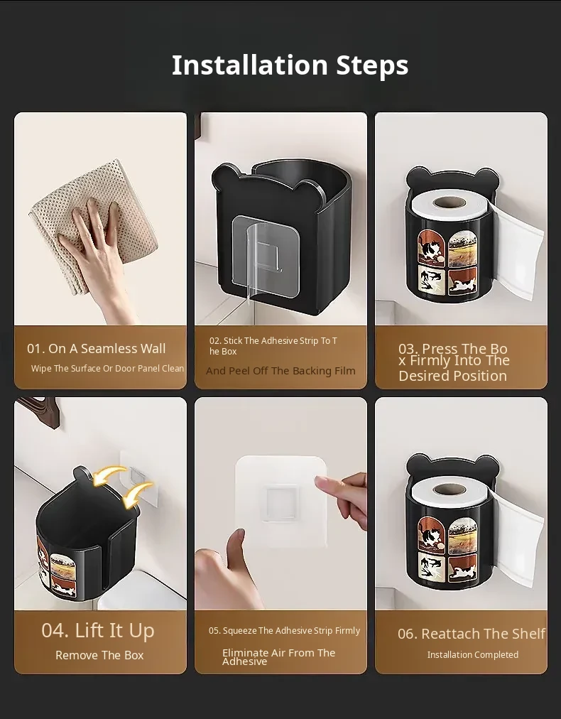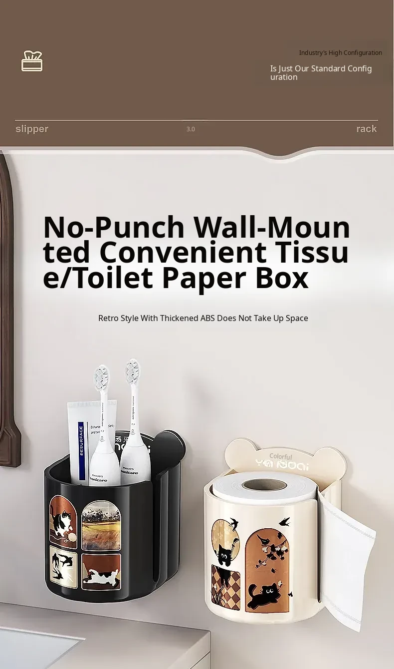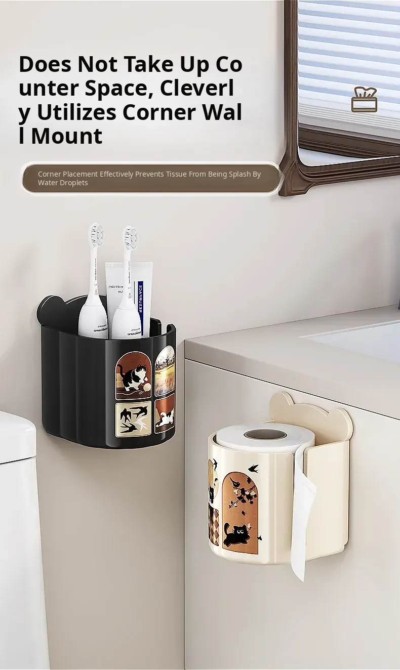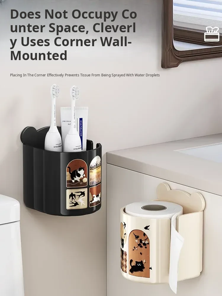 Wall-Mounted Tissue Box for Bathroom - No Drill Storage for Face Towels, Paper Towels, and Toilet Paper - Space-Saving Organizer for Clean and Tidy Spaces