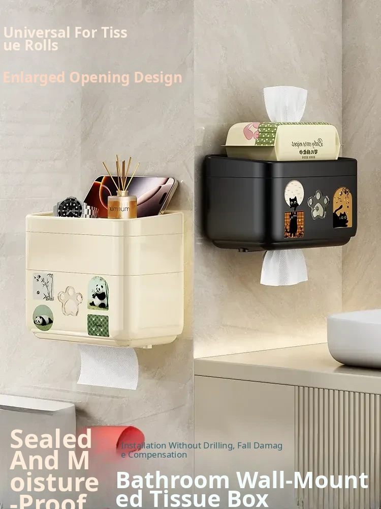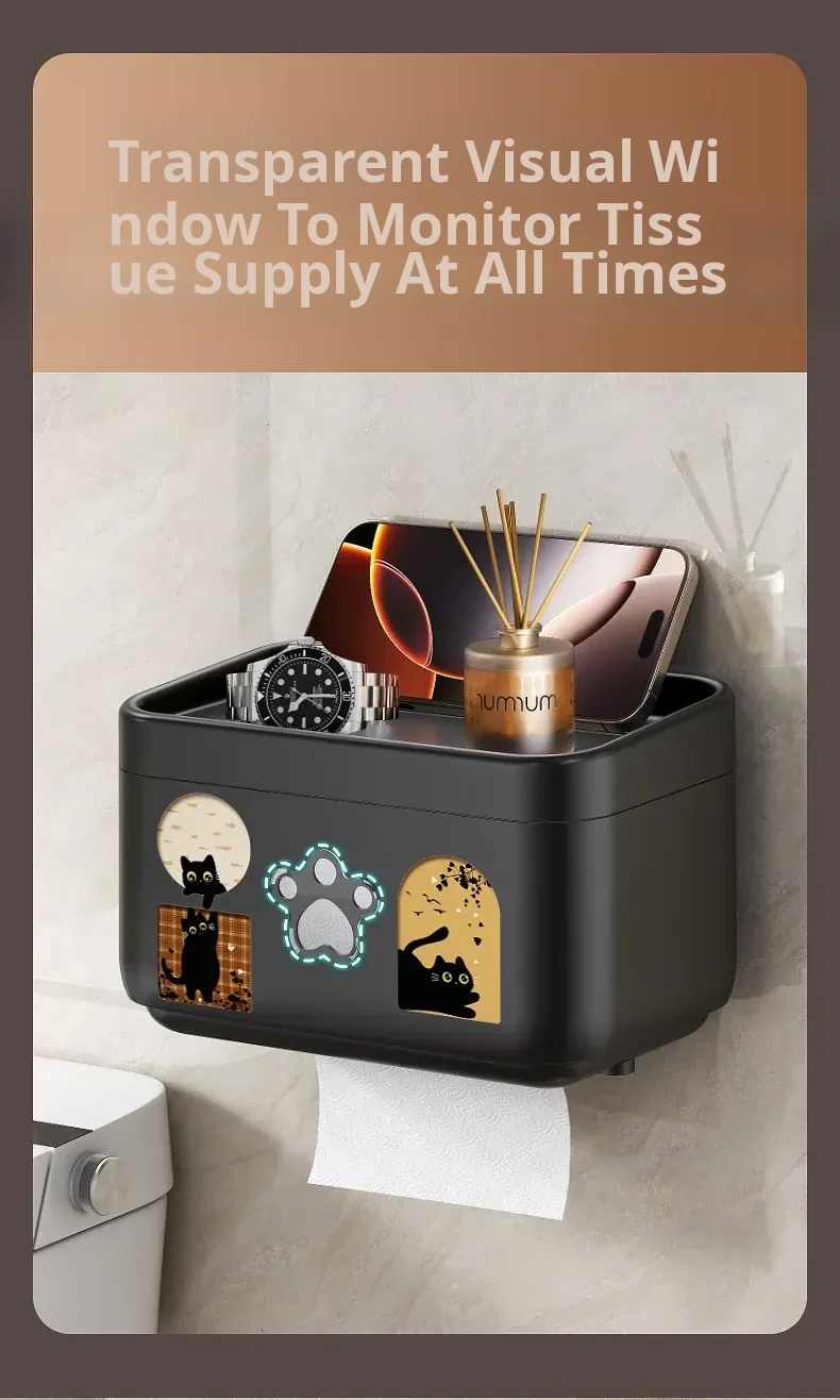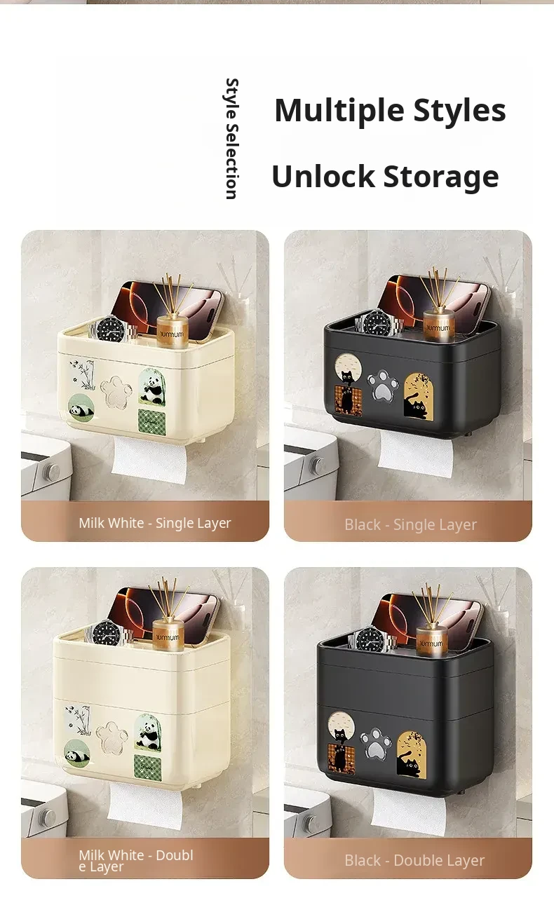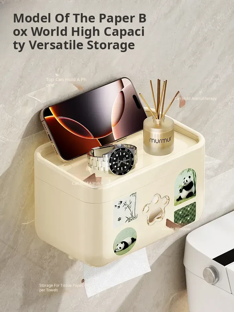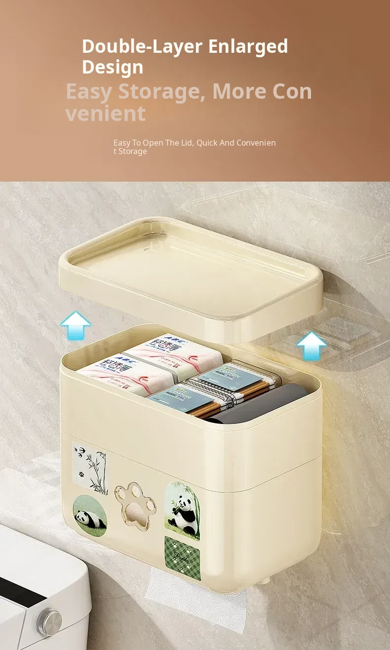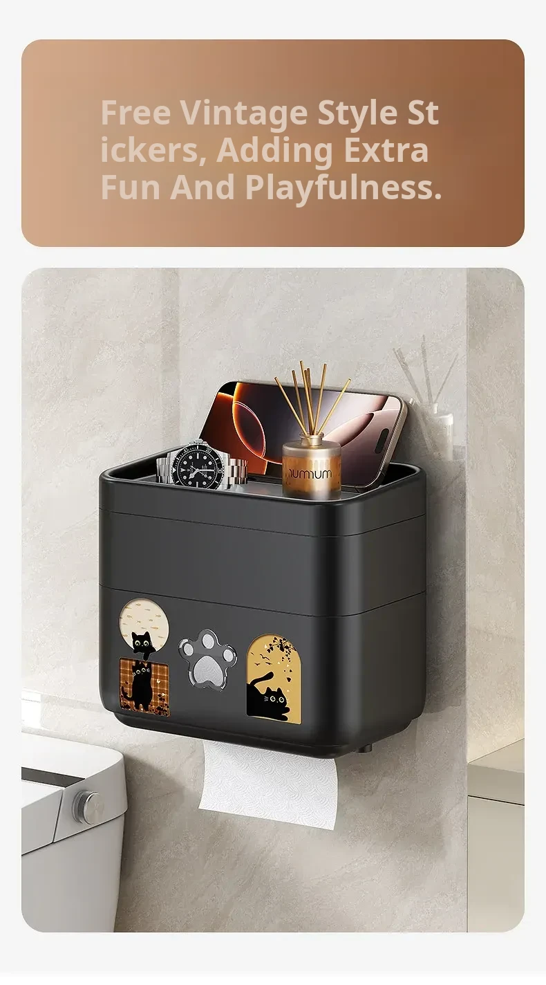 Wall-Mounted Waterproof Toilet Paper Holder - No Drill Tissue Box for Bathrooms, Convenient Roll Paper Rack & Storage Shelf for Hygiene Essentials