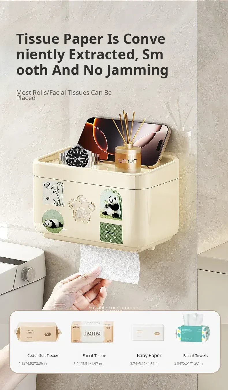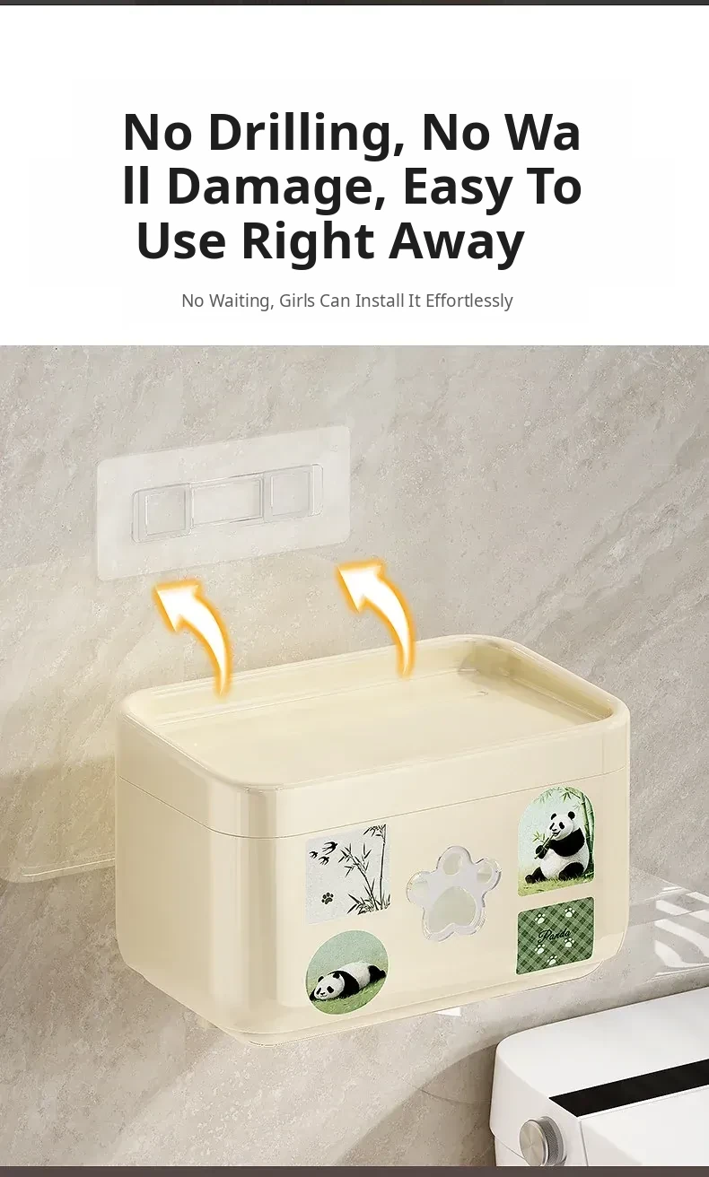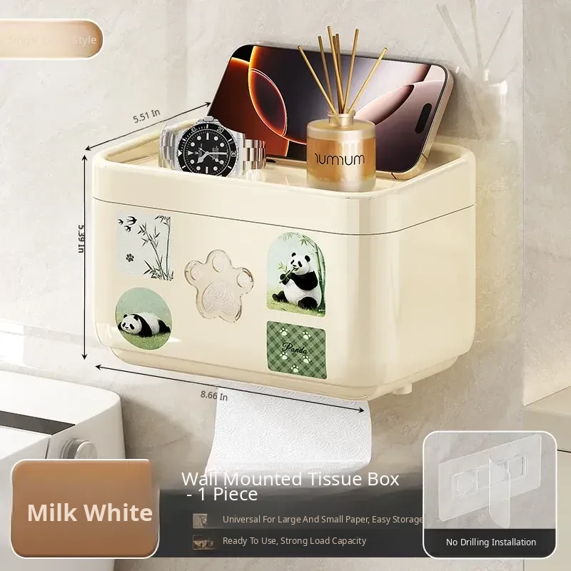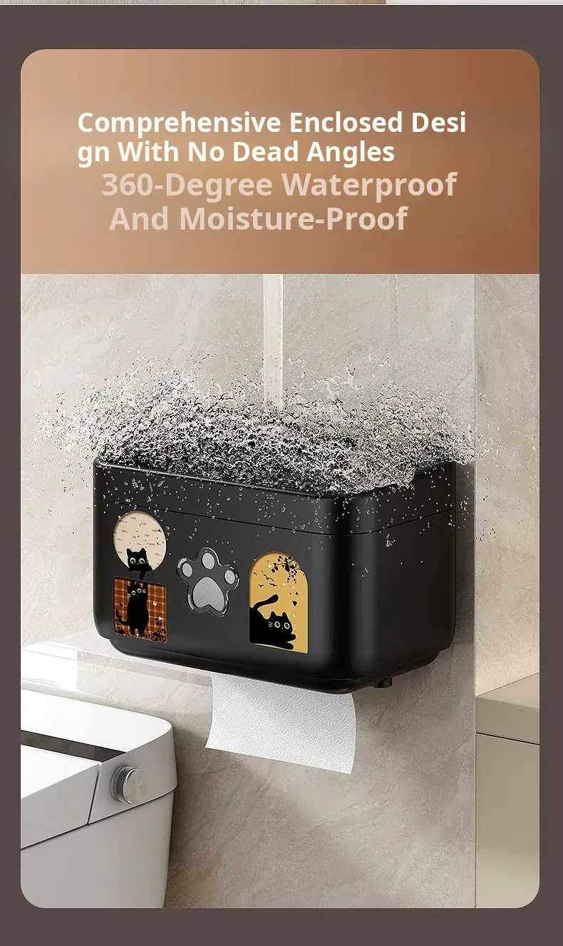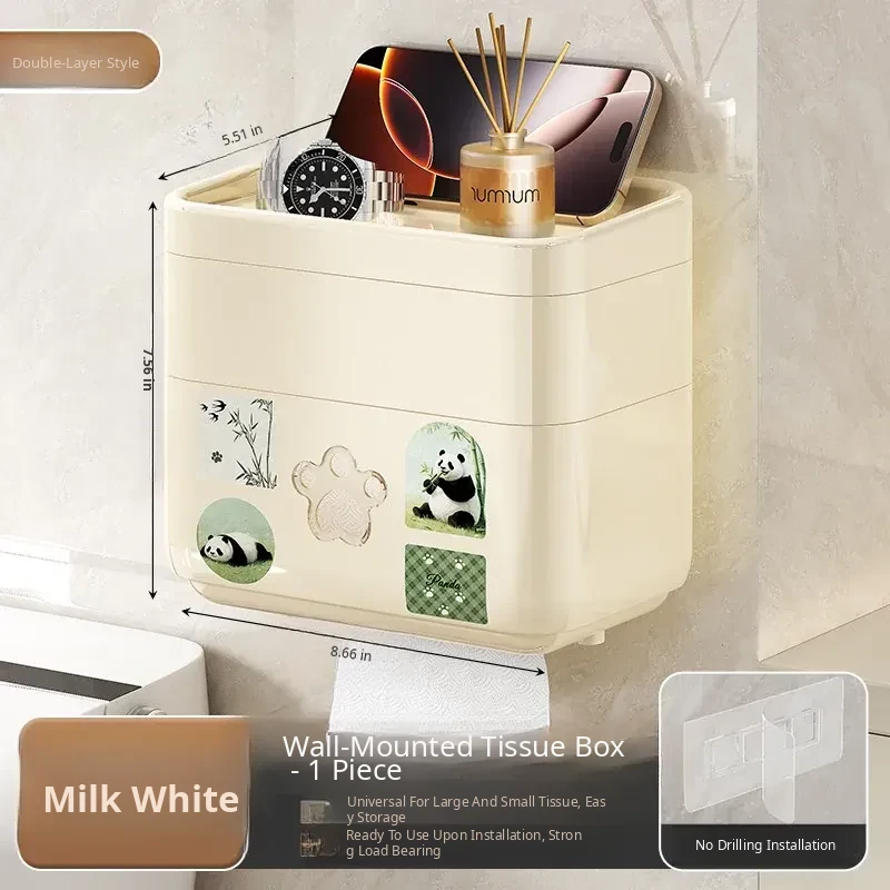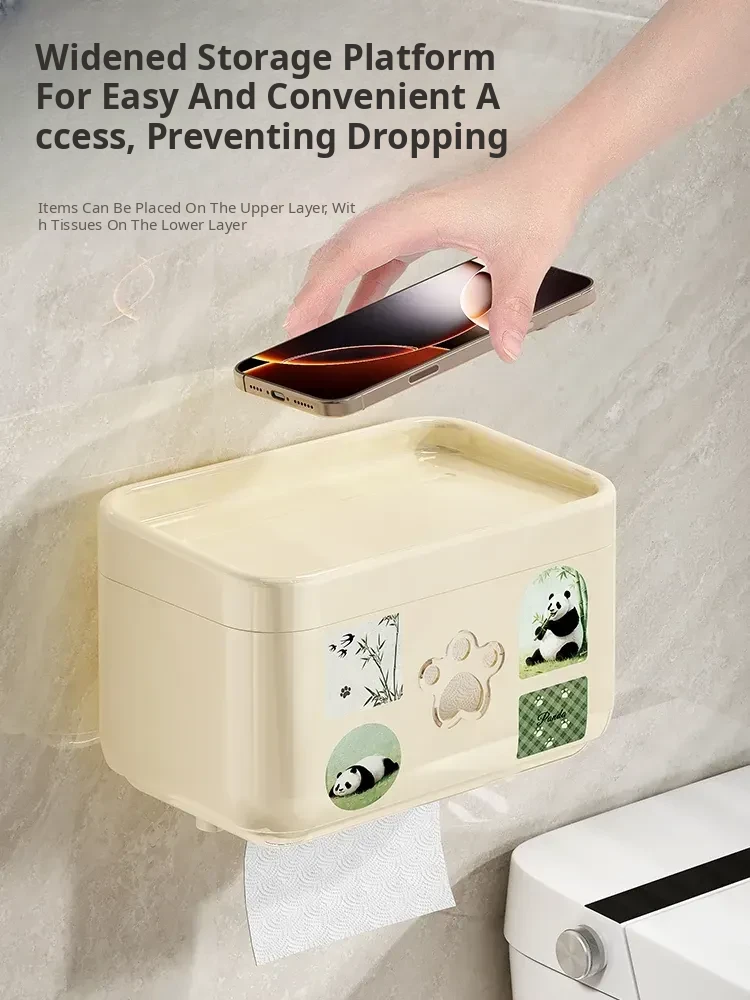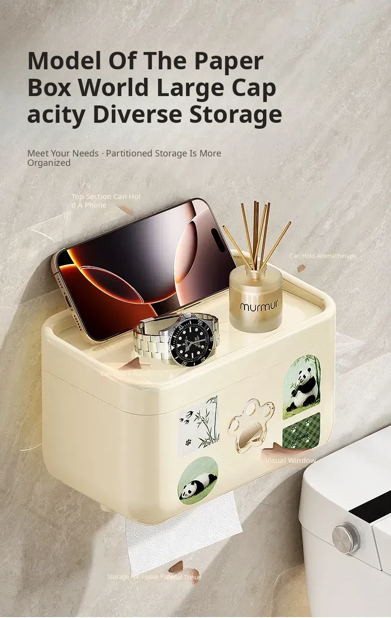 Wall-Mounted Waterproof Toilet Paper Holder - No Drill Tissue Box for Bathrooms, Convenient Roll Paper Rack & Storage Shelf for Hygiene Essentials