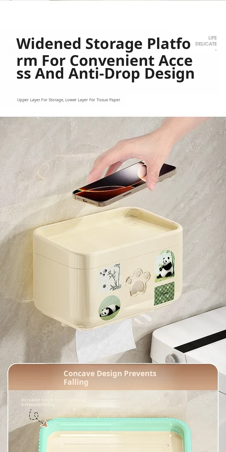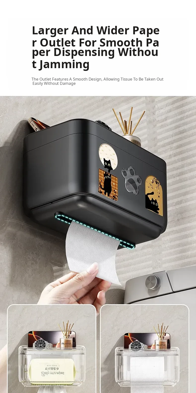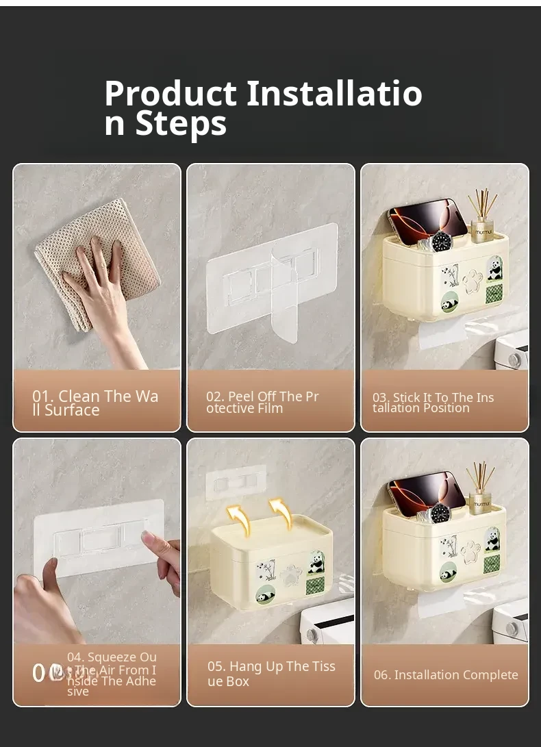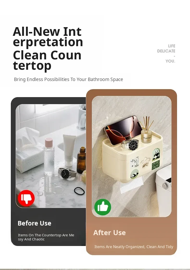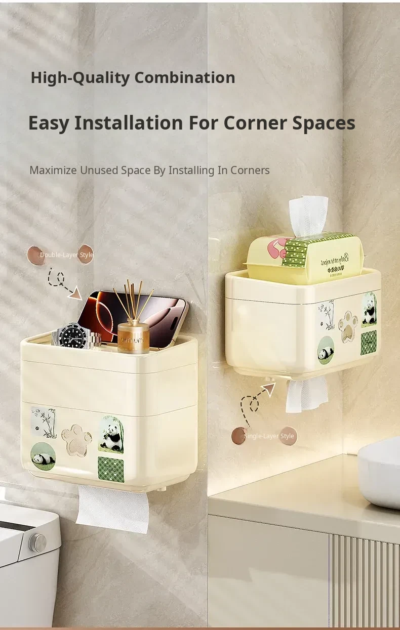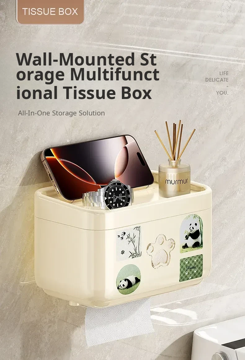 Wall-Mounted Waterproof Toilet Paper Holder - No Drill Tissue Box for Bathrooms, Convenient Roll Paper Rack & Storage Shelf for Hygiene Essentials